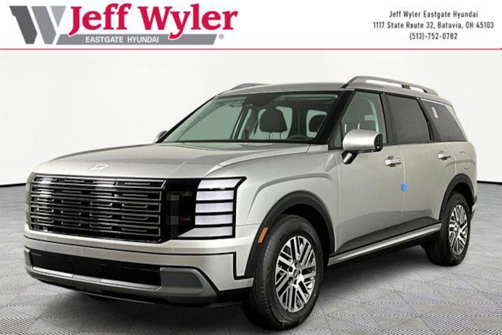 Typhoon Silver Metallic 2026 Hyundai Palisade SEL 7 Passenger V6 AWD 8-Speed Automatic 18/24 City/Highway MPG Jeff Wyler Eastgate Auto Mall is delighted to offer this great-looking 2026 Hyundai Palisade SEL in Typhoon Silver Metallic. Well equipped with: Option Group 01, 3rd row seats: split-bench, 4-Wheel Disc Brakes, 8 Speakers, ABS brakes, Air Conditioning, Alloy wheels, AM/FM radio: SiriusXM, Apple CarPlay & Android Auto, Auto High-beam Headlights, Auto-dimming Rear-View mirror, Auto-leveling suspension, Automatic temperature control, Brake assist, Bumpers: body-color, Cargo Tray, Carpeted Floor Mats, Compass, Delay-off headlights, Driver door bin, Driver vanity mirror, Dual front impact airbags, Dual front side impact airbags, Electronic Stability Control, Emergency communication system: None, Exterior Parking Camera Rear, First Aid Kit, Four wheel independent suspension, Front anti-roll bar, Front Bucket Seats, Front Center Armrest, Front dual zone A/C, Front reading lights, Fully automatic headlights, H-Tex Leatherette Seat Trim, Heated door mirrors, Heated Front Bucket Seats, Heated front seats, Illuminated entry, Knee airbag, Leather steering wheel, Low tire pressure warning, Navigation System, Occupant sensing airbag, Outside temperature display, Overhead airbag, Overhead console, Panic alarm, Passenger door bin, Passenger vanity mirror, Power door mirrors, Power driver seat, Power Liftgate, Power steering, Power windows, Radio data system, Radio: Infotainment Navigation System, Rear air conditioning, Rear anti-roll bar, Rear audio controls, Rear reading lights, Rear side impact airbag, Rear window defroster, Rear window wiper, Reclining 3rd row seat, Remote keyless entry, Security system, Speed control, Split folding rear seat, Spoiler, Steering wheel mounted audio controls, Tachometer, Telescoping steering wheel, Tilt steering wheel, Traction control, Trip computer, Turn signal indicator mirrors, Underbody Protection Plate, Variably intermittent wipers, and Wheels: 18" x 8.0J Alloy.