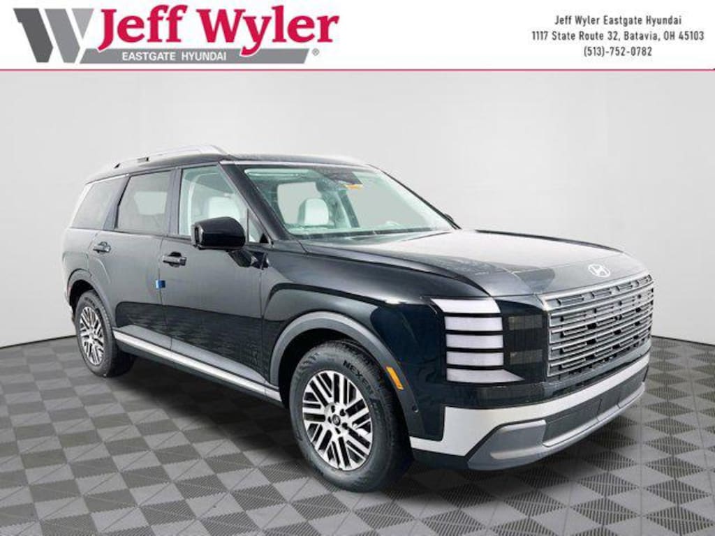 Abyss Black Pearl 2026 Hyundai Palisade SEL Premium 7 Passenger V6 AWD 8-Speed Automatic 18/24 City/Highway MPG Jeff Wyler Eastgate Auto Mall is delighted to offer this charming 2026 Hyundai Palisade SEL Premium in Abyss Black Pearl. Well equipped with: Option Group 01, 3rd row seats: split-bench, 4-Wheel Disc Brakes, 8 Speakers, ABS brakes, Air Conditioning, Alloy wheels, AM/FM radio: SiriusXM, Apple CarPlay & Android Auto, Audio memory, Auto High-beam Headlights, Auto-dimming door mirrors, Auto-dimming Rear-View mirror, Auto-leveling suspension, Automatic temperature control, Brake assist, Bumpers: body-color, Compass, Delay-off headlights, Driver door bin, Driver vanity mirror, Dual front impact airbags, Dual front side impact airbags, Electronic Stability Control, Emergency communication system: None, Exterior Parking Camera Rear, Four wheel independent suspension, Front anti-roll bar, Front Bucket Seats, Front Center Armrest, Front dual zone A/C, Front reading lights, Fully automatic headlights, Garage door transmitter: HomeLink, H-Tex Leatherette Seat Trim, Heated and Ventilated Front Bucket Seats, Heated door mirrors, Heated front seats, Heated rear seats, Heated steering wheel, HVAC memory, Illuminated entry, Knee airbag, Leather steering wheel, Low tire pressure warning, Memory seat, Navigation System, Occupant sensing airbag, Outside temperature display, Overhead airbag, Overhead console, Panic alarm, Passenger door bin, Passenger vanity mirror, Power door mirrors, Power driver seat, Power Liftgate, Power moonroof, Power passenger seat, Power steering, Power windows, Radio data system, Radio: Infotainment Navigation System, Rear air conditioning, Rear anti-roll bar, Rear audio controls, Rear reading lights, Rear side impact airbag, Rear window defroster, Rear window wiper, Reclining 3rd row seat, Remote keyless entry, Security system, Speed control, Split folding rear seat, Spoiler, Steering wheel mounted audio controls, Tachometer, Telescoping steering wheel, Tilt steering wheel, Traction control, Trip computer, Turn signal indicator mirrors, Variably intermittent wipers, Ventilated front seats, Ventilated rear seats, and Wheels: 18" x 8.0J Alloy.