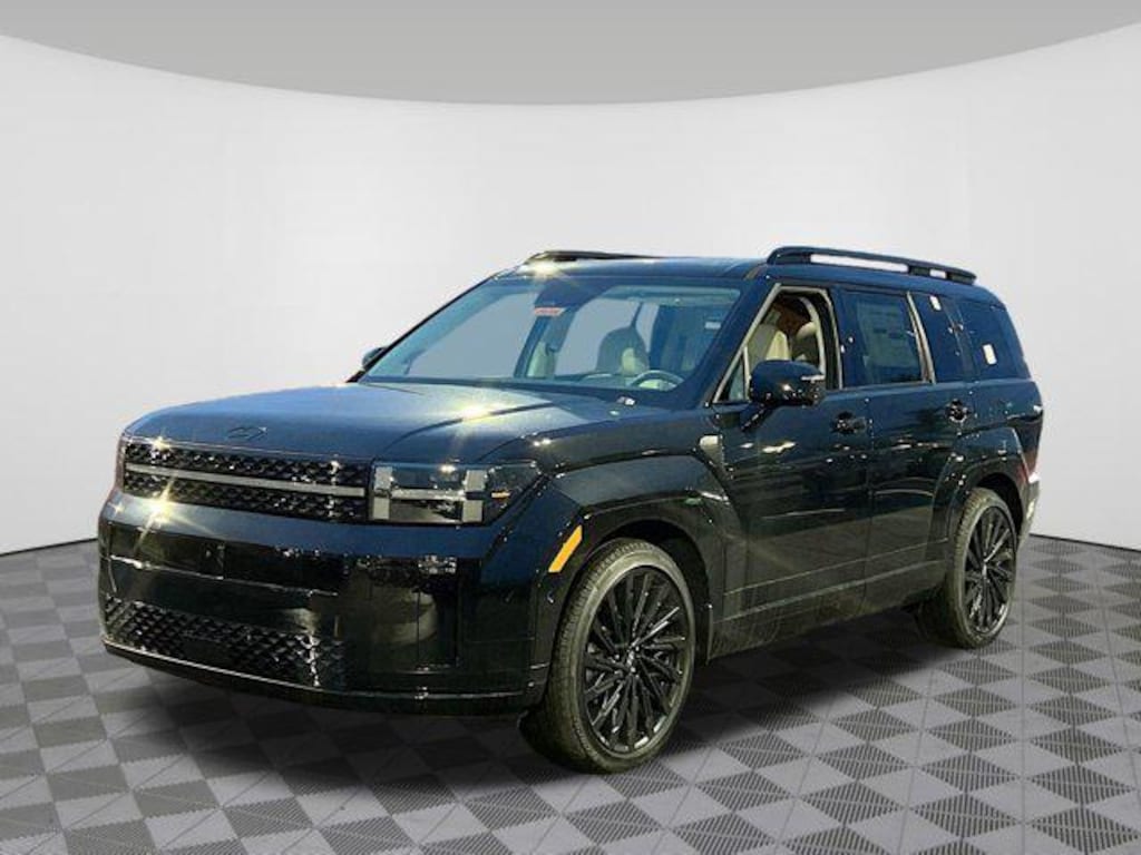 Phantom Black 2026 Hyundai Santa Fe Calligraphy 2.5L I4 AWD 8-Speed Automatic with SHIFTRONIC 20/28 City/Highway MPG Jeff Wyler Eastgate Auto Mall is pleased to offer this charming-looking 2026 Hyundai Santa Fe Calligraphy in Phantom Black. Well equipped with: Option Group 01, 12 Speakers, 3rd row seats: bench, 4-Wheel Disc Brakes, ABS brakes, Air Conditioning, All Season Fitted Liners, Alloy wheels, AM/FM radio: SiriusXM, Apple CarPlay & Android Auto, Auto High-beam Headlights, Auto-dimming Rear-View mirror, Automatic temperature control, Brake assist, Bumpers: body-color, Cargo Blocks, Cargo Cover/Screen, Cargo Organizer, Carpeted Floor Mats, Delay-off headlights, Driver door bin, Driver vanity mirror, Dual front impact airbags, Dual front side impact airbags, Electronic Stability Control, Emergency communication system, Exterior Parking Camera Rear, First Aid Kit, Four wheel independent suspension, Front anti-roll bar, Front Bucket Seats, Front Center Armrest, Front dual zone A/C, Front reading lights, Fully automatic headlights, Garage door transmitter: HomeLink, Heads-Up Display, Heated and Ventilated Front Bucket Seats, Heated door mirrors, Heated front seats, Heated rear seats, Heated steering wheel, Illuminated entry, Knee airbag, Leather steering wheel, Low tire pressure warning, Memory seat, Mudguards, Navigation System, Occupant sensing airbag, Outside temperature display, Overhead airbag, Overhead console, Panic alarm, Passenger door bin, Passenger vanity mirror, Power door mirrors, Power driver seat, Power Liftgate, Power moonroof, Power passenger seat, Power steering, Power windows, Quilted Premium Nappa Leather Seat Trim, Radio: AM/FM/HD Bose Premium Audio System, Rain sensing wipers, Rear anti-roll bar, Rear side impact airbag, Rear window defroster, Rear window wiper, Remote keyless entry, Security system, Speed control, Speed-sensing steering, Split folding rear seat, Spoiler, Steering wheel mounted audio controls, Tachometer, Telescoping steering wheel, Tilt steering wheel, Traction control, Trip computer, Turn signal indicator mirrors, Variably intermittent wipers, Ventilated front seats, and Wheels: 21" x 8.5J Unique Dark Finish Alloy. 20/28 City/Highway MPG