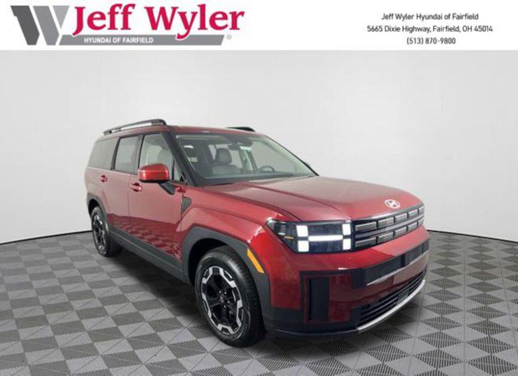 Priced below KBB Fair Purchase Price! 2026 Hyundai Santa Fe Ultimate Red SEL AWD 8-Speed Automatic with SHIFTRONIC 2.5L I4 AWD, Black Premium Synthetic, Android Auto, Apple CarPlay, CALL NOW FOR YOUR VIP APPOINTMENT 513-870-9800, FULLY SERVICED w/RECORDS, GUARANTEED FINANCING!! NO MATTER YOUR SITUATION WE CAN GET AN APPROVAL!!, THE #1 Volume dealer in the region! Come see why for yourself Today!!, WE PAY MORE FOR YOUR TRADE!!. 20/28 City/Highway MPG Jeff Wyler Hyundai of Fairfield is very proud to offer this fantastic 2026 Hyundai Santa Fe SEL in Ultimate Red. Well equipped with: Option Group 01, AWD, Black Premium Synthetic, Android Auto, Apple CarPlay, CALL NOW FOR YOUR VIP APPOINTMENT 513-870-9800, FULLY SERVICED w/RECORDS, GUARANTEED FINANCING!! NO MATTER YOUR SITUATION WE CAN GET AN APPROVAL!!, THE #1 Volume dealer in the region! Come see why for yourself Today!!, WE PAY MORE FOR YOUR TRADE!!, 18" x 7.5J Alloy Wheels, 3rd row seats: bench, 4-Wheel Disc Brakes, 6 Speakers, ABS brakes, Air Conditioning, Alloy wheels, AM/FM radio: SiriusXM, Apple CarPlay & Android Auto, Auto High-beam Headlights, Automatic temperature control, Brake assist, Bumpers: body-color, Cargo Net, Cargo Tray, Carpeted Floor Mats, Delay-off headlights, Driver door bin, Driver vanity mirror, Dual front impact airbags, Dual front side impact airbags, Electronic Stability Control, Emergency communication system, Exterior Parking Camera Rear, First Aid Kit, Four wheel independent suspension, Front anti-roll bar, Front Bucket Seats, Front Center Armrest, Front dual zone A/C, Front reading lights, Fully automatic headlights, H-Tex Leatherette Seat Trim, Heated door mirrors, Heated Front Bucket Seats, Heated front seats, Illuminated entry, Knee airbag, Leather steering wheel, Low tire pressure warning, Occupant sensing airbag, Outside temperature display, Overhead airbag, Overhead console, Panic alarm, Passenger door bin, Passenger vanity mirror, Power door mirrors, Power driver seat, Power Liftgate, Power steering, Power windows, Radio: AM/FM/HD Display Audio, Rear anti-roll bar, Rear seat center armrest, Rear side impact airbag, Rear window defroster, Rear window wiper, Remote keyless entry, Roof Rack Crossbars, Security system, Speed control, Speed-sensing steering, Split folding rear seat, Spoiler, Steering wheel mounted audio controls, Tachometer, Telescoping steering wheel, Tilt steering wheel, Traction control, Trip computer, Turn signal indicator mirrors, and Variably intermittent wipers. Price includes: $3500 - Hyundai HMF Dealer Choice : $3500 discount and 5.39% APR for 24 months. $44.05 per $1000 financed. Available to well qualified buyers who finance through Hyundai Motor Finance. H704. Exp. 03/02/2026 $400 - College Graduate Program. Exp. 03/02/2026 $500 - Military Program. Exp. 03/02/2026