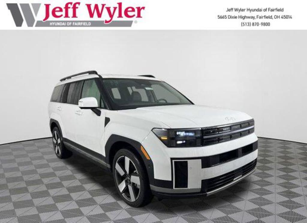 2026 Hyundai Santa Fe Hybrid Serenity White Limited AWD 6-Speed Automatic with Shiftronic I4 I4, Android Auto, Apple CarPlay, CALL NOW FOR YOUR VIP APPOINTMENT 513-870-9800, FULLY SERVICED w/RECORDS, GUARANTEED FINANCING!! NO MATTER YOUR SITUATION WE CAN GET AN APPROVAL!!, THE #1 Volume dealer in the region! Come see why for yourself Today!!, WE PAY MORE FOR YOUR TRADE!!. 35/34 City/Highway MPG Jeff Wyler Hyundai of Fairfield is pleased to offer this beautiful-looking 2026 Hyundai Santa Fe Hybrid Limited in Serenity White. Well equipped with: 7-Passenger Bench Seating (Option Group 02), I4, Android Auto, Apple CarPlay, CALL NOW FOR YOUR VIP APPOINTMENT 513-870-9800, FULLY SERVICED w/RECORDS, GUARANTEED FINANCING!! NO MATTER YOUR SITUATION WE CAN GET AN APPROVAL!!, THE #1 Volume dealer in the region! Come see why for yourself Today!!, WE PAY MORE FOR YOUR TRADE!!, 12 Speakers, 3rd row seats: bench, 4-Wheel Disc Brakes, ABS brakes, Air Conditioning, Alloy wheels, AM/FM radio: SiriusXM, Apple CarPlay & Android Auto, Auto High-beam Headlights, Auto-dimming Rear-View mirror, Automatic temperature control, Brake assist, Bumpers: body-color, Cargo Cover/Screen, Cargo Net, Carpeted Floor Mats, Delay-off headlights, Driver door bin, Driver vanity mirror, Dual front impact airbags, Dual front side impact airbags, Electronic Stability Control, Emergency communication system, Exterior Parking Camera Rear, First Aid Kit, Four wheel independent suspension, Front anti-roll bar, Front Bucket Seats, Front Center Armrest, Front dual zone A/C, Front reading lights, Fully automatic headlights, Garage door transmitter: HomeLink, Heated and Ventilated Front Bucket Seats, Heated door mirrors, Heated front seats, Heated rear seats, Heated steering wheel, Illuminated entry, Knee airbag, Leather Seat Trim, Leather steering wheel, Low tire pressure warning, Memory seat, Navigation System, Occupant sensing airbag, Outside temperature display, Overhead airbag, Overhead console, Panic alarm, Passenger door bin, Passenger vanity mirror, Power door mirrors, Power driver seat, Power Liftgate, Power moonroof, Power passenger seat, Power steering, Power windows, Radio: AM/FM/HD Bose Premium Audio System, Rain sensing wipers, Rear anti-roll bar, Rear side impact airbag, Rear window defroster, Rear window wiper, Remote keyless entry, Security system, Speed control, Speed-sensing steering, Split folding rear seat, Spoiler, Steering wheel mounted audio controls, Tachometer, Telescoping steering wheel, Tilt steering wheel, Traction control, Trip computer, Turn signal indicator mirrors, Variably intermittent wipers, Ventilated front seats, and Wheels: 20" x 8.5J Alloy. Price includes: $400 - College Graduate Program. Exp. 04/30/2026 $500 - Military Program. Exp. 04/30/2026