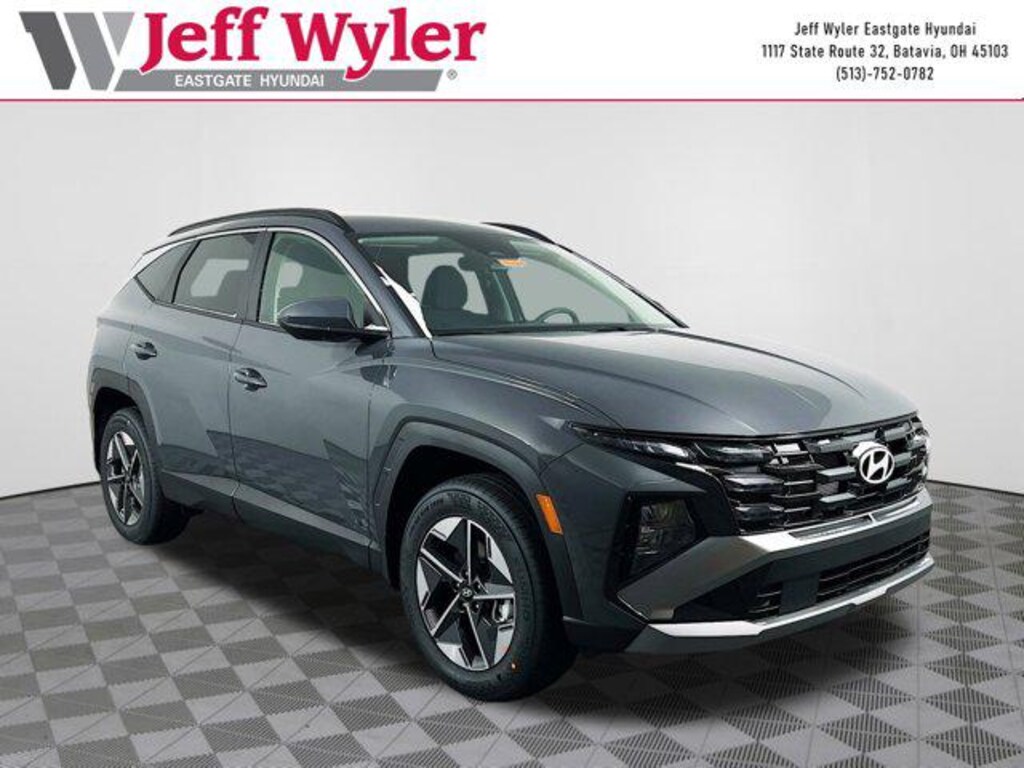 Ecotronic Gray 2026 Hyundai Tucson SEL 2.5L I4 DGI DOHC 16V LEV3-SULEV30 187hp AWD 8-Speed Automatic with SHIFTRONIC 24/30 City/Highway MPG Jeff Wyler Eastgate Auto Mall is pumped up to offer this good-looking 2026 Hyundai Tucson SEL in Ecotronic Gray. Well equipped with: Option Group 01, 18" x 7.5J Alloy Wheels, 4-Wheel Disc Brakes, 6 Speakers, ABS brakes, Air Conditioning, Alloy wheels, AM/FM radio: SiriusXM, Apple CarPlay & Android Auto, Auto High-beam Headlights, Automatic temperature control, Brake assist, Bumpers: body-color, Cargo Net, Cargo Tray, Carpeted Floor Mats, Delay-off headlights, Driver door bin, Driver vanity mirror, Dual front impact airbags, Dual front side impact airbags, Electronic Stability Control, Emergency communication system: None, First Aid Kit, Four wheel independent suspension, Front and Rear Mudguards, Front anti-roll bar, Front Bucket Seats, Front Center Armrest, Front dual zone A/C, Front reading lights, Fully automatic headlights, H-Tex Leatherette Seat Trim, Heated door mirrors, Heated Front Bucket Seats, Heated front seats, Illuminated entry, Low tire pressure warning, Occupant sensing airbag, Outside temperature display, Overhead airbag, Overhead console, Panic alarm, Passenger door bin, Passenger vanity mirror, Power door mirrors, Power driver seat, Power Liftgate, Power steering, Power windows, Radio data system, Radio: AM/FM/HD Audio System, Rear anti-roll bar, Rear reading lights, Rear seat center armrest, Rear side impact airbag, Rear window defroster, Rear window wiper, Remote keyless entry, Security system, Speed control, Split folding rear seat, Spoiler, Steering wheel mounted audio controls, Tachometer, Telescoping steering wheel, Tilt steering wheel, Traction control, Trip computer, and Variably intermittent wipers. 24/30 City/Highway MPG
