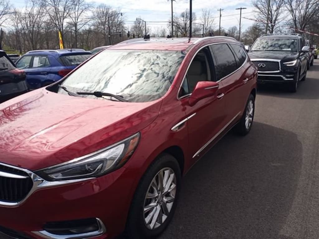 Jeff Wyler Eastgate Auto Mall is delighted to offer this gorgeous-looking 2019 Buick Enclave Essence in Red Quartz Tintcoat. Well equipped with: 5000lbs Trailering Package (Heavy-Duty Cooling System), Front Mounting License Plate Bracket Package, Preferred Equipment Group 1SL, 120-Volt Power Outlet, 18" Painted Aluminum Wheels, 20" Polished Aluminum Wheels, 3.49 Axle Ratio, 3rd row seats: split-bench, 4-Wheel Disc Brakes, 6 Speakers, 6-Speaker Audio System Feature, 7-Passenger Seating, ABS brakes, Air Conditioning, Alloy wheels, AM/FM radio: SiriusXM, Apple CarPlay/Android Auto, Auto High-beam Headlights, Auto-dimming door mirrors, Auto-dimming Rear-View mirror, Automatic temperature control, Brake assist, Bumpers: body-color, Compass, Delay-off headlights, Driver door bin, Driver vanity mirror, Dual front impact airbags, Dual front side impact airbags, Electronic Stability Control, Emergency communication system: OnStar and Buick connected services capable, Four wheel independent suspension, Front anti-roll bar, Front Bucket Seats, Front Center Armrest, Front dual zone A/C, Front Power Sliding Moonroof, Front reading lights, Fully automatic headlights, Garage door transmitter, Heated door mirrors, Heated Driver & Front Passenger Seats, Heated front seats, Illuminated entry, Leather steering wheel, Low tire pressure warning, Occupant sensing airbag, Outside temperature display, Overhead airbag, Overhead console, Panic alarm, Passenger door bin, Passenger vanity mirror, Perforated Leather-Appointed Seat Trim, Power door mirrors, Power Driver Lumbar Control Seat Adjuster, Power driver seat, Power Liftgate, Power Passenger Lumbar Control Seat Adjuster, Power passenger seat, Power steering, Power windows, Premium audio system: Buick Infotainment System, Radio data system, Radio: Buick Infotainment Sys AM/FM Stereo w/Nav, Radio: Buick Infotainment System AM/FM Stereo, Rear air conditioning, Rear anti-roll bar, Rear Parking Sensors, Rear reading lights, Rear window defroster, Rear window wiper, Remote keyless entry, Roof rack: rails only, Security system, SiriusXM Radio, Speed control, Speed-sensing steering, Spoiler, Steering wheel mounted audio controls, Tachometer, Telescoping steering wheel, Tilt steering wheel, Traction control, Trip computer, Turn signal indicator mirrors, Variably intermittent wipers, and Voltmeter. Clean CARFAX. Ask about available certifications. Used vehicles 10 years of age or newer with less than 100,000 miles are eligible for the Wyler Assurance Program, but eligible vehicles must pass our reconditioning process and multi-point inspection. Provided the vehicle passes inspection, vehicles will be eligible for the 6 month/6,000 mile limited warranty. The 6 month/6,000 mile limited warranty is NOT available on AS-IS vehicles, wholesale vehicles, lease buyback/pass-thru vehicles or un-inspected vehicles. Note that this program can also apply to vehicles where the remaining factory coverage is less than 6 months or 6,000 miles. Please check the Federal Trade Commission (FTC) Buyers guide on the vehicle for full details as to whether or not warranty coverage may apply. Contact Dealer for additional details. The Wyler Assurance 6 month/6,000 Mile limited warranty ends 6 months from the date of the Retail Purchase Agreement (BUYERS ORDER) or when the vehicle's odometer registers 6,000 additional miles to the mileage listed on the BUYERS ORDER, whichever comes first. Your Deductible - The warranty holder on your contract pays the first $100 of each covered repair.