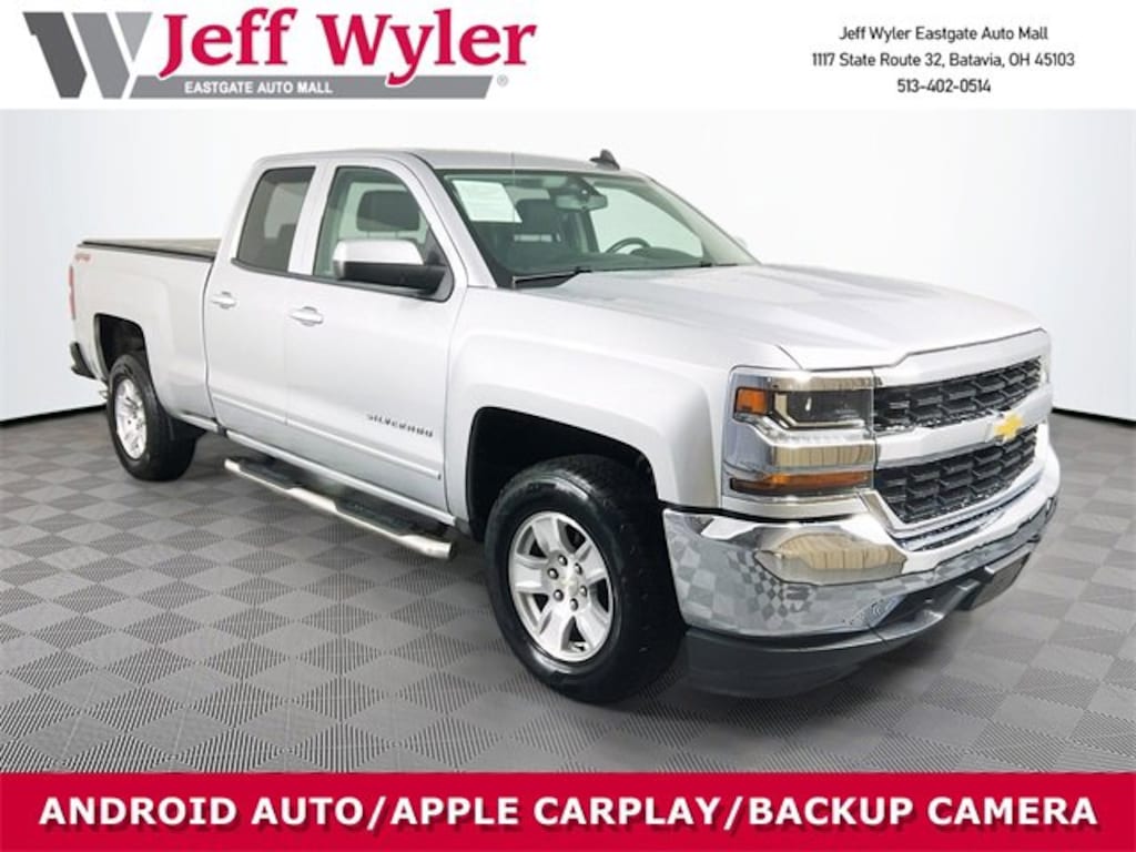Jeff Wyler Eastgate Auto Mall is proud to offer this charming 2018 Chevrolet Silverado 1500 LT in Silver Ice Metallic. Well equipped with: Trailering Package (Heavy-Duty Rear Locking Differential), 150 Amp Alternator, 3.42 Rear Axle Ratio, 4-Wheel Disc Brakes, 4.2" Diagonal Color Display Driver Info Center, 40/20/40 Front Split Bench Seat, 6 Speaker Audio System, 6 Speakers, ABS brakes, Air Conditioning, Alloy wheels, AM/FM radio: SiriusXM, Auxiliary External Transmission Oil Cooler, Bluetooth® For Phone, Body Color Bodyside Moldings, Body-Color Door Handles, Body-Color Mirror Caps, Body-Color Power Adjustable Heated Outside Mirrors, Bodyside moldings, Brake assist, CD player, Chevrolet Connected Access, Chevrolet w/4G LTE, Cloth Seat Trim, Color-Keyed Carpeting w/Rubberized Vinyl Floor Mats, Compass, Deep-Tinted Glass, Delay-off headlights, Driver & Front Passenger Illuminated Vanity Mirrors, Driver door bin, Driver vanity mirror, Dual front impact airbags, Dual front side impact airbags, Electronic Stability Control, Exterior Parking Camera Rear, EZ Lift & Lower Tailgate, Front anti-roll bar, Front Center Armrest w/Storage, Front Chrome Bumper, Front License Plate Kit, Front reading lights, Front wheel independent suspension, Fully automatic headlights, HD Radio, Heated door mirrors, High-Intensity Discharge Headlights, Illuminated entry, Leather Wrapped Steering Wheel w/Cruise Controls, Low tire pressure warning, Manual Tilt Wheel Steering Column, Occupant sensing airbag, OnStar & Chevrolet Connected Services Capable, Outside temperature display, Overhead airbag, Overhead console, Panic alarm, Passenger door bin, Passenger vanity mirror, Power door mirrors, Power steering, Power windows, Power Windows w/Driver Express Up, Premium audio system: Chevrolet MyLink, Radio data system, Radio: AM/FM 8" Diagonal Color Touch Screen, Rear 60/40 Folding Bench Seat (Folds Up), Rear Chrome Bumper, Rear reading lights, Rear step bumper, Rear Wheelhouse Liners, Remote Keyless Entry, Remote keyless entry, Remote Locking Tailgate, Single Slot CD/MP3 Player, SiriusXM Satellite Radio, Speed control, Speed-sensing steering, Split folding rear seat, Steering Wheel Audio Controls, Steering wheel mounted audio controls, Tachometer, Thin Profile LED Fog Lamps, Tilt steering wheel, Traction control, Trip computer, Variably intermittent wipers, and Voltmeter. Awards: * 2018 KBB.com 10 Most Awarded Brands Ask about available certifications. Used vehicles 10 years of age or newer with less than 100,000 miles are eligible for the Wyler Assurance Program, but eligible vehicles must pass our reconditioning process and multi-point inspection. Provided the vehicle passes inspection, vehicles will be eligible for the 6 month/6,000 mile limited warranty. The 6 month/6,000 mile limited warranty is NOT available on AS-IS vehicles, wholesale vehicles, lease buyback/pass-thru vehicles or un-inspected vehicles. Note that this program can also apply to vehicles where the remaining factory coverage is less than 6 months or 6,000 miles. Please check the Federal Trade Commission (FTC) Buyers guide on the vehicle for full details as to whether or not warranty coverage may apply. Contact Dealer for additional details. The Wyler Assurance 6 month/6,000 Mile limited warranty ends 6 months from the date of the Retail Purchase Agreement (BUYERS ORDER) or when the vehicle's odometer registers 6,000 additional miles to the mileage listed on the BUYERS ORDER, whichever comes first. Your Deductible - The warranty holder on your contract pays the first $100 of each covered repair.