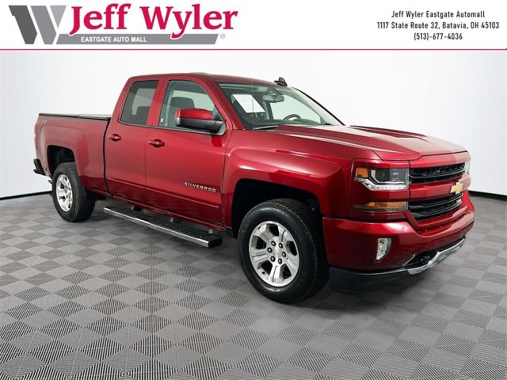 Jeff Wyler Eastgate Auto Mall is honored to offer this gorgeous 2018 Chevrolet Silverado 1500 LT in Cajun Red Tintcoat. Well equipped with: All Star Edition (110-Volt AC Power Outlet, Dual-Zone Automatic Climate Control, Electric Rear-Window Defogger, Remote Vehicle Starter System, and Theft Deterrent System (Unauthorized Entry)), Trailering Package, 10-Way Power Driver's Seat Adjuster, 150 Amp Alternator, 3.42 Rear Axle Ratio, 4-Wheel Disc Brakes, 4.2" Diagonal Color Display Driver Info Center, 40/20/40 Front Split Bench Seat, 6 Speaker Audio System, 6 Speakers, 6" Rectangular Chromed Tubular Assist Steps (LPO), ABS brakes, Air Conditioning, Alloy wheels, AM/FM radio: SiriusXM, Auxiliary External Transmission Oil Cooler, Bluetooth® For Phone, Body Color Bodyside Moldings, Body-Color Door Handles, Body-Color Mirror Caps, Body-Color Power Adjustable Heated Outside Mirrors, Bodyside moldings, Brake assist, CD player, Chevrolet Connected Access, Chevrolet w/4G LTE, Cloth Seat Trim, Color-Keyed Carpeting w/Rubberized Vinyl Floor Mats, Compass, Deep-Tinted Glass, Delay-off headlights, Driver & Front Passenger Illuminated Vanity Mirrors, Driver door bin, Driver vanity mirror, Dual front impact airbags, Dual front side impact airbags, Electronic Stability Control, Exterior Parking Camera Rear, EZ Lift & Lower Tailgate, Front anti-roll bar, Front Center Armrest w/Storage, Front Chrome Bumper, Front License Plate Kit, Front reading lights, Front wheel independent suspension, Fully automatic headlights, HD Radio, Heated door mirrors, Heavy-Duty Rear Locking Differential, High-Intensity Discharge Headlights, Illuminated entry, Integrated Trailer Brake Controller, Leather Wrapped Steering Wheel w/Cruise Controls, Low tire pressure warning, Manual Tilt Wheel Steering Column, Manual Tilt/Telescoping Steering Column, Occupant sensing airbag, OnStar & Chevrolet Connected Services Capable, Outside temperature display, Overhead airbag, Overhead console, Panic alarm, Passenger door bin, Passenger vanity mirror, Power door mirrors, Power steering, Power windows, Power Windows w/Driver Express Up, Premium audio system: Chevrolet MyLink, Radio data system, Radio: AM/FM 8" Diagonal Color Touch Screen, Rear 60/40 Folding Bench Seat (Folds Up), Rear Chrome Bumper, Rear reading lights, Rear step bumper, Rear Wheelhouse Liners, Remote Keyless Entry, Remote keyless entry, Remote Locking Tailgate, Single Slot CD/MP3 Player, SiriusXM Satellite Radio, Speed control, Speed-sensing steering, Split folding rear seat, Steering Wheel Audio Controls, Steering wheel mounted audio controls, Tachometer, Thin Profile LED Fog Lamps, Tilt steering wheel, Traction control, Trip computer, Variably intermittent wipers, and Voltmeter. CARFAX One-Owner. Clean CARFAX. Awards: * 2018 KBB.com 10 Most Awarded Brands Ask about available certifications. Used vehicles 10 years of age or newer with less than 100,000 miles are eligible for the Wyler Assurance Program, but eligible vehicles must pass our reconditioning process and multi-point inspection. Provided the vehicle passes inspection, vehicles will be eligible for the 6 month/6,000 mile limited warranty. The 6 month/6,000 mile limited warranty is NOT available on AS-IS vehicles, wholesale vehicles, lease buyback/pass-thru vehicles or un-inspected vehicles. Note that this program can also apply to vehicles where the remaining factory coverage is less than 6 months or 6,000 miles. Please check the Federal Trade Commission (FTC) Buyers guide on the vehicle for full details as to whether or not warranty coverage may apply. Contact Dealer for additional details. The Wyler Assurance 6 month/6,000 Mile limited warranty ends 6 months from the date of the Retail Purchase Agreement (BUYERS ORDER) or when the vehicle's odometer registers 6,000 additional miles to the mileage listed on the BUYERS ORDER, whichever comes first. Your Deductible - The warranty holder on your contract pays the first $100 of each covered repair.