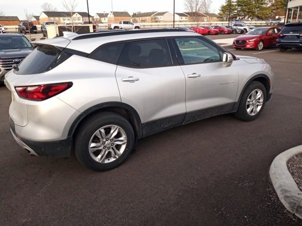 Jeff Wyler Eastgate Auto Mall is pumped up to offer this beautiful 2019 Chevrolet Blazer in Silver Ice Metallic. Well equipped with: Convenience & Driver Confidence Package (Black Roof Rails, Heated Driver & Front Passenger Seats, Inside Rear-View Auto-Dimming Mirror, Lane Change Alert w/Side Blind Zone Alert, Outside Heated Power-Adjustable Body-Color Mirrors, Rear Cross Traffic Alert, Rear Park Assist w/Audible Warning, Rear Power Programmable Liftgate, Remote Vehicle Starter System, and Universal Home Remote), Floor Liner Package (LPO) (1st & 2nd Row All-Weather Floor Liner (LPO) and Integrated Cargo Liner (LPO)), Preferred Equipment Group 1LT, 3.80 Final Drive Ratio, 4-Wheel Disc Brakes, 6 Speakers, 6-Speaker Audio System Feature, ABS brakes, Air Conditioning, Alloy wheels, AM/FM radio: SiriusXM, Apple CarPlay/Android Auto, Automatic temperature control, Brake assist, Bumpers: body-color, Child-Seat-Sensing Airbag, Compass, Delay-off headlights, Driver door bin, Driver vanity mirror, Dual front impact airbags, Dual front side impact airbags, Electronic Stability Control, Emergency communication system: OnStar and Chevrolet connected services capable, Four wheel independent suspension, Front anti-roll bar, Front Bucket Seats, Front Center Armrest, Front dual zone A/C, Front reading lights, Fully automatic headlights, Heated door mirrors, High-Intensity Discharge Headlights, Illuminated entry, Knee airbag, Leather Shift Knob, Low tire pressure warning, Occupant sensing airbag, Outside temperature display, Overhead airbag, Overhead console, Panic alarm, Passenger door bin, Passenger vanity mirror, Power door mirrors, Power driver seat, Power steering, Power windows, Premium Cloth Seat Trim, Radio data system, Radio: Chevrolet Infotainment 3 System, Rear anti-roll bar, Rear reading lights, Rear seat center armrest, Rear window defroster, Rear window wiper, Remote keyless entry, Ride & Handling Suspension, Security system, Speed control, Speed-sensing steering, Split folding rear seat, Spoiler, Steering wheel mounted audio controls, Tachometer, Telescoping steering wheel, Tilt steering wheel, Traction control, Trip computer, Variably intermittent wipers, Voltmeter, and Wheels: 18" Bright Silver Aluminum. Clean CARFAX. Awards: * JD Power Automotive Performance, Execution and Layout (APEAL) Study Ask about available certifications. Used vehicles 10 years of age or newer with less than 100,000 miles are eligible for the Wyler Assurance Program, but eligible vehicles must pass our reconditioning process and multi-point inspection. Provided the vehicle passes inspection, vehicles will be eligible for the 6 month/6,000 mile limited warranty. The 6 month/6,000 mile limited warranty is NOT available on AS-IS vehicles, wholesale vehicles, lease buyback/pass-thru vehicles or un-inspected vehicles. Note that this program can also apply to vehicles where the remaining factory coverage is less than 6 months or 6,000 miles. Please check the Federal Trade Commission (FTC) Buyers guide on the vehicle for full details as to whether or not warranty coverage may apply. Contact Dealer for additional details. The Wyler Assurance 6 month/6,000 Mile limited warranty ends 6 months from the date of the Retail Purchase Agreement (BUYERS ORDER) or when the vehicle's odometer registers 6,000 additional miles to the mileage listed on the BUYERS ORDER, whichever comes first. Your Deductible - The warranty holder on your contract pays the first $100 of each covered repair.