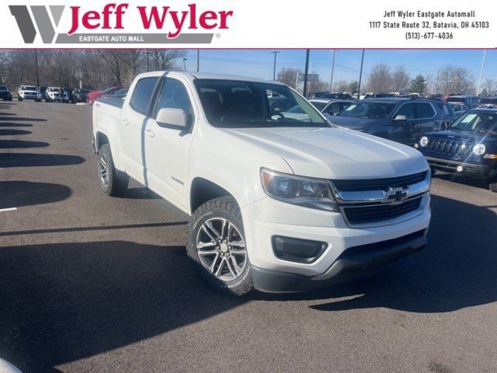 Jeff Wyler Eastgate Auto Mall is pumped up to offer this attractive 2019 Chevrolet Colorado Work Truck in Summit White. Well equipped with: Black Bowtie Emblem Package (LPO), Custom Special Edition (Body-Color Door Handles, Body-Color Grille, Outside Power-Adjustable Body-Color Mirrors, Rear Body-Color Bumper, and Wheels: 18" x 8.5" Dark Argent Metallic Cast Alloy), Heavy-Duty Trailering Package, OnStar & Chevrolet Connected Services Capable (Chevrolet 4G LTE and Chevrolet Connected Access), Preferred Equipment Group 4WT, WT Convenience Package (Electronic Automatic Cruise Control, Extended Range Remote Keyless Entry, EZ-Lift & Lower Tailgate, and Unauthorized Entry Theft-Deterrent System), 3.42 Rear Axle Ratio, 4-Wheel Disc Brakes, 6 Speakers, 6-Speaker Audio System Feature, ABS brakes, Air Conditioning, All-Weather Floor Liner (LPO), AM/FM radio, Apple CarPlay/Android Auto, Automatic Locking Rear Differential, Black Spray-On Bedliner w/Chevrolet Logo, Bumpers: body-color, Cloth Seat Trim, Delay-off headlights, Driver 4-Way Power Seat Adjuster, Driver door bin, Dual front impact airbags, Dual front side impact airbags, Electronic Stability Control, Exterior Parking Camera Rear, Front anti-roll bar, Front Bucket Seats, Front Center Armrest, Front wheel independent suspension, Fully automatic headlights, Low tire pressure warning, Occupant sensing airbag, Overhead airbag, Passenger door bin, Passenger vanity mirror, Power driver seat, Power steering, Power windows, Premium audio system: Chevrolet Infotainment System, Radio data system, Radio: Chevrolet Infotainment 3 System, Rear seat center armrest, Rear step bumper, Speed-sensing steering, Tachometer, Tilt steering wheel, Tow/Haul Mode, Traction control, Trip computer, Variably intermittent wipers, and Wheels: 16" x 7" Ultra Silver Metallic Steel. Awards: * 2019 KBB.com Best Resale Value Awards Ask about available certifications. Used vehicles 10 years of age or newer with less than 100,000 miles are eligible for the Wyler Assurance Program, but eligible vehicles must pass our reconditioning process and multi-point inspection. Provided the vehicle passes inspection, vehicles will be eligible for the 6 month/6,000 mile limited warranty. The 6 month/6,000 mile limited warranty is NOT available on AS-IS vehicles, wholesale vehicles, lease buyback/pass-thru vehicles or un-inspected vehicles. Note that this program can also apply to vehicles where the remaining factory coverage is less than 6 months or 6,000 miles. Please check the Federal Trade Commission (FTC) Buyers guide on the vehicle for full details as to whether or not warranty coverage may apply. Contact Dealer for additional details. The Wyler Assurance 6 month/6,000 Mile limited warranty ends 6 months from the date of the Retail Purchase Agreement (BUYERS ORDER) or when the vehicle's odometer registers 6,000 additional miles to the mileage listed on the BUYERS ORDER, whichever comes first. Your Deductible - The warranty holder on your contract pays the first $100 of each covered repair.