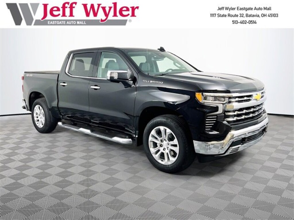 Jeff Wyler Eastgate Auto Mall is proud to offer this good-looking 2023 Chevrolet Silverado 1500 LTZ in Black. Well equipped with: High Capacity Suspension Package, LTZ Convenience Package (2 USB Data Ports, Floor Mounted Center Console, Power Tilt & Telescoping Steering Column, Premium Bose 7-Speaker Sound System, Ventilated Driver & Front Passenger Seats, and Wireless Charging), LTZ Plus Package, Preferred Equipment Group 1LZ (10-Way Power Driver Seat w/Lumbar, 10-Way Power Passenger Seat Adjuster w/Lumbar, 12.3" Multicolor Reconfigurable Digital Display, 120-Volt Bed Mounted Power Outlet, 120-Volt Instrument Panel Power Outlet, Auto-Dimming Inside Rear-View Mirror, Auto-Locking Rear Differential, Bluetooth® For Phone, Chevrolet Connected Access Capable, Chrome Mirror Caps, Color-Keyed Carpeting Floor Covering, Compass, Deep-Tinted Glass, Driver Memory, Dual Rear USB Ports (Charge Only), Electric Rear-Window Defogger, Electrical Steering Column Lock, Electronic Cruise Control, Front Frame-Mounted Black Recovery Hooks, Front LED Fog Lamps, Front Rainsensing Wipers, Front Rubberized Vinyl Floor Mats, Heated Driver & Front Outboard Passenger Seats, Heated Steering Wheel, Hitch Guidance w/Hitch View, Integrated Trailer Brake Controller, Keyless Open & Start, LED Cargo Area Lighting, OnStar & Chevrolet Connected Services Capable, Outside Heated Power-Adjustable Mirrors, Power Front Passenger Windows w/Express Up/Down, Power Front Windows w/Driver Express Up/Down, Power Rear Windows w/Express Down, Power Tailgate, Rear Rubberized-Vinyl Floor Mats, Rear Wheelhouse Liners, Remote Vehicle Starter System, SiriusXM w/360L, Standard Tailgate, Steering Wheel Audio Controls, Theft Deterrent System (Unauthorized Entry), Trailering App, Wi-Fi Hot Spot Capable, Wireless Phone Projection, and Wrapped Steering Wheel), Safety Package (HD Surround Vision, Perimeter Lighting, Rear Cross Traffic Alert-Braking, Rear Pedestrian Alert, Safety Alert Seat, Trailer Camera Provisions, Trailer Side Blind Zone Alert, and Ultrasonic Front & Rear Park Assist), Trailering Package (Hitch Guidance), Up-Level Rear Seat w/Storage Package, 170 Amp Alternator, 3.23 Rear Axle Ratio, 4-Wheel Disc Brakes, 7 Speakers, ABS brakes, Air Conditioning, Alloy wheels, AM/FM radio: SiriusXM with 360L, Apple CarPlay/Android Auto, Auto High-beam Headlights, Auto-dimming door mirrors, Auto-dimming Rear-View mirror, Automatic Emergency Braking, Automatic temperature control, Brake assist, Bumpers: chrome, Delay-off headlights, Driver door bin, Driver vanity mirror, Dual Exhaust w/Polished Outlets, Dual front impact airbags, Dual front side impact airbags, Electronic Stability Control, Electronic Transmission Range Selector Shifter, Following Distance Indicator, Forward Collision Alert, Front anti-roll bar, Front Bucket Seats, Front Center Armrest, Front dual zone A/C, Front fog lights, Front Pedestrian Braking, Front reading lights, Front wheel independent suspension, Fully automatic headlights, Heated door mirrors, Heated front seats, Heated steering wheel, Illuminated entry, IntelliBeam Automatic High Beam On/Off, Lane Keep Assist w/Lane Departure Warning, Low tire pressure warning, Memory seat, Not Equipped w/Steering Column Lock, Occupant sensing airbag, Outside temperature display, Overhead airbag, Overhead console, Panic alarm, Passenger door bin, Passenger vanity mirror, Perforated Leather-Appointed Front Seat Trim, Power door mirrors, Power driver seat, Power passenger seat, Power steering, Power windows, Premium audio system: Chevrolet Infotainment 3 Premium, Radio data system, Radio: Chevrolet Infotainment 3 Premium System, Rain sensing wipers, Rear reading lights, Rear seat center armrest, Rear step bumper, Rear window defroster, Remote keyless entry, Security system, Speed control, Speed-sensing steering, Split folding rear seat, Steering wheel mounted audio controls, Tachometer, Telescoping steering wheel, Tilt steering wheel, Traction control, Trip computer, Variably