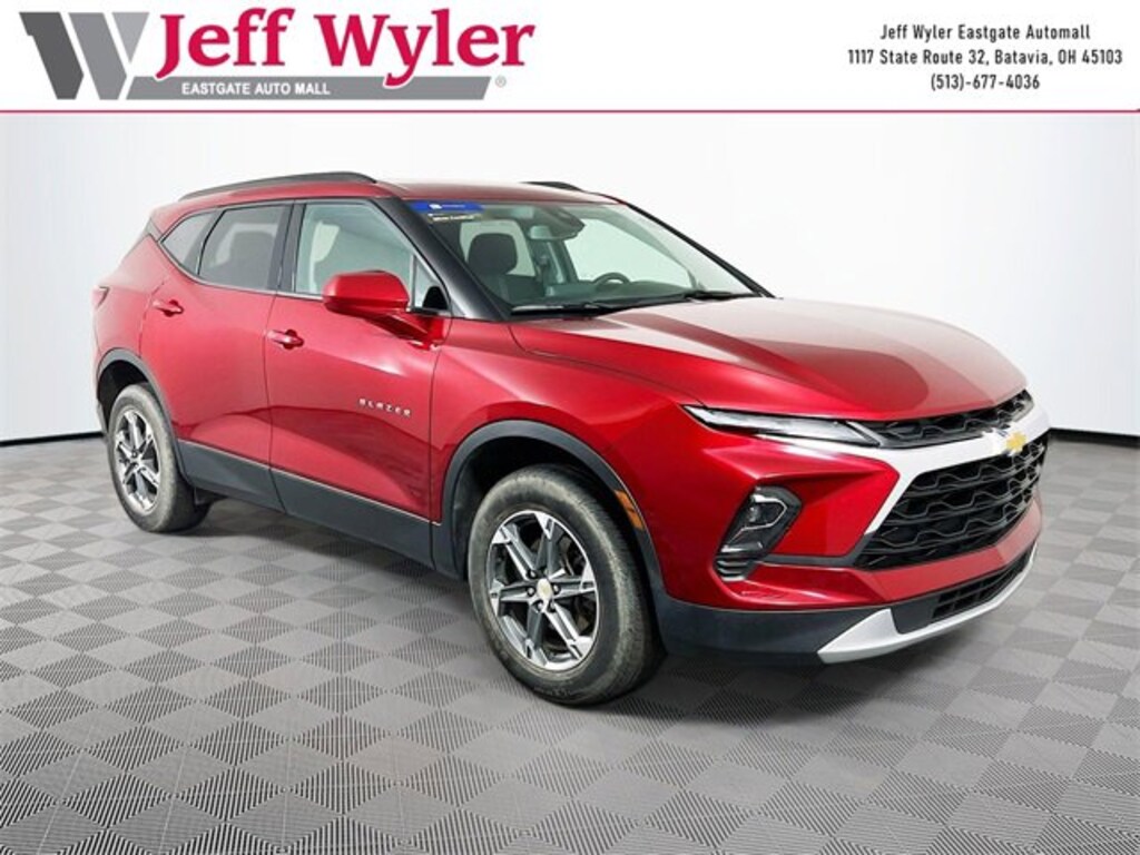Jeff Wyler Eastgate Auto Mall is pumped up to offer this terrific-looking 2024 Chevrolet Blazer LT in Radiant Red Tintcoat. Well equipped with: Convenience Package (Adaptive Cruise Control, Black Roof-Mounted Side Rails, Enhanced Automatic Emergency Braking, Inside Rear-View Auto-Dimming Mirror, Rear Power Programmable Liftgate, Universal Home Remote, and Wireless Charging), Preferred Equipment Group 2LT, 170 Amp Alternator, 3.47 Final Drive Axle Ratio, 4-Way Manual Front Passenger Seat Adjuster, 4-Wheel Disc Brakes, 6 Speakers, 6-Speaker Audio System Feature, 8-Way Power Driver Seat Adjuster, ABS brakes, Air Conditioning, Alloy wheels, AM/FM radio: SiriusXM with 360L, Apple CarPlay/Android Auto, Auto High-beam Headlights, Automatic temperature control, Brake assist, Bumpers: body-color, Child-Seat-Sensing Airbag, Compass, Delay-off headlights, Driver door bin, Driver vanity mirror, Dual front impact airbags, Dual front side impact airbags, Electronic Stability Control, Emergency communication system: OnStar and Chevrolet connected services capable, Four wheel independent suspension, Front anti-roll bar, Front Bucket Seats, Front Center Armrest, Front dual zone A/C, Front reading lights, Fully automatic headlights, Heated door mirrors, Heated Driver & Front Passenger Seats, Heated front seats, Illuminated entry, Knee airbag, Leather Shift Knob, Low tire pressure warning, Occupant sensing airbag, Outside temperature display, Overhead airbag, Overhead console, Panic alarm, Passenger door bin, Passenger vanity mirror, Power door mirrors, Power Driver Lumbar Control, Power driver seat, Power steering, Power windows, Premium audio system: Chevrolet Infotainment 3 Plus, Premium Cloth Seat Trim, Radio data system, Radio: Chevrolet Infotainment 3 Plus System, Rear anti-roll bar, Rear reading lights, Rear seat center armrest, Rear window defroster, Rear window wiper, Remote keyless entry, Ride & Handling Suspension, Security system, SiriusXM w/360L, Speed control, Speed-sensing steering, Split folding rear seat, Spoiler, Steering wheel mounted audio controls, Tachometer, Telescoping steering wheel, Tilt steering wheel, Traction control, Trip computer, Variably intermittent wipers, Voltmeter, and Wheels: 18" Grazen Metallic Aluminum. Clean CARFAX. Ask about available certifications. Used vehicles 10 years of age or newer with less than 100,000 miles are eligible for the Wyler Assurance Program, but eligible vehicles must pass our reconditioning process and multi-point inspection. Provided the vehicle passes inspection, vehicles will be eligible for the 6 month/6,000 mile limited warranty. The 6 month/6,000 mile limited warranty is NOT available on AS-IS vehicles, wholesale vehicles, lease buyback/pass-thru vehicles or un-inspected vehicles. Note that this program can also apply to vehicles where the remaining factory coverage is less than 6 months or 6,000 miles. Please check the Federal Trade Commission (FTC) Buyers guide on the vehicle for full details as to whether or not warranty coverage may apply. Contact Dealer for additional details. The Wyler Assurance 6 month/6,000 Mile limited warranty ends 6 months from the date of the Retail Purchase Agreement (BUYERS ORDER) or when the vehicle's odometer registers 6,000 additional miles to the mileage listed on the BUYERS ORDER, whichever comes first. Your Deductible - The warranty holder on your contract pays the first $100 of each covered repair.