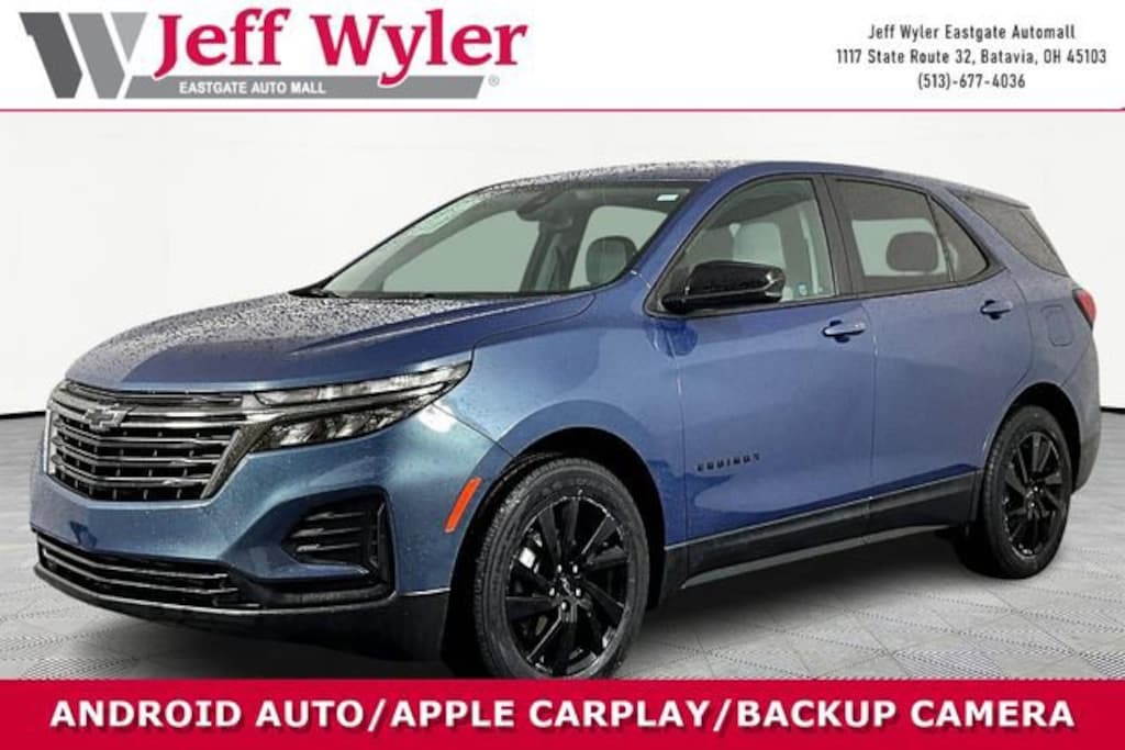 Jeff Wyler Eastgate Auto Mall is delighted to offer this good-looking 2024 Chevrolet Equinox LS in Lakeshore Blue Metallic. Well equipped with: LS Convenience Package (2-Way Power Driver Lumbar Control Seat Adjuster, Deep-Tinted Rear Glass, Driver 8-Way Power Seat Adjuster, and Multi-Color Enhanced Driver Instrument Info Display), Midnight Edition (Body-Color Mirror Caps, Front & Rear Black Bowtie Emblems, Unique Mold-In-Color Black Grille, and Wheels: 18" Gloss Black Aluminum), Preferred Equipment Group 1LS, Sport Edition, 17" Aluminum Wheels, 2 Rear USB Charging-Only Ports, 2 USB Ports & Auxiliary Input Jack, 3.50 Final Drive Axle Ratio, 4-Wheel Disc Brakes, 6 Speakers, 6-Speaker Audio System Feature, ABS brakes, Air Conditioning, Alloy wheels, AM/FM radio: SiriusXM, Auto High-beam Headlights, Bluetooth® For Phone, Brake assist, Bumpers: body-color, Compass, Delay-off headlights, Driver 4-Way Manual Seat Adjuster, Driver door bin, Driver vanity mirror, Dual front impact airbags, Dual front side impact airbags, Electronic Stability Control, Emergency communication system: OnStar and Chevrolet connected services capable, Four wheel independent suspension, Front anti-roll bar, Front Bucket Seats, Front Center Armrest, Front Passenger 4-Way Manual Seat Adjuster, Front reading lights, Fully automatic headlights, Heated door mirrors, Illuminated entry, Low tire pressure warning, Occupant sensing airbag, Outside temperature display, Overhead airbag, Overhead console, Panic alarm, Passenger door bin, Passenger vanity mirror, Power door mirrors, Power steering, Power windows, Premium audio system: Chevrolet Infotainment 3, Premium Cloth Seat Trim, Radio data system, Radio: Chevrolet Infotainment 3 System w/AM/FM, Rear anti-roll bar, Rear reading lights, Rear seat center armrest, Rear window defroster, Rear window wiper, Remote keyless entry, Remote Start, Security system, SiriusXM, Speed control, Speed-sensing steering, Split folding rear seat, Spoiler, Steering wheel mounted audio controls, Tachometer, Telescoping steering wheel, Tilt steering wheel, Traction control, Trip computer, and Variably intermittent wipers. CARFAX One-Owner. Clean CARFAX. Ask about available certifications. Used vehicles 10 years of age or newer with less than 100,000 miles are eligible for the Wyler Assurance Program, but eligible vehicles must pass our reconditioning process and multi-point inspection. Provided the vehicle passes inspection, vehicles will be eligible for the 6 month/6,000 mile limited warranty. The 6 month/6,000 mile limited warranty is NOT available on AS-IS vehicles, wholesale vehicles, lease buyback/pass-thru vehicles or un-inspected vehicles. Note that this program can also apply to vehicles where the remaining factory coverage is less than 6 months or 6,000 miles. Please check the Federal Trade Commission (FTC) Buyers guide on the vehicle for full details as to whether or not warranty coverage may apply. Contact Dealer for additional details. The Wyler Assurance 6 month/6,000 Mile limited warranty ends 6 months from the date of the Retail Purchase Agreement (BUYERS ORDER) or when the vehicle's odometer registers 6,000 additional miles to the mileage listed on the BUYERS ORDER, whichever comes first. Your Deductible - The warranty holder on your contract pays the first $100 of each covered repair.