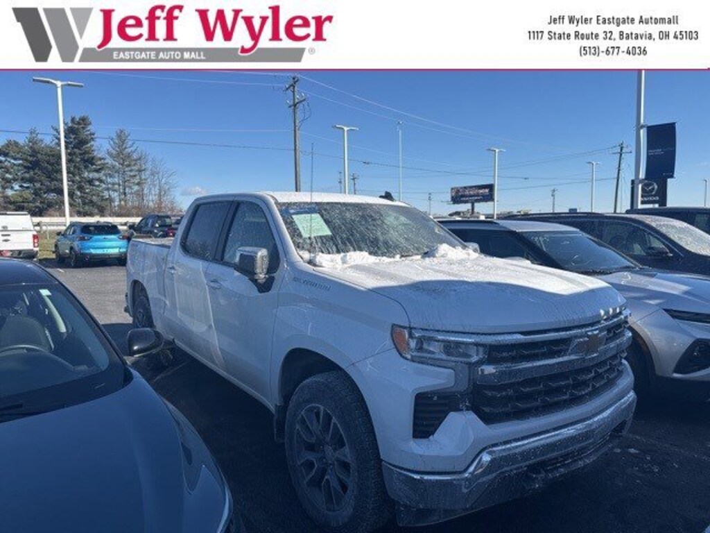 Jeff Wyler Eastgate Auto Mall is pleased to offer this wonderful 2024 Chevrolet Silverado 1500 LT in Summit White. Well equipped with: Convenience Package (10-Way Power Driver Seat w/Lumbar, 120-Volt Bed Mounted Power Outlet, 120-Volt Interior Power Outlet, Dual Rear USB Ports (Charge Only), Dual-Zone Automatic Climate Control, Heated Driver & Front Outboard Passenger Seats, Heated Steering Wheel, Keyless Open & Start, and Wrapped Steering Wheel), High Capacity Suspension Package, Standard Suspension Package, Trailering Package (Hitch Guidance), 12.3" Multicolor Reconfigurable Digital Display, 3.42 Rear Axle Ratio, 4-Wheel Disc Brakes, 40/20/40 Front Split-Bench Seat, 6 Speakers, 6-Speaker Audio System, ABS brakes, Air Conditioning, All-Star Edition, Alloy wheels, AM/FM radio: SiriusXM with 360L, Auto High-beam Headlights, Auto-Locking Rear Differential, Automatic Emergency Braking, Automatic temperature control, Bluetooth® For Phone, Brake assist, Bumpers: chrome, Chevrolet Connected Access Capable, Chrome Mirror Caps, Cloth Seat Trim, Color-Keyed Carpeting Floor Covering, Compass, Deep-Tinted Glass, Delay-off headlights, Driver door bin, Driver vanity mirror, Dual front impact airbags, Dual front side impact airbags, Electric Rear-Window Defogger, Electrical Steering Column Lock, Electronic Cruise Control, Electronic Stability Control, Following Distance Indicator, Forward Collision Alert, Front anti-roll bar, Front Center Armrest w/Storage, Front dual zone A/C, Front Frame-Mounted Black Recovery Hooks, Front Pedestrian Braking, Front reading lights, Front wheel independent suspension, Fully automatic headlights, HD Rear Vision Camera, Heated door mirrors, Heated front seats, Heated steering wheel, Illuminated entry, IntelliBeam Automatic High Beam On/Off, Lane Keep Assist w/Lane Departure Warning, LED Cargo Area Lighting, Low tire pressure warning, Not Equipped w/Steering Column Lock, Occupant sensing airbag, OnStar & Chevrolet Connected Services Capable, Outside temperature display, Overhead airbag, Overhead console, Panic alarm, Passenger door bin, Passenger vanity mirror, Power door mirrors, Power driver seat, Power Front Windows w/Driver Express Up/Down, Power Front Windows w/Passenger Express Down, Power Rear Windows w/Express Down, Power steering, Power windows, Premium audio system: Chevrolet Infotainment 3 Premium, Radio data system, Radio: Chevrolet Infotainment 3 Premium System, Rear 60/40 Folding Bench Seat (Folds Up), Rear reading lights, Rear step bumper, Rear window defroster, Remote keyless entry, Remote Vehicle Starter System, Security system, SiriusXM w/360L, Speed control, Speed-sensing steering, Split folding rear seat, Steering Wheel Audio Controls, Steering wheel mounted audio controls, Tachometer, Telescoping steering wheel, Theft Deterrent System (Unauthorized Entry), Tilt steering wheel, Traction control, Trip computer, Variably intermittent wipers, Voltmeter, Wheels: 18" x 8.5" Bright Silver Painted Aluminum, Wheels: 20" x 9" Painted Aluminum, and Wi-Fi Hot Spot Capable. Clean CARFAX. Ask about available certifications. Used vehicles 10 years of age or newer with less than 100,000 miles are eligible for the Wyler Assurance Program, but eligible vehicles must pass our reconditioning process and multi-point inspection. Provided the vehicle passes inspection, vehicles will be eligible for the 6 month/6,000 mile limited warranty. The 6 month/6,000 mile limited warranty is NOT available on AS-IS vehicles, wholesale vehicles, lease buyback/pass-thru vehicles or un-inspected vehicles. Note that this program can also apply to vehicles where the remaining factory coverage is less than 6 months or 6,000 miles. Please check the Federal Trade Commission (FTC) Buyers guide on the vehicle for full details as to whether or not warranty coverage may apply. Contact Dealer for additional details. The Wyler Assurance 6 month/6,000 Mile limited warranty ends 6 months from the date of the Retail Purchase Agreement (BUY