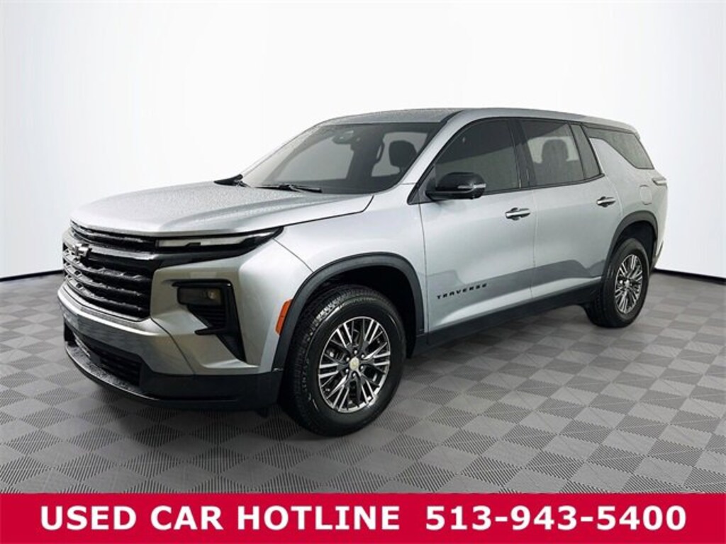 Jeff Wyler Eastgate Auto Mall is pleased to offer this charming-looking 2024 Chevrolet Traverse LS in Sterling Gray Metallic. Well equipped with: Midnight/Sport Edition (High Gloss Black Door Upper Molding and Wheels: 20" High Gloss Black Painted Aluminum), Preferred Equipment Group 1LS, 3rd row seats: split-bench, 4-Way Manual Front Passenger Seat Adjuster, 4-Wheel Disc Brakes, 6 Speakers, 6-Speaker Audio System Feature, 6-Way Manual Driver Seat Adjuster, ABS brakes, Air Conditioning, Alloy wheels, AM/FM radio: SiriusXM with 360L, Apple CarPlay/Android Auto, Auto High-beam Headlights, Automatic temperature control, Brake assist, Bumpers: body-color, Compass, Delay-off headlights, Driver door bin, Driver vanity mirror, Dual front impact airbags, Dual front side impact airbags, Electronic Stability Control, Emergency communication system, Exterior Parking Camera Rear, Four wheel independent suspension, Front anti-roll bar, Front Bucket Seats, Front Center Armrest, Front dual zone A/C, Front reading lights, Fully automatic headlights, Heated door mirrors, Heated front seats, Heated steering wheel, Illuminated entry, Low tire pressure warning, Navigation System, Occupant sensing airbag, Outside temperature display, Overhead airbag, Overhead console, Panic alarm, Passenger door bin, Passenger vanity mirror, Power door mirrors, Power Liftgate, Power steering, Power windows, Premium Cloth Seat Trim, Radio data system, Radio: 17.7" Diagonal Display, Rear air conditioning, Rear anti-roll bar, Rear reading lights, Rear window defroster, Rear window wiper, Remote keyless entry, Security system, SiriusXM w/360L, Speed control, Speed-sensing steering, Split folding rear seat, Spoiler, Steering wheel mounted audio controls, Tachometer, TBD Axle Ratio, Telescoping steering wheel, Tilt steering wheel, Traction control, Trip computer, Turn signal indicator mirrors, Variably intermittent wipers, Voltmeter, and Wheels: 18" Grazen Metallic Machined-Face Aluminum. CARFAX One-Owner. Clean CARFAX. Ask about available certifications. Used vehicles 10 years of age or newer with less than 100,000 miles are eligible for the Wyler Assurance Program, but eligible vehicles must pass our reconditioning process and multi-point inspection. Provided the vehicle passes inspection, vehicles will be eligible for the 6 month/6,000 mile limited warranty. The 6 month/6,000 mile limited warranty is NOT available on AS-IS vehicles, wholesale vehicles, lease buyback/pass-thru vehicles or un-inspected vehicles. Note that this program can also apply to vehicles where the remaining factory coverage is less than 6 months or 6,000 miles. Please check the Federal Trade Commission (FTC) Buyers guide on the vehicle for full details as to whether or not warranty coverage may apply. Contact Dealer for additional details. The Wyler Assurance 6 month/6,000 Mile limited warranty ends 6 months from the date of the Retail Purchase Agreement (BUYERS ORDER) or when the vehicle's odometer registers 6,000 additional miles to the mileage listed on the BUYERS ORDER, whichever comes first. Your Deductible - The warranty holder on your contract pays the first $100 of each covered repair.
