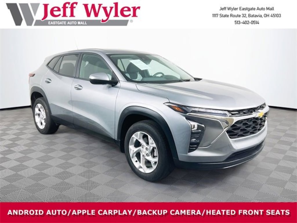 Jeff Wyler Eastgate Auto Mall is excited to offer this outstanding-looking 2024 Chevrolet Trax LS in Sterling Gray Metallic. Well equipped with: LS Convenience Package (Body-Color Painted Mirror Caps, Carpeted Rear Floor Mats, Heated Driver & Front Passenger Seats, Heated Power-Adjustable Outside Mirrors, Remote Start, and Wheels: 17" Silver Painted Aluminum), Preferred Equipment Group 1LS, 17" Steel Wheels w/Wheel Covers, 2-Way Adjustable Front Head Restraints, 3.50 Final Drive Axle Ratio, 4 Speakers, 4-Speaker Audio System Feature, 4-Way Manual Front Passenger Seat Adjuster, 4-Wheel Disc Brakes, 6-Way Manual Driver Seat Adjuster, ABS brakes, Air Conditioning, AM/FM radio: SiriusXM, Auto High-beam Headlights, Brake assist, Bumpers: body-color, Cloth Seat Trim, Compass, Delay-off headlights, Driver door bin, Driver vanity mirror, Dual front impact airbags, Dual front side impact airbags, Electronic Stability Control, Emergency communication system: OnStar and Chevrolet connected services capable, Exterior Parking Camera Rear, Front anti-roll bar, Front Bucket Seats, Front Center Armrest, Front reading lights, Front wheel independent suspension, Fully automatic headlights, Illuminated entry, Low tire pressure warning, Occupant sensing airbag, Outside temperature display, Overhead airbag, Overhead console, Panic alarm, Passenger door bin, Passenger vanity mirror, Power door mirrors, Power steering, Power windows, Premium audio system: Chevrolet Infotainment 3, Radio data system, Radio: Chevrolet Infotainment 3 System w/AM/FM, Rear window defroster, Rear window wiper, Remote keyless entry, Security system, SiriusXM, Speed control, Split folding rear seat, Spoiler, Steering wheel mounted audio controls, Tachometer, Telescoping steering wheel, Tilt steering wheel, Traction control, Trip computer, and Variably intermittent wipers. CARFAX One-Owner. Clean CARFAX. Awards: * Car and Driver 10 BestCar and Driver, January 2017. Ask about available certifications. Used vehicles 10 years of age or newer with less than 100,000 miles are eligible for the Wyler Assurance Program, but eligible vehicles must pass our reconditioning process and multi-point inspection. Provided the vehicle passes inspection, vehicles will be eligible for the 6 month/6,000 mile limited warranty. The 6 month/6,000 mile limited warranty is NOT available on AS-IS vehicles, wholesale vehicles, lease buyback/pass-thru vehicles or un-inspected vehicles. Note that this program can also apply to vehicles where the remaining factory coverage is less than 6 months or 6,000 miles. Please check the Federal Trade Commission (FTC) Buyers guide on the vehicle for full details as to whether or not warranty coverage may apply. Contact Dealer for additional details. The Wyler Assurance 6 month/6,000 Mile limited warranty ends 6 months from the date of the Retail Purchase Agreement (BUYERS ORDER) or when the vehicle's odometer registers 6,000 additional miles to the mileage listed on the BUYERS ORDER, whichever comes first. Your Deductible - The warranty holder on your contract pays the first $100 of each covered repair.
