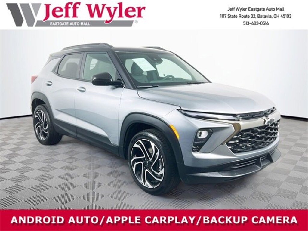 Jeff Wyler Eastgate Auto Mall is excited to offer this wonderful-looking 2025 Chevrolet TrailBlazer RS in Sterling Gray Metallic. Well equipped with: Adaptive Cruise & Sound Package (Adaptive Cruise Control and Bose Premium 7-Speaker Audio System Feature), Convenience Package (1 Type-A & 1 Type-C USB Charging-Only Ports, 120-Volt Power Outlet, Cabin Humidity Sensor, Dr & Fr Passenger Illuminated Vanity Mirrors, Hands Free Power Programmable Liftgate, Inside Rear-View Auto-Dimming Mirror, Single-Zone Automatic Climate Control, and Wireless Charging), Driver Confidence Package (Lane Change Alert w/Side Blind Zone Alert, Rear Cross Traffic Alert, and Rear Park Assist), Preferred Equipment Group 1RS, 1 Type-A & 1 Type-C USB Ports, 2-Way Power Driver Lumbar Seat Adjuster, 3.17 Final Drive Axle Ratio, 4-Way Manual Front Passenger Seat Adjuster, 4-Wheel Disc Brakes, 6 Speakers, 6-Speaker Audio System Feature w/Amplifier, 8-Way Power Driver Seat Adjuster, ABS brakes, Air Conditioning, All-Weather Floor Mats, Alloy wheels, AM/FM radio: SiriusXM, Auto High-beam Headlights, Brake assist, Bumpers: body-color, Compass, Delay-off headlights, Driver door bin, Driver vanity mirror, Dual front impact airbags, Dual front side impact airbags, Electronic Stability Control, Emergency communication system: OnStar and Chevrolet connected services capable, Evotex Seat Trim, Exterior Parking Camera Rear, Flat-Folding Front Passenger Seatback, Front anti-roll bar, Front Bucket Seats, Front Center Armrest, Front reading lights, Front wheel independent suspension, Fully automatic headlights, Heated door mirrors, Heated Driver & Front Passenger Seats, Heated front seats, Heated steering wheel, Illuminated entry, Knee airbag, Low tire pressure warning, Mosaic Black Metallic Two-Tone Roof, Occupant sensing airbag, Overhead airbag, Overhead console, Panic alarm, Passenger door bin, Passenger vanity mirror, Power door mirrors, Power driver seat, Power steering, Power windows, Radio data system, Radio: AM/FM Stereo Audio System, Rear seat center armrest, Rear side impact airbag, Rear window defroster, Rear window wiper, Remote keyless entry, Ride & Handling Suspension, Security system, SiriusXM Trial Subscription, Speed control, Split folding rear seat, Spoiler, Steering wheel mounted audio controls, Tachometer, Telescoping steering wheel, Tilt steering wheel, Traction control, Trip computer, Variably intermittent wipers, Vertical Cargo Net (LPO), Wheels: 19" High Gloss Black Machined Aluminum, and Wireless Apple CarPlay/Android Auto. CARFAX One-Owner. Ask about available certifications. Used vehicles 10 years of age or newer with less than 100,000 miles are eligible for the Wyler Assurance Program, but eligible vehicles must pass our reconditioning process and multi-point inspection. Provided the vehicle passes inspection, vehicles will be eligible for the 6 month/6,000 mile limited warranty. The 6 month/6,000 mile limited warranty is NOT available on AS-IS vehicles, wholesale vehicles, lease buyback/pass-thru vehicles or un-inspected vehicles. Note that this program can also apply to vehicles where the remaining factory coverage is less than 6 months or 6,000 miles. Please check the Federal Trade Commission (FTC) Buyers guide on the vehicle for full details as to whether or not warranty coverage may apply. Contact Dealer for additional details. The Wyler Assurance 6 month/6,000 Mile limited warranty ends 6 months from the date of the Retail Purchase Agreement (BUYERS ORDER) or when the vehicle's odometer registers 6,000 additional miles to the mileage listed on the BUYERS ORDER, whichever comes first. Your Deductible - The warranty holder on your contract pays the first $100 of each covered repair.