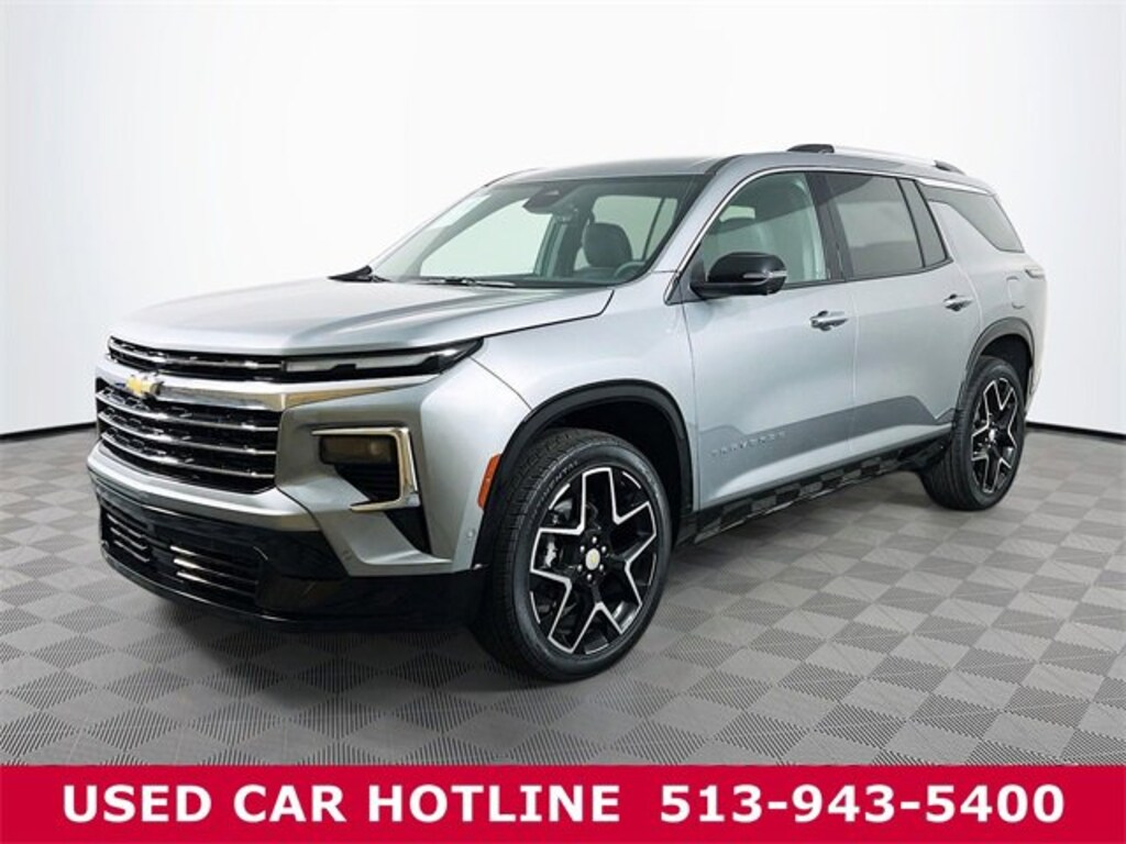 Jeff Wyler Eastgate Auto Mall is excited to offer this wonderful-looking 2025 Chevrolet Traverse High Country in Sterling Gray Metallic. Well equipped with: Floor Liner Package (1st and 2nd Row All-Weather Floor Liners and 3rd Row All-Weather Floor Liner), Preferred Equipment Group 1LZ, 12 Speakers, 3rd row seats: split-bench, 4-Wheel Disc Brakes, 6-Way Power Front Passenger Seat Adjuster, 8-Way Power Driver Seat Adjuster, ABS brakes, Air Conditioning, Alloy wheels, AM/FM radio: SiriusXM with 360L, Apple CarPlay/Android Auto, Auto High-beam Headlights, Auto tilt-away steering wheel, Auto-dimming door mirrors, Automatic temperature control, Bose Premium 12-Speaker Audio System Feature, Brake assist, Bumpers: body-color, Child-Seat-Sensing Airbag, Compass, Delay-off headlights, Driver 4-Way Power Lumbar Seat Adjuster, Driver door bin, Driver vanity mirror, Dual front impact airbags, Dual front side impact airbags, Electronic Stability Control, Emergency communication system: OnStar, Exterior Parking Camera Rear, Four wheel independent suspension, Front anti-roll bar, Front Bucket Seats, Front Center Armrest, Front dual zone A/C, Front Passenger 4-Way Power Lumbar Seat Adjuster, Front reading lights, Fully automatic headlights, Garage door transmitter, Heated door mirrors, Heated front seats, Heated rear seats, Heated steering wheel, Illuminated entry, Low tire pressure warning, Memory seat, Navigation System, Occupant sensing airbag, Outside temperature display, Overhead airbag, Overhead console, Panic alarm, Passenger door bin, Passenger vanity mirror, Perforated Leather-Appointed Seat Trim, Power door mirrors, Power driver seat, Power Liftgate, Power passenger seat, Power steering, Power windows, Radio data system, Radio: : Audio System w/17.7" Diagonal Display, Rain sensing wipers, Rear air conditioning, Rear anti-roll bar, Rear reading lights, Rear window defroster, Rear window wiper, Remote keyless entry, Security system, SiriusXM with 360L Trial Subscription, Speed control, Speed-sensing steering, Spoiler, Steering wheel memory, Steering wheel mounted audio controls, Tachometer, Telescoping steering wheel, Tilt steering wheel, Traction control, Trip computer, Turn signal indicator mirrors, Variably intermittent wipers, Ventilated front seats, Voltmeter, and Wheels: 22" High-Gloss Black Aluminum. CARFAX One-Owner. Clean CARFAX. Ask about available certifications. Used vehicles 10 years of age or newer with less than 100,000 miles are eligible for the Wyler Assurance Program, but eligible vehicles must pass our reconditioning process and multi-point inspection. Provided the vehicle passes inspection, vehicles will be eligible for the 6 month/6,000 mile limited warranty. The 6 month/6,000 mile limited warranty is NOT available on AS-IS vehicles, wholesale vehicles, lease buyback/pass-thru vehicles or un-inspected vehicles. Note that this program can also apply to vehicles where the remaining factory coverage is less than 6 months or 6,000 miles. Please check the Federal Trade Commission (FTC) Buyers guide on the vehicle for full details as to whether or not warranty coverage may apply. Contact Dealer for additional details. The Wyler Assurance 6 month/6,000 Mile limited warranty ends 6 months from the date of the Retail Purchase Agreement (BUYERS ORDER) or when the vehicle's odometer registers 6,000 additional miles to the mileage listed on the BUYERS ORDER, whichever comes first. Your Deductible - The warranty holder on your contract pays the first $100 of each covered repair.