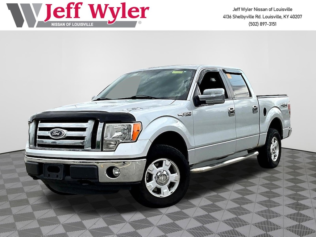 Jeff Wyler Nissan of Louisville is proud to offer this rock solid 2011 Ford F-150 XLT in Ingot Silver. ** ALL WHEEL DRIVE/AWD **, ** CLEAN CARFAX REPORT **, ** BLUETOOTH **, ** EXCELLENT SERVICE HISTORY **, ** LOCALLY OWNED **, and ** HOME DELIVERY OPTIONS! ** Order Code 507A, 5.0L V8 FFV, 4WD, 17" Machined-Aluminum w/Painted Accents Wheels, 3.55 Axle Ratio, 4 Speakers, 4-Wheel Disc Brakes, ABS brakes, Air Conditioning, Alloy wheels, AM/FM radio, AM/FM Stereo/Clock/Single CD, Bumpers: chrome, CD player, Cloth 40/20/40 Front Seat, Compass, Delay-off headlights, Driver door bin, Driver vanity mirror, Dual front impact airbags, Dual front side impact airbags, Electronic Stability Control, Front anti-roll bar, Front Center Armrest w/Storage, Front fog lights, Front reading lights, Front wheel independent suspension, Fully automatic headlights, Illuminated entry, Low tire pressure warning, Occupant sensing airbag, Outside temperature display, Overhead airbag, Overhead console, Panic alarm, Passenger door bin, Passenger vanity mirror, Power door mirrors, Power steering, Power windows, Radio data system, Rear reading lights, Rear step bumper, Remote keyless entry, Security system, Speed control, Speed-sensing steering, Split folding rear seat, Tachometer, Tilt steering wheel, Traction control, Variably intermittent wipers, and Front License Plate Bracket Our PRE-OWNED vehicles are put through a rigorous 167- POINT QUALITY ASSURANCE INSPECTION along with an average amount of over $1,400.00 SPENT to recondition each vehicle so we can be sure to deliver you the highest quality vehicle like you deserve! ***ONLINE PRICE DOES NOT INCLUDE WYLER FAMILY FIRST PACKAGE*** Stop by 4136 Shelbyville Road to see for yourself, or give us a call @ 502-897-3151 to schedule your test drive! ** ALL WHEEL DRIVE/AWD **, ** CLEAN CARFAX REPORT **, ** BLUETOOTH **, ** EXCELLENT SERVICE HISTORY **, ** LOCALLY OWNED **, 5.0L V8 FFV, 4WD, 17" Machined-Aluminum w/Painted Accents Wheels, 3.55 Axle Ratio, 4 Speakers, 4-Wheel Disc Brakes, ABS brakes, Air Conditioning, Alloy wheels, AM/FM radio, AM/FM Stereo/Clock/Single CD, Bumpers: chrome, CD player, Cloth 40/20/40 Front Seat, Compass, Delay-off headlights, Driver door bin, Driver vanity mirror, Dual front impact airbags, Dual front side impact airbags, Electronic Stability Control, Front anti-roll bar, Front Center Armrest w/Storage, Front fog lights, Front reading lights, Front wheel independent suspension, Fully automatic headlights, Illuminated entry, Low tire pressure warning, Occupant sensing airbag, Order Code 507A, Outside temperature display, Overhead airbag, Overhead console, Panic alarm, Passenger door bin, Passenger vanity mirror, Power door mirrors, Power steering, Power windows, Radio data system, Rear reading lights, Rear step bumper, Remote keyless entry, Security system, Speed control, Speed-sensing steering, Split folding rear seat, Tachometer, Tilt steering wheel, Traction control, Variably intermittent wipers.