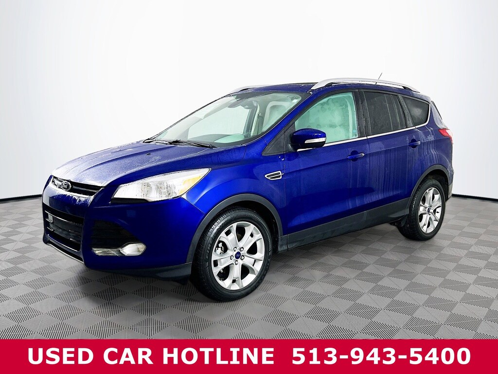 Jeff Wyler Eastgate Auto Mall is pumped up to offer this great 2014 Ford Escape Titanium in Blue. Well equipped with: 10 Speakers, 3.21 Axle Ratio, 4-Wheel Disc Brakes, ABS brakes, Air Conditioning, Alloy wheels, AM/FM radio: SiriusXM, Auto-dimming Rear-View mirror, Automatic temperature control, Brake assist, Bumpers: body-color, CD player, Compass, Delay-off headlights, Driver door bin, Driver vanity mirror, Dual front impact airbags, Dual front side impact airbags, Electronic Stability Control, Exterior Parking Camera Rear, Four wheel independent suspension, Front anti-roll bar, Front Bucket Seats, Front Center Armrest, Front dual zone A/C, Front fog lights, Front reading lights, Fully automatic headlights, Garage door transmitter, Heated door mirrors, Heated front seats, Heated Leather-Trimmed Buckets w/60/40 Rear Seat, Illuminated entry, Knee airbag, Leather Shift Knob, Low tire pressure warning, Memory seat, Occupant sensing airbag, Outside temperature display, Overhead airbag, Overhead console, Panic alarm, Passenger door bin, Passenger vanity mirror, Power door mirrors, Power driver seat, Power Liftgate, Power steering, Power windows, Radio data system, Radio: AM/FM Single CD/MP3, Rear anti-roll bar, Rear Parking Sensors, Rear reading lights, Rear seat center armrest, Rear window defroster, Rear window wiper, Remote keyless entry, Roof rack: rails only, Security system, Speed control, Speed-sensing steering, Split folding rear seat, Steering wheel mounted audio controls, SYNC w/MyFord Touch & SYNC Services, Tachometer, Telescoping steering wheel, Tilt steering wheel, Traction control, Trip computer, Turn signal indicator mirrors, Variably intermittent wipers, and Wheels: 18" Sparkle Nickel Painted Aluminum. Clean CARFAX. Reviews: * Get-noticed styling, great fuel economy and a powerful technology package are three good reasons you might find the Ford Escape is just what you want in a small crossover. Source: KBB.com * Good performance and fuel efficiency; many high-tech features; agile handling; high-quality cabin; comfortable seating. Source: EdmundsAwards: * 2014 KBB.com 10 Best SUVs Under $25,000 * 2014 KBB.com Brand Image Awards Ask about available certifications. Used vehicles 10 years of age or newer with less than 100,000 miles are eligible for the Wyler Assurance Program, but eligible vehicles must pass our reconditioning process and multi-point inspection. Provided the vehicle passes inspection, vehicles will be eligible for the 6 month/6,000 mile limited warranty. The 6 month/6,000 mile limited warranty is NOT available on AS-IS vehicles, wholesale vehicles, lease buyback/pass-thru vehicles or un-inspected vehicles. Note that this program can also apply to vehicles where the remaining factory coverage is less than 6 months or 6,000 miles. Please check the Federal Trade Commission (FTC) Buyers guide on the vehicle for full details as to whether or not warranty coverage may apply. Contact Dealer for additional details. The Wyler Assurance 6 month/6,000 Mile limited warranty ends 6 months from the date of the Retail Purchase Agreement (BUYERS ORDER) or when the vehicle's odometer registers 6,000 additional miles to the mileage listed on the BUYERS ORDER, whichever comes first. Your Deductible - The warranty holder on your contract pays the first $100 of each covered repair.