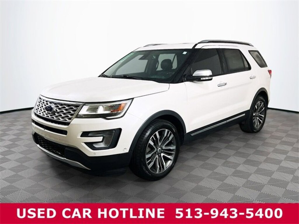 Jeff Wyler Eastgate Auto Mall is delighted to offer this great-looking 2017 Ford Explorer Platinum in White Platinum. Well equipped with: Equipment Group 600A, 12 Speakers, 3.16 Axle Ratio, 3rd row seats: split-bench, 4-Wheel Disc Brakes, ABS brakes, Adjustable pedals, Air Conditioning, Alloy wheels, AM/FM radio: SiriusXM, Auto High-beam Headlights, Auto tilt-away steering wheel, Auto-dimming door mirrors, Auto-dimming Rear-View mirror, Automatic temperature control, Brake assist, Bumpers: body-color, CD player, Compass, Delay-off headlights, Driver door bin, Driver vanity mirror, Dual front impact airbags, Dual front side impact airbags, Electronic Stability Control, Emergency communication system: SYNC 3 911 Assist, Exterior Parking Camera Rear, Four wheel independent suspension, Front & Rear Floor Liners, Front anti-roll bar, Front Bucket Seats, Front Center Armrest, Front dual zone A/C, Front fog lights, Front reading lights, Fully automatic headlights, Garage door transmitter, Genuine wood dashboard insert, Genuine wood door panel insert, Heated 2nd Row Bucket Seats w/Power-Assist Fold, Heated door mirrors, Heated front seats, Heated rear seats, Heated steering wheel, Illuminated entry, Knee airbag, Lane Departure Warning System, Leather steering wheel, Low tire pressure warning, Memory seat, Navigation System, Nirvana Multi Contour Leather Cooled Bucket Seats, Occupant sensing airbag, Outside temperature display, Overhead airbag, Overhead console, Panic alarm, Passenger door bin, Passenger vanity mirror, Pedal memory, Power door mirrors, Power driver seat, Power Liftgate, Power moonroof, Power passenger seat, Power steering, Power windows, Premium audio system: Sony, Radio data system, Radio: Premium Sound from Sony, Rain sensing wipers, Rear air conditioning, Rear anti-roll bar, Rear reading lights, Rear seat center armrest, Rear window defroster, Rear window wiper, Remote keyless entry, Roof rack: rails only, Security system, Speed control, Speed-sensing steering, Speed-Sensitive Wipers, Split folding rear seat, Spoiler, Steering wheel memory, Steering wheel mounted audio controls, SYNC 3 Communications & Entertainment System, Tachometer, Telescoping steering wheel, Tilt steering wheel, Traction control, Trip computer, Turn signal indicator mirrors, Variably intermittent wipers, Ventilated front seats, and Wheels: 20" Bright Machined Face Aluminum. Reviews: * Plenty of high-tech features that are easy to use; cargo space is generous behind the third row; turbocharged V6 engine delivers plentiful power; cabin is quiet and comfortable on the highway. Source: EdmundsAwards: * 2017 KBB.com Brand Image Awards * 2017 KBB.com 10 Most Awarded Brands Ask about available certifications. Used vehicles 10 years of age or newer with less than 100,000 miles are eligible for the Wyler Assurance Program, but eligible vehicles must pass our reconditioning process and multi-point inspection. Provided the vehicle passes inspection, vehicles will be eligible for the 6 month/6,000 mile limited warranty. The 6 month/6,000 mile limited warranty is NOT available on AS-IS vehicles, wholesale vehicles, lease buyback/pass-thru vehicles or un-inspected vehicles. Note that this program can also apply to vehicles where the remaining factory coverage is less than 6 months or 6,000 miles. Please check the Federal Trade Commission (FTC) Buyers guide on the vehicle for full details as to whether or not warranty coverage may apply. Contact Dealer for additional details. The Wyler Assurance 6 month/6,000 Mile limited warranty ends 6 months from the date of the Retail Purchase Agreement (BUYERS ORDER) or when the vehicle's odometer registers 6,000 additional miles to the mileage listed on the BUYERS ORDER, whichever comes first. Your Deductible - The warranty holder on your contract pays the first $100 of each covered repair.