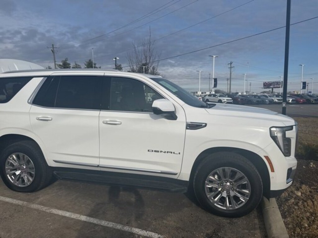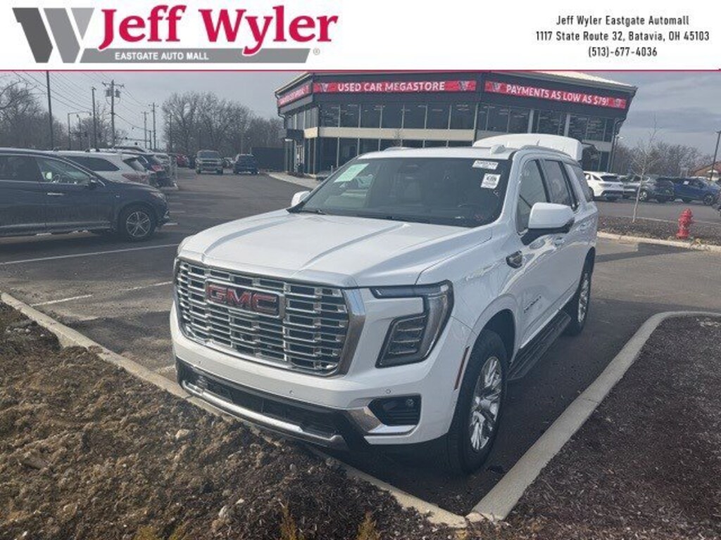Jeff Wyler Eastgate Auto Mall is excited to offer this beautiful-looking 2025 GMC Yukon Denali in Summit White. Well equipped with: Preferred Equipment Group 5SA (15" Diagonal Multi-Color Head-Up Display, 4-Way Power Driver Lumbar Seat Adjuster, 4-Way Power Front Passenger Lumbar Seat Adjuster, AutoSense Hands-Free Power Liftgate, Bright Front and Rear Door Sill Plates, Dual Exhaust System, Galvano Bodyside Moldings, Magnetic Ride Control Suspension, Perforated Heather and Ventilated Driver and Front Passenger Seats, Power Release 2nd Row Bucket Seats, Power Tilt and Telescopic Steering Column, and Wheels: 20" x 9" 6-Spoke Polished Aluminum), 10 Speakers, 3 Years of OnStar Services/Safety Services, 3.23 Rear Axle Ratio, 3rd row seats: split-bench, 4-Wheel Disc Brakes, ABS brakes, Adaptive suspension, Air Conditioning, Alloy wheels, AM/FM radio: SiriusXM with 360L, Apple CarPlay/Android Auto, Audio memory, Auto High-beam Headlights, Auto-dimming door mirrors, Auto-dimming Rear-View mirror, Auto-leveling suspension, Automatic temperature control, Bodyside moldings, Bose 10-Speaker Surround with CenterPoint, Brake assist, Bumpers: body-color, Compass, Delay-off headlights, Deleted OnStar Basics, Driver door bin, Driver vanity mirror, Dual front impact airbags, Dual front side impact airbags, Electronic Stability Control, Emergency communication system: OnStar and GMC connected services capable, Exterior Parking Camera Rear, Four wheel independent suspension, Front anti-roll bar, Front Bucket Seats, Front Center Armrest, Front dual zone A/C, Front fog lights, Front reading lights, Fully automatic headlights, Garage door transmitter, Heads-Up Display, Heated door mirrors, Heated Driver and Front Passenger Seats, Heated front seats, Heated rear seats, Heated steering wheel, Illuminated entry, Low tire pressure warning, Memory seat, Navigation system: GMC Connected Navigation, Occupant sensing airbag, Outside temperature display, Overhead airbag, Overhead console, Panic alarm, Passenger door bin, Passenger vanity mirror, Perforated Leather Seating Surfaces, Power door mirrors, Power driver seat, Power Liftgate, Power passenger seat, Power steering, Power windows, Radio: 16.8" Diagonal Premium GMC Infotainment System, Rain sensing wipers, Rear air conditioning, Rear anti-roll bar, Rear reading lights, Rear window defroster, Rear window wiper, Remote keyless entry, Security system, SiriusXM with 360L, Speed control, Speed-sensing steering, Split folding rear seat, Spoiler, Steering wheel memory, Steering wheel mounted audio controls, Tachometer, Telescoping steering wheel, Tilt steering wheel, Traction control, Trip computer, Turn signal indicator mirrors, Variably intermittent wipers, Ventilated front seats, and Voltmeter. CARFAX One-Owner. Clean CARFAX. Ask about available certifications. Used vehicles 10 years of age or newer with less than 100,000 miles are eligible for the Wyler Assurance Program, but eligible vehicles must pass our reconditioning process and multi-point inspection. Provided the vehicle passes inspection, vehicles will be eligible for the 6 month/6,000 mile limited warranty. The 6 month/6,000 mile limited warranty is NOT available on AS-IS vehicles, wholesale vehicles, lease buyback/pass-thru vehicles or un-inspected vehicles. Note that this program can also apply to vehicles where the remaining factory coverage is less than 6 months or 6,000 miles. Please check the Federal Trade Commission (FTC) Buyers guide on the vehicle for full details as to whether or not warranty coverage may apply. Contact Dealer for additional details. The Wyler Assurance 6 month/6,000 Mile limited warranty ends 6 months from the date of the Retail Purchase Agreement (BUYERS ORDER) or when the vehicle's odometer registers 6,000 additional miles to the mileage listed on the BUYERS ORDER, whichever comes first. Your Deductible - The warranty holder on your contract pays the first $100 of each covered repair.