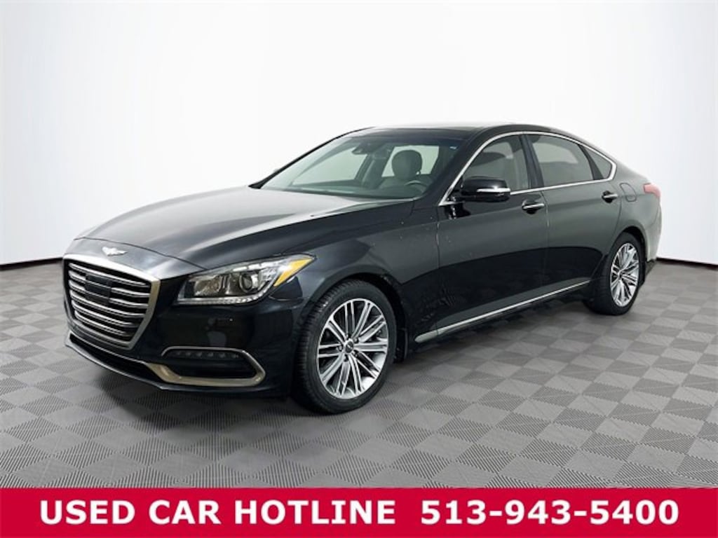 Jeff Wyler Eastgate Auto Mall is pumped up to offer this good-looking 2018 Genesis G80 3.8 in Black. Well equipped with: 12-Way Power Heated Front Bucket Seats, 18" Alloy Wheels, 4-Wheel Disc Brakes, 7 Speakers, ABS brakes, Air Conditioning, Alloy wheels, AM/FM radio: SiriusXM, Android Auto & Apple CarPlay, Anti-whiplash front head restraints, Auto High-beam Headlights, Auto tilt-away steering wheel, Auto-dimming door mirrors, Auto-dimming Rear-View mirror, Automatic temperature control, Bodyside moldings, Brake assist, Bumpers: body-color, CD player, Compass, Delay-off headlights, Driver door bin, Driver vanity mirror, Dual front impact airbags, Dual front side impact airbags, Electronic Stability Control, Emergency communication system: Genesis Connected Services, Exterior Parking Camera Rear, Four wheel independent suspension, Front anti-roll bar, Front Bucket Seats, Front Center Armrest, Front dual zone A/C, Front reading lights, Fully automatic headlights, Garage door transmitter: HomeLink, Heated door mirrors, Heated front seats, High intensity discharge headlights: Bi-Xenon, Illuminated entry, Knee airbag, Leather Seating Surfaces, Leather Shift Knob, Leather steering wheel, Low tire pressure warning, Memory seat, Navigation System, Occupant sensing airbag, Outside temperature display, Overhead airbag, Overhead console, Panic alarm, Passenger door bin, Passenger vanity mirror, Power door mirrors, Power driver seat, Power passenger seat, Power steering, Power windows, Radio data system, Radio: AM/FM/XM/HD/CD/MP3 Audio System, Rain sensing wipers, Rear anti-roll bar, Rear reading lights, Rear seat center armrest, Rear side impact airbag, Rear window defroster, Remote keyless entry, Security system, Speed control, Speed-sensing steering, Speed-Sensitive Wipers, Steering wheel memory, Steering wheel mounted audio controls, Tachometer, Telescoping steering wheel, Tilt steering wheel, Traction control, Trip computer, Turn signal indicator mirrors, and Variably intermittent wipers. Ask about available certifications. Used vehicles 10 years of age or newer with less than 100,000 miles are eligible for the Wyler Assurance Program, but eligible vehicles must pass our reconditioning process and multi-point inspection. Provided the vehicle passes inspection, vehicles will be eligible for the 6 month/6,000 mile limited warranty. The 6 month/6,000 mile limited warranty is NOT available on AS-IS vehicles, wholesale vehicles, lease buyback/pass-thru vehicles or un-inspected vehicles. Note that this program can also apply to vehicles where the remaining factory coverage is less than 6 months or 6,000 miles. Please check the Federal Trade Commission (FTC) Buyers guide on the vehicle for full details as to whether or not warranty coverage may apply. Contact Dealer for additional details. The Wyler Assurance 6 month/6,000 Mile limited warranty ends 6 months from the date of the Retail Purchase Agreement (BUYERS ORDER) or when the vehicle's odometer registers 6,000 additional miles to the mileage listed on the BUYERS ORDER, whichever comes first. Your Deductible - The warranty holder on your contract pays the first $100 of each covered repair.