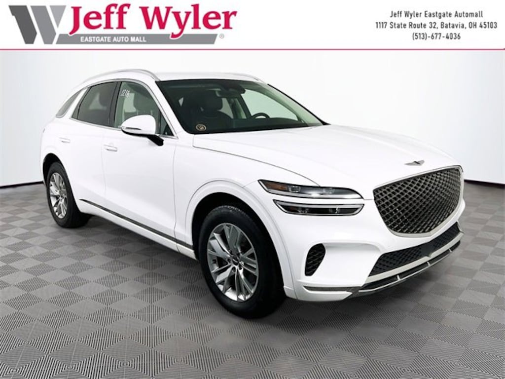 Jeff Wyler Eastgate Auto Mall is very proud to offer this attractive 2023 Genesis GV70 2.5T in Alta White. Well equipped with: Option Group 01, 4-Wheel Disc Brakes, 4.181 Axle Ratio, 9 Speakers, ABS brakes, Air Conditioning, Alloy wheels, AM/FM radio: SiriusXM, Android Auto & Apple CarPlay, Anti-whiplash front head restraints, Auto High-beam Headlights, Auto-dimming Rear-View mirror, Automatic temperature control, Brake assist, Bumpers: body-color, Cargo Cover, Cargo Net, Delay-off headlights, Driver door bin, Driver vanity mirror, Dual front impact airbags, Dual front side impact airbags, Electronic Stability Control, Emergency communication system, Exterior Parking Camera Rear, First Aid Kit, Four wheel independent suspension, Front anti-roll bar, Front Bucket Seats, Front Center Armrest w/Storage, Front dual zone A/C, Front reading lights, Fully automatic headlights, Garage door transmitter: HomeLink, Heated door mirrors, Heated Front Bucket Seats, Heated front seats, Illuminated entry, Knee airbag, Leatherette Seating Surfaces, Low tire pressure warning, Navigation System, Occupant sensing airbag, Outside temperature display, Overhead airbag, Overhead console, Panic alarm, Passenger door bin, Passenger vanity mirror, Power door mirrors, Power driver seat, Power Liftgate, Power passenger seat, Power steering, Power windows, Radio: AM/FM/SiriusXM/HD Premium Audio System, Rain sensing wipers, Rear anti-roll bar, Rear Parking Sensors, Rear reading lights, Rear seat center armrest, Rear window defroster, Rear window wiper, Remote keyless entry, Reversible Cargo Tray, Security system, Speed control, Speed-sensing steering, Speed-Sensitive Wipers, Split folding rear seat, Spoiler, Steering wheel mounted audio controls, Tachometer, Telescoping steering wheel, Tilt steering wheel, Traction control, Trip computer, Turn signal indicator mirrors, Variably intermittent wipers, Wheel Locks, and Wheels: 18" Real Steel Gray Alloy. CARFAX One-Owner. Ask about available certifications. Used vehicles 10 years of age or newer with less than 100,000 miles are eligible for the Wyler Assurance Program, but eligible vehicles must pass our reconditioning process and multi-point inspection. Provided the vehicle passes inspection, vehicles will be eligible for the 6 month/6,000 mile limited warranty. The 6 month/6,000 mile limited warranty is NOT available on AS-IS vehicles, wholesale vehicles, lease buyback/pass-thru vehicles or un-inspected vehicles. Note that this program can also apply to vehicles where the remaining factory coverage is less than 6 months or 6,000 miles. Please check the Federal Trade Commission (FTC) Buyers guide on the vehicle for full details as to whether or not warranty coverage may apply. Contact Dealer for additional details. The Wyler Assurance 6 month/6,000 Mile limited warranty ends 6 months from the date of the Retail Purchase Agreement (BUYERS ORDER) or when the vehicle's odometer registers 6,000 additional miles to the mileage listed on the BUYERS ORDER, whichever comes first. Your Deductible - The warranty holder on your contract pays the first $100 of each covered repair.