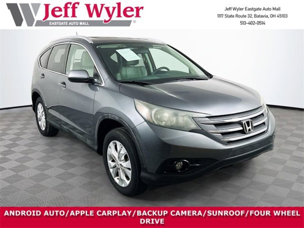 Jeff Wyler Eastgate Auto Mall is very proud to offer this handsome 2012 Honda CR-V EX-L in Gray. Well equipped with: 17" x 6.5" Alloy Wheels, 4-Wheel Disc Brakes, 4.44 Axle Ratio, 7 Speakers, ABS brakes, Air Conditioning, Alloy wheels, AM/FM radio: XM, Automatic temperature control, Brake assist, Bumpers: body-color, CD player, Compass, Delay-off headlights, Driver door bin, Driver vanity mirror, Driver's Seat Mounted Armrest, Dual front impact airbags, Dual front side impact airbags, Electronic Stability Control, Exterior Parking Camera Rear, Four wheel independent suspension, Front anti-roll bar, Front Bucket Seats, Front dual zone A/C, Front fog lights, Front reading lights, Heated door mirrors, Heated front seats, Heated Reclining Front Bucket Seats, Illuminated entry, Leather Shift Knob, Leather-Trimmed Seats, Low tire pressure warning, Occupant sensing airbag, Outside temperature display, Overhead airbag, Overhead console, Panic alarm, Passenger door bin, Passenger seat mounted armrest, Passenger vanity mirror, Power door mirrors, Power driver seat, Power moonroof, Power steering, Power windows, Radio data system, Radio: AM/FM/CD Audio System w/XM Radio, Rear anti-roll bar, Rear seat center armrest, Rear window defroster, Rear window wiper, Remote keyless entry, Roof rack: rails only, Security system, Speed control, Speed-sensing steering, Speed-Sensitive Wipers, Split folding rear seat, Steering wheel mounted audio controls, Tachometer, Telescoping steering wheel, Tilt steering wheel, Traction control, Trip computer, and Variably intermittent wipers. Reviews: * Lots of room for passengers and cargo; high fuel economy; user-friendly controls; ample tech and family-friendly features; nimble handling. Source: Edmunds * While a bounty of changes inside and out endow the 2012 Honda CR-V with a new level of user-friendly appeal, this latest incarnation retains its signature car-like driving feel and superb flexibility while delivering even better fuel economy. Source: KBB.comAwards: * 2012 KBB.com Brand Image AwardsKelley Blue Book Brand Image Awards are based on the Brand Watch(tm) study from Kelley Blue Book Market Intelligence. Award calculated among non-luxury shoppers. For more information, visit www.kbb.com. Kelley Blue Book is a registered trademark of Kelley Blue Book Co., Inc. Ask about available certifications. Used vehicles 10 years of age or newer with less than 100,000 miles are eligible for the Wyler Assurance Program, but eligible vehicles must pass our reconditioning process and multi-point inspection. Provided the vehicle passes inspection, vehicles will be eligible for the 6 month/6,000 mile limited warranty. The 6 month/6,000 mile limited warranty is NOT available on AS-IS vehicles, wholesale vehicles, lease buyback/pass-thru vehicles or un-inspected vehicles. Note that this program can also apply to vehicles where the remaining factory coverage is less than 6 months or 6,000 miles. Please check the Federal Trade Commission (FTC) Buyers guide on the vehicle for full details as to whether or not warranty coverage may apply. Contact Dealer for additional details. The Wyler Assurance 6 month/6,000 Mile limited warranty ends 6 months from the date of the Retail Purchase Agreement (BUYERS ORDER) or when the vehicle's odometer registers 6,000 additional miles to the mileage listed on the BUYERS ORDER, whichever comes first. Your Deductible - The warranty holder on your contract pays the first $100 of each covered repair.
