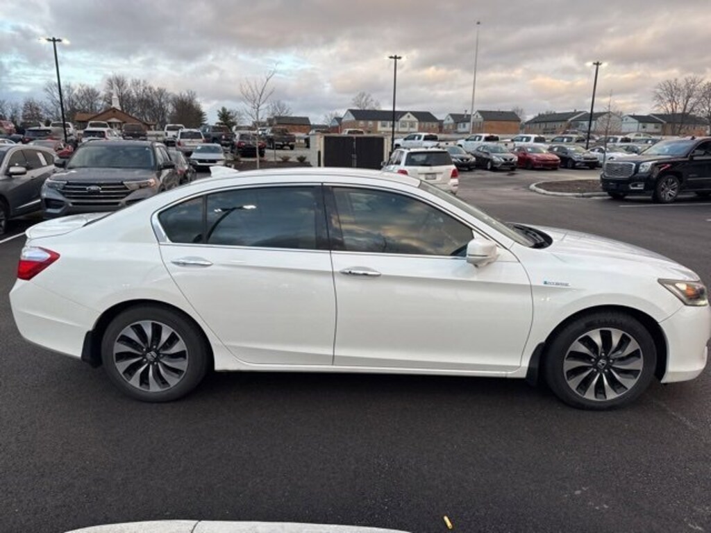 Jeff Wyler Eastgate Auto Mall is excited to offer this beautiful 2014 Honda Accord Hybrid in White. Well equipped with: 160-Watt AM/FM/CD Audio System, 17" Alloy Wheels, 4-Wheel Disc Brakes, 6 Speakers, ABS brakes, Air Conditioning, Alloy wheels, AM/FM radio, Automatic temperature control, Bio-Fabric Seat Trim, Brake assist, Bumpers: body-color, CD player, Delay-off headlights, Driver door bin, Driver vanity mirror, Dual front impact airbags, Dual front side impact airbags, Electronic Stability Control, Exterior Parking Camera Rear, Four wheel independent suspension, Front anti-roll bar, Front Bucket Seats, Front Center Armrest, Front dual zone A/C, Front reading lights, Fully automatic headlights, Heated door mirrors, Illuminated entry, Low tire pressure warning, Occupant sensing airbag, Outside temperature display, Overhead airbag, Overhead console, Panic alarm, Passenger door bin, Passenger vanity mirror, Power door mirrors, Power driver seat, Power steering, Power windows, Radio data system, Rear anti-roll bar, Rear seat center armrest, Rear window defroster, Remote keyless entry, Security system, Speed control, Speed-sensing steering, Speed-Sensitive Wipers, Spoiler, Steering wheel mounted audio controls, Tachometer, Telescoping steering wheel, Tilt steering wheel, Traction control, Trip computer, Turn signal indicator mirrors, and Variably intermittent wipers. Clean CARFAX. Reviews: * Beyond its history of reliability and high resale value, the Accord is now more varied than ever. Whether you want a no-fuss and highly economical sedan, a sporty V6-powered coupe or a hybrid that attains 50 mpg in the city, the 2014 Accord offers something for everyone. Source: KBB.com * Excellent fuel economy; strong acceleration; roomy and high-quality interior; responsive handling; user-friendly interior controls. Source: EdmundsAwards: * Green Car Journal 2014 Green Car of the Year * 2014 KBB.com Brand Image AwardsKelley Blue Book Brand Image Awards are based on the Brand Watch(tm) study from Kelley Blue Book Market Intelligence. Award calculated among non-luxury shoppers. For more information, visit www.kbb.com. Kelley Blue Book is a registered trademark of Kelley Blue Book Co., Inc.Based on 2017 EPA mileage ratings. Use for comparison purposes only. Your mileage will vary depending on how you drive and maintain your vehicle, driving conditions and other factors. Ask about available certifications. Used vehicles 10 years of age or newer with less than 100,000 miles are eligible for the Wyler Assurance Program, but eligible vehicles must pass our reconditioning process and multi-point inspection. Provided the vehicle passes inspection, vehicles will be eligible for the 6 month/6,000 mile limited warranty. The 6 month/6,000 mile limited warranty is NOT available on AS-IS vehicles, wholesale vehicles, lease buyback/pass-thru vehicles or un-inspected vehicles. Note that this program can also apply to vehicles where the remaining factory coverage is less than 6 months or 6,000 miles. Please check the Federal Trade Commission (FTC) Buyers guide on the vehicle for full details as to whether or not warranty coverage may apply. Contact Dealer for additional details. The Wyler Assurance 6 month/6,000 Mile limited warranty ends 6 months from the date of the Retail Purchase Agreement (BUYERS ORDER) or when the vehicle's odometer registers 6,000 additional miles to the mileage listed on the BUYERS ORDER, whichever comes first. Your Deductible - The warranty holder on your contract pays the first $100 of each covered repair.