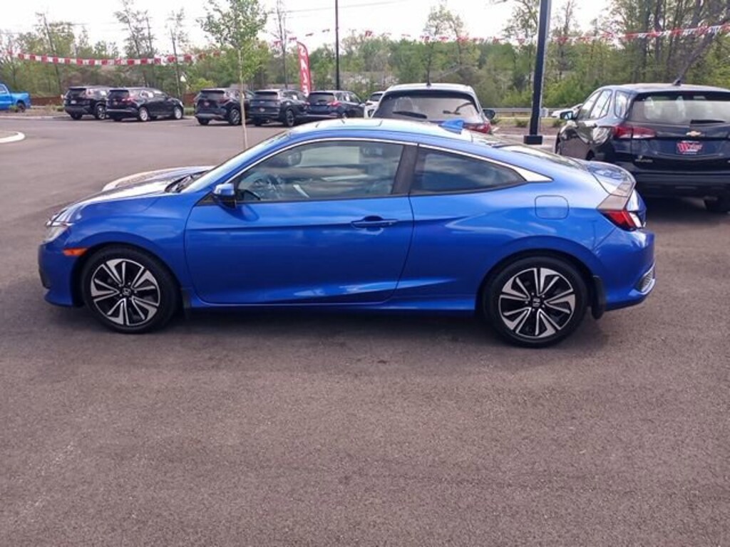 Jeff Wyler Eastgate Auto Mall is proud to offer this beautiful-looking 2017 Honda Civic EX-T in Blue. Well equipped with: 10 Speakers, 17" Alloy Wheels, 4-Wheel Disc Brakes, ABS brakes, Air Conditioning, Alloy wheels, AM/FM radio: SiriusXM, Apple CarPlay/Android Auto, Automatic temperature control, Brake assist, Bumpers: body-color, Cloth Seat Trim, Compass, Delay-off headlights, Driver door bin, Driver vanity mirror, Dual front impact airbags, Dual front side impact airbags, Electronic Stability Control, Emergency communication system, Exterior Parking Camera Rear, Four wheel independent suspension, Front anti-roll bar, Front Bucket Seats, Front Center Armrest, Front dual zone A/C, Front fog lights, Front reading lights, Fully automatic headlights, Heated door mirrors, Heated front seats, Illuminated entry, Low tire pressure warning, Occupant sensing airbag, Outside temperature display, Overhead airbag, Panic alarm, Passenger door bin, Passenger vanity mirror, Power door mirrors, Power moonroof, Power steering, Power windows, Radio data system, Radio: 450-Watt AM/FM/HD/SiriusXM Audio System, Rear anti-roll bar, Rear window defroster, Reclining Heated Front Bucket Seats, Remote keyless entry, Security system, Speed control, Speed-sensing steering, Speed-Sensitive Wipers, Split folding rear seat, Steering wheel mounted audio controls, Tachometer, Telescoping steering wheel, Tilt steering wheel, Traction control, Trip computer, and Variably intermittent wipers. Clean CARFAX. Awards: * 2017 IIHS Top Safety Pick (When equipped with Honda Sensing) * 2017 KBB.com Brand Image Awards * 2017 KBB.com 10 Most Awarded BrandsKelley Blue Book Brand Image Awards are based on the Brand Watch(tm) study from Kelley Blue Book Market Intelligence. Award calculated among non-luxury shoppers. For more information, visit www.kbb.com. Kelley Blue Book is a registered trademark of Kelley Blue Book Co., Inc. Ask about available certifications. Used vehicles 10 years of age or newer with less than 100,000 miles are eligible for the Wyler Assurance Program, but eligible vehicles must pass our reconditioning process and multi-point inspection. Provided the vehicle passes inspection, vehicles will be eligible for the 6 month/6,000 mile limited warranty. The 6 month/6,000 mile limited warranty is NOT available on AS-IS vehicles, wholesale vehicles, lease buyback/pass-thru vehicles or un-inspected vehicles. Note that this program can also apply to vehicles where the remaining factory coverage is less than 6 months or 6,000 miles. Please check the Federal Trade Commission (FTC) Buyers guide on the vehicle for full details as to whether or not warranty coverage may apply. Contact Dealer for additional details. The Wyler Assurance 6 month/6,000 Mile limited warranty ends 6 months from the date of the Retail Purchase Agreement (BUYERS ORDER) or when the vehicle's odometer registers 6,000 additional miles to the mileage listed on the BUYERS ORDER, whichever comes first. Your Deductible - The warranty holder on your contract pays the first $100 of each covered repair.