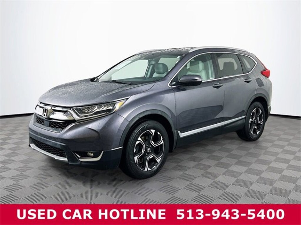 Jeff Wyler Eastgate Auto Mall is very proud to offer this fantastic 2019 Honda CR-V Touring in Gray. Well equipped with: 18" Alloy Wheels, 4-Wheel Disc Brakes, 5.64 Axle Ratio, 9 Speakers, ABS brakes, Air Conditioning, Alloy wheels, AM/FM radio: SiriusXM, Apple CarPlay/Android Auto, Auto High-beam Headlights, Auto-dimming Rear-View mirror, Automatic temperature control, Blind Spot Information (BSI) System warning, Brake assist, Bumpers: body-color, Compass, Delay-off headlights, Driver door bin, Driver vanity mirror, Dual front impact airbags, Dual front side impact airbags, Electronic Stability Control, Exterior Parking Camera Rear, Forward collision: Collision Mitigation Braking System (CMBS) + FCW mitigation, Four wheel independent suspension, Front anti-roll bar, Front Bucket Seats, Front Center Armrest, Front dual zone A/C, Front fog lights, Front reading lights, Fully automatic headlights, Garage door transmitter: HomeLink, Heated door mirrors, Heated Front Bucket Seats, Heated front seats, Illuminated entry, Lane departure: Lane Keeping Assist System (LKAS) active, Leather Seat Trim, Leather Shift Knob, Low tire pressure warning, Memory seat, Navigation system: Honda Satellite-Linked Navigation System, Occupant sensing airbag, Outside temperature display, Overhead airbag, Overhead console, Panic alarm, Passenger door bin, Passenger vanity mirror, Power door mirrors, Power driver seat, Power Liftgate, Power moonroof, Power passenger seat, Power steering, Power windows, Radio data system, Radio: AM/FM/HD/SiriusXM Audio System, Rain sensing wipers, Rear anti-roll bar, Rear seat center armrest, Rear window defroster, Rear window wiper, Remote keyless entry, Roof rack: rails only, Security system, Speed control, Speed-sensing steering, Speed-Sensitive Wipers, Split folding rear seat, Spoiler, Steering wheel mounted audio controls, Tachometer, Telescoping steering wheel, Tilt steering wheel, Traction control, Trip computer, Turn signal indicator mirrors, and Variably intermittent wipers. Ask about available certifications. Used vehicles 10 years of age or newer with less than 100,000 miles are eligible for the Wyler Assurance Program, but eligible vehicles must pass our reconditioning process and multi-point inspection. Provided the vehicle passes inspection, vehicles will be eligible for the 6 month/6,000 mile limited warranty. The 6 month/6,000 mile limited warranty is NOT available on AS-IS vehicles, wholesale vehicles, lease buyback/pass-thru vehicles or un-inspected vehicles. Note that this program can also apply to vehicles where the remaining factory coverage is less than 6 months or 6,000 miles. Please check the Federal Trade Commission (FTC) Buyers guide on the vehicle for full details as to whether or not warranty coverage may apply. Contact Dealer for additional details. The Wyler Assurance 6 month/6,000 Mile limited warranty ends 6 months from the date of the Retail Purchase Agreement (BUYERS ORDER) or when the vehicle's odometer registers 6,000 additional miles to the mileage listed on the BUYERS ORDER, whichever comes first. Your Deductible - The warranty holder on your contract pays the first $100 of each covered repair.