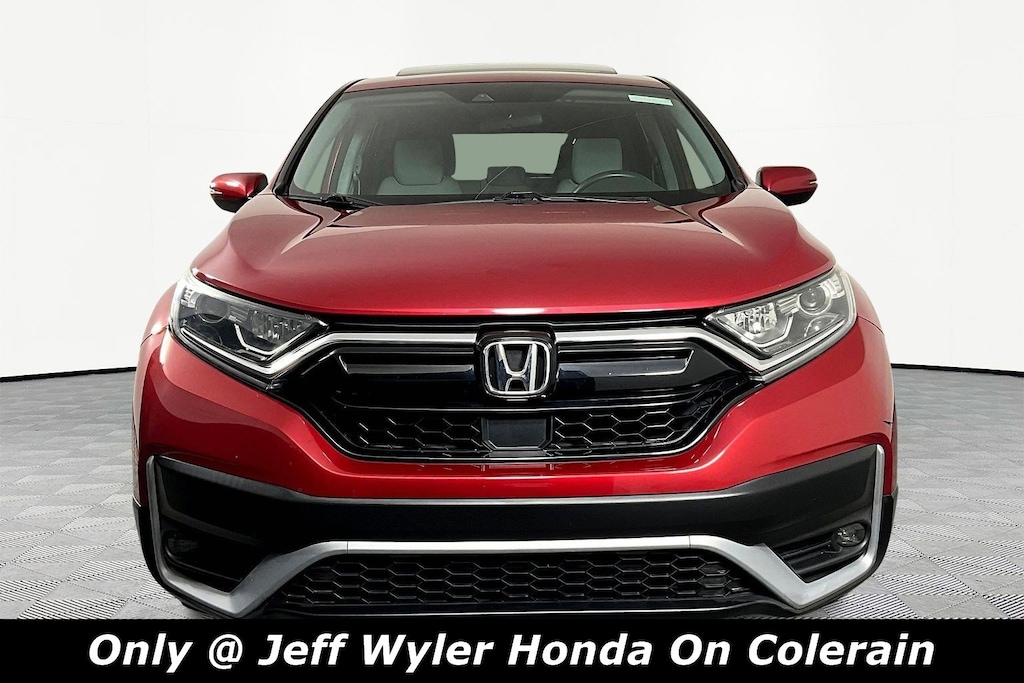 Jeff Wyler Honda of Colerain is pleased to offer this terrific-looking 2021 Honda CR-V EX in Radiant Red Metallic. Well equipped with: 18" Alloy Wheels, 4-Wheel Disc Brakes, 5.64 Axle Ratio, 6 Speakers, ABS brakes, Adaptive Cruise Control: Adaptive Cruise Control (ACC) with Low-Speed Follow, Air Conditioning, Alloy wheels, AM/FM radio: SiriusXM, Apple CarPlay/Android Auto, Auto High-beam Headlights, Automatic temperature control, Blind Spot Information (BSI) System warning, Brake assist, Bumpers: body-color, Cloth Seat Trim, Compass, Delay-off headlights, Driver door bin, Driver vanity mirror, Dual front impact airbags, Dual front side impact airbags, Electronic Stability Control, Exterior Parking Camera Rear, Forward collision: Collision Mitigation Braking System (CMBS) + FCW mitigation, Four wheel independent suspension, Front anti-roll bar, Front Bucket Seats, Front Center Armrest, Front dual zone A/C, Front fog lights, Front reading lights, Heated door mirrors, Heated Front Bucket Seats, Heated front seats, Illuminated entry, Low tire pressure warning, Occupant sensing airbag, Outside temperature display, Overhead airbag, Overhead console, Panic alarm, Passenger door bin, Passenger vanity mirror, Power door mirrors, Power driver seat, Power moonroof, Power steering, Power windows, Radio data system, Radio: 180-Watt AM/FM/HD/SiriusXM Audio System, Rear anti-roll bar, Rear seat center armrest, Rear window defroster, Rear window wiper, Remote keyless entry, Security system, Speed control, Speed-sensing steering, Speed-Sensitive Wipers, Split folding rear seat, Spoiler, Steering wheel mounted audio controls, Tachometer, Telescoping steering wheel, Tilt steering wheel, Traction control, Trip computer, Turn signal indicator mirrors, and Variably intermittent wipers.