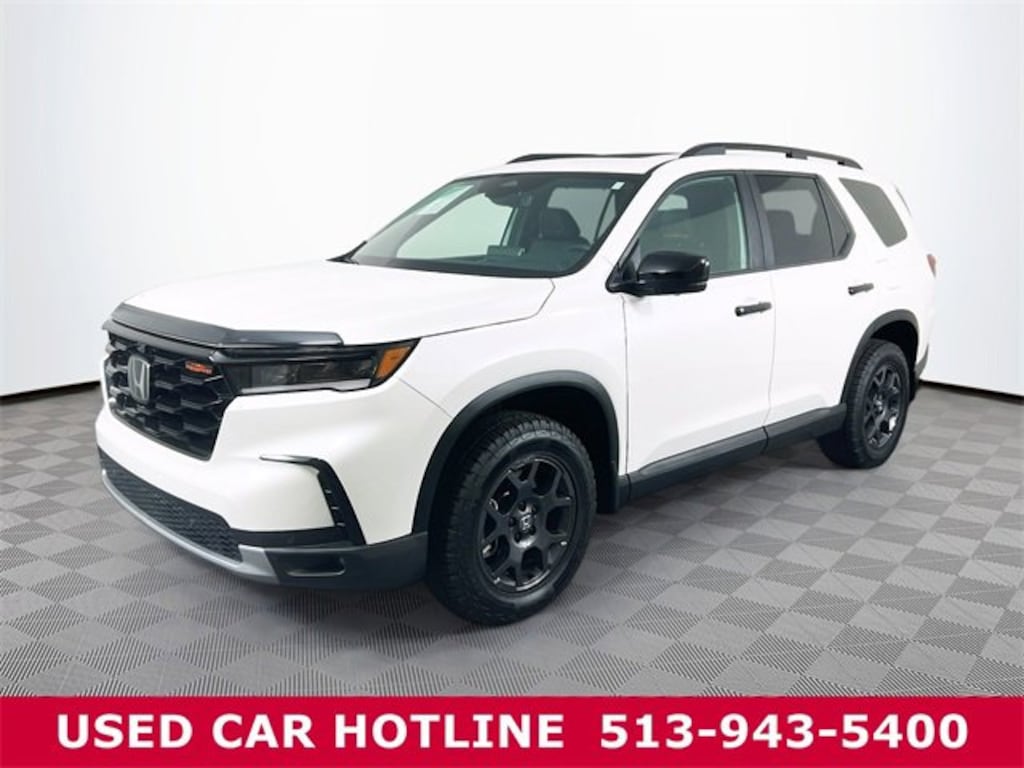 Jeff Wyler Eastgate Auto Mall is excited to offer this great-looking 2025 Honda Pilot TrailSport in White. Well equipped with: 3rd row seats: split-bench, 4-Wheel Disc Brakes, 4.167 Axle Ratio, 9 Speakers, ABS brakes, Adaptive Cruise Control: Adaptive Cruise Control (ACC) with Low-Speed Follow, Air Conditioning, Alloy wheels, AM/FM radio: SiriusXM, Apple CarPlay/Android Auto, Auto High-beam Headlights, Auto-dimming Rear-View mirror, Automatic temperature control, Blind Spot Information (BSI) System warning, Brake assist, Bumpers: body-color, Delay-off headlights, Driver door bin, Driver vanity mirror, Dual front impact airbags, Dual front side impact airbags, Durable Synthetic Leather Seat Trim, Electronic Stability Control, Emergency communication system: HondaLink Assist, Exterior Parking Camera Rear, Four wheel independent suspension, Front anti-roll bar, Front Bucket Seats, Front Center Armrest, Front dual zone A/C, Front fog lights, Front reading lights, Fully automatic headlights, Garage door transmitter: HomeLink, Heated door mirrors, Heated Front Bucket Seats, Heated front seats, Illuminated entry, Knee airbag, Lane departure: Lane Keeping Assist System (LKAS) active, Low tire pressure warning, Memory seat, Occupant sensing airbag, Outside temperature display, Overhead airbag, Overhead console, Panic alarm, Passenger door bin, Passenger vanity mirror, Power door mirrors, Power driver seat, Power Liftgate, Power moonroof, Power passenger seat, Power steering, Power windows, Radio data system, Radio: 245-Watt Audio System, Rear air conditioning, Rear anti-roll bar, Rear reading lights, Rear window defroster, Rear window wiper, Reclining 3rd row seat, Remote keyless entry, Security system, SiriusXM, Speed control, Speed-sensing steering, Speed-Sensitive Wipers, Split folding rear seat, Spoiler, Steering wheel mounted audio controls, Tachometer, Telescoping steering wheel, Tilt steering wheel, Traction control, Trip computer, Turn signal indicator mirrors, Variably intermittent wipers, and Wheels: 18" Shark Gray w/Black Lug Nuts. CARFAX One-Owner. Clean CARFAX. Ask about available certifications. Used vehicles 10 years of age or newer with less than 100,000 miles are eligible for the Wyler Assurance Program, but eligible vehicles must pass our reconditioning process and multi-point inspection. Provided the vehicle passes inspection, vehicles will be eligible for the 6 month/6,000 mile limited warranty. The 6 month/6,000 mile limited warranty is NOT available on AS-IS vehicles, wholesale vehicles, lease buyback/pass-thru vehicles or un-inspected vehicles. Note that this program can also apply to vehicles where the remaining factory coverage is less than 6 months or 6,000 miles. Please check the Federal Trade Commission (FTC) Buyers guide on the vehicle for full details as to whether or not warranty coverage may apply. Contact Dealer for additional details. The Wyler Assurance 6 month/6,000 Mile limited warranty ends 6 months from the date of the Retail Purchase Agreement (BUYERS ORDER) or when the vehicle's odometer registers 6,000 additional miles to the mileage listed on the BUYERS ORDER, whichever comes first. Your Deductible - The warranty holder on your contract pays the first $100 of each covered repair.