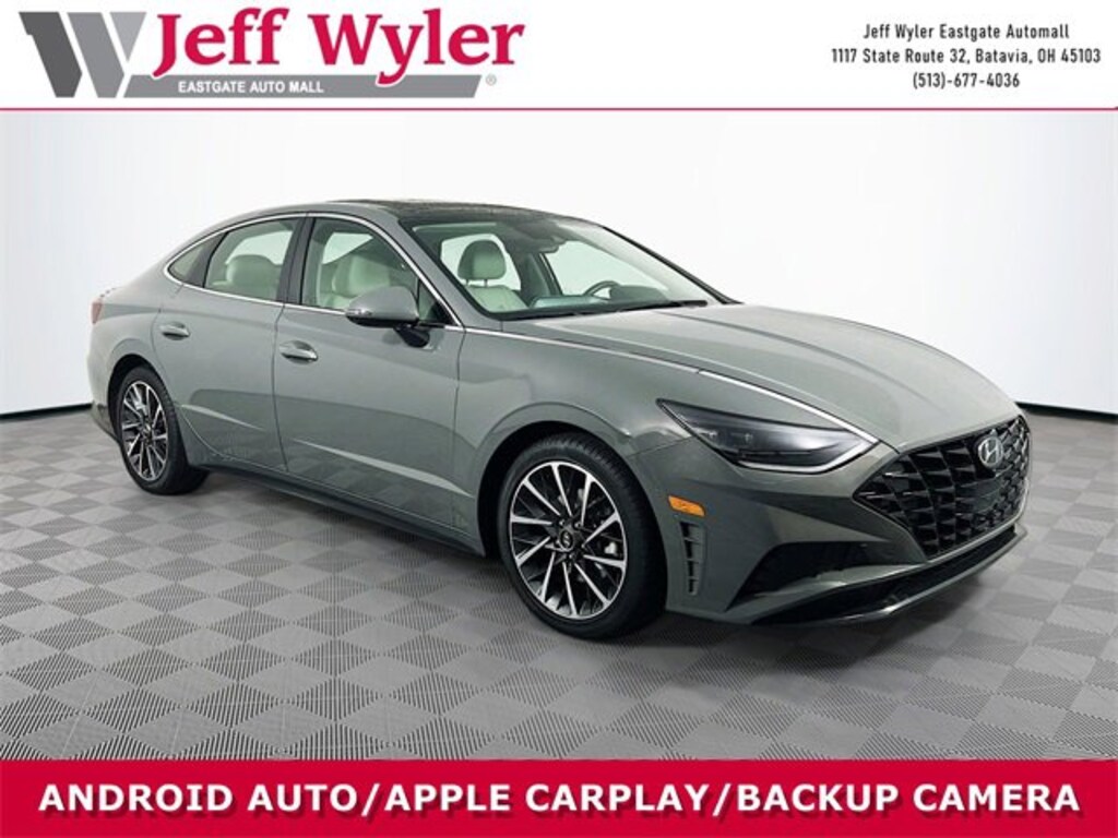 Jeff Wyler Eastgate Auto Mall is pleased to offer this good-looking 2020 Hyundai Sonata Limited in Hampton Gray. Well equipped with: Blue Link Connected Care & Remote Package, Option Group 01, 12 Speakers, 4-Wheel Disc Brakes, ABS brakes, Air Conditioning, Alloy wheels, AM/FM radio: SiriusXM, Apple CarPlay & Android Auto, Auto High-beam Headlights, Auto-dimming Rear-View mirror, Automatic temperature control, Bose Premium Audio, Brake assist, Bumpers: body-color, Cargo Net, Carpeted Floor Mats, Delay-off headlights, Driver door bin, Driver vanity mirror, Dual front impact airbags, Dual front side impact airbags, Electronic Stability Control, Emergency communication system: Blue Link Connected Care (3-year subscription), First Aid Kit, Four wheel independent suspension, Front anti-roll bar, Front Bucket Seats, Front Center Armrest, Front dual zone A/C, Front reading lights, Fully automatic headlights, Garage door transmitter: HomeLink, Heads-Up Display, Heated door mirrors, Heated front seats, Heated steering wheel, Heated/Ventilated Front Bucket Seats, Illuminated entry, Knee airbag, Leather Seating Surfaces, Low tire pressure warning, Memory seat, Navigation System, Occupant sensing airbag, Outside temperature display, Overhead airbag, Overhead console, Panic alarm, Passenger door bin, Passenger vanity mirror, Power door mirrors, Power driver seat, Power moonroof, Power passenger seat, Power steering, Power windows, Radio data system, Radio: AM/FM/MP3/HD/SiriusXM Display Audio w/Nav, Rain sensing wipers, Rear anti-roll bar, Rear Bumper Applique, Rear seat center armrest, Rear side impact airbag, Rear window defroster, Remote keyless entry, Reversible Cargo Tray, Security system, Speed control, Speed-sensing steering, Speed-Sensitive Wipers, Split folding rear seat, Steering wheel mounted audio controls, Tachometer, Telescoping steering wheel, Tilt steering wheel, Traction control, Trip computer, Turn signal indicator mirrors, Variably intermittent wipers, Ventilated front seats, Wheels: 18 x 7.5J Machine/Argent Finish Alum Alloy, and Wireless Phone Charging. CARFAX One-Owner. Awards: * JD Power Automotive Performance, Execution and Layout (APEAL) Study Ask about available certifications. Used vehicles 10 years of age or newer with less than 100,000 miles are eligible for the Wyler Assurance Program, but eligible vehicles must pass our reconditioning process and multi-point inspection. Provided the vehicle passes inspection, vehicles will be eligible for the 6 month/6,000 mile limited warranty. The 6 month/6,000 mile limited warranty is NOT available on AS-IS vehicles, wholesale vehicles, lease buyback/pass-thru vehicles or un-inspected vehicles. Note that this program can also apply to vehicles where the remaining factory coverage is less than 6 months or 6,000 miles. Please check the Federal Trade Commission (FTC) Buyers guide on the vehicle for full details as to whether or not warranty coverage may apply. Contact Dealer for additional details. The Wyler Assurance 6 month/6,000 Mile limited warranty ends 6 months from the date of the Retail Purchase Agreement (BUYERS ORDER) or when the vehicle's odometer registers 6,000 additional miles to the mileage listed on the BUYERS ORDER, whichever comes first. Your Deductible - The warranty holder on your contract pays the first $100 of each covered repair.