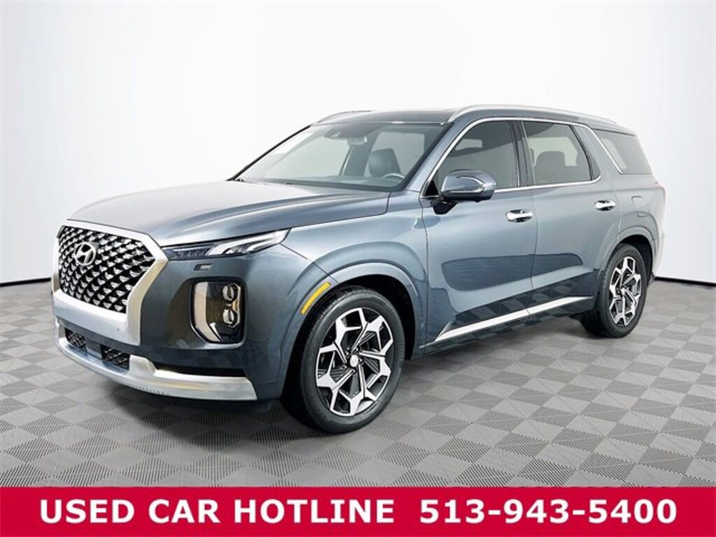 Jeff Wyler Eastgate Auto Mall is delighted to offer this good-looking 2022 Hyundai Palisade Calligraphy in Steel Graphite. Well equipped with: Cargo Package (Cargo Block, Cargo Net, and Cargo Tray), Option Group 01, 12 Speakers, 3.648 Axle Ratio, 3rd row seats: split-bench, 4-Wheel Disc Brakes, ABS brakes, Air Conditioning, Alloy wheels, AM/FM radio: SiriusXM, Apple CarPlay & Android Auto, Auto High-beam Headlights, Auto-dimming Rear-View mirror, Auto-leveling suspension, Automatic temperature control, Brake assist, Bumpers: body-color, Carpeted Floor Mats, Compass, Delay-off headlights, Driver door bin, Driver vanity mirror, Dual front impact airbags, Dual front side impact airbags, Electronic Stability Control, Emergency communication system: Blue Link Connected Car Service (3-year complimentary subscription), Four wheel independent suspension, Front anti-roll bar, Front Bucket Seats, Front Center Armrest, Front dual zone A/C, Front reading lights, Fully automatic headlights, Garage door transmitter: HomeLink, harman/kardon® Speakers, Heads-Up Display, Heated & Ventilated Front Bucket Seats, Heated door mirrors, Heated front seats, Heated rear seats, Heated steering wheel, Illuminated entry, Knee airbag, Low tire pressure warning, Memory seat, Navigation System, Occupant sensing airbag, Outside temperature display, Overhead airbag, Overhead console, Panic alarm, Passenger door bin, Passenger vanity mirror, Power door mirrors, Power driver seat, Power Liftgate, Power moonroof, Power passenger seat, Power steering, Power windows, Premium Nappa Leather Seat Trim, Radio data system, Radio: AM/FM/MP3 Premium Audio System, Rain sensing wipers, Rear air conditioning, Rear anti-roll bar, Rear audio controls, Rear reading lights, Rear window defroster, Rear window wiper, Reclining 3rd row seat, Remote keyless entry, Security system, Speed control, Speed-sensing steering, Split folding rear seat, Spoiler, Steering wheel mounted audio controls, Tachometer, Telescoping steering wheel, Tilt steering wheel, Traction control, Trip computer, Turn signal indicator mirrors, Variably intermittent wipers, Ventilated front seats, Ventilated rear seats, and Wheels: 20" x 7.5J Calligraphy Exclusive Alloy. CARFAX One-Owner. Ask about available certifications. Used vehicles 10 years of age or newer with less than 100,000 miles are eligible for the Wyler Assurance Program, but eligible vehicles must pass our reconditioning process and multi-point inspection. Provided the vehicle passes inspection, vehicles will be eligible for the 6 month/6,000 mile limited warranty. The 6 month/6,000 mile limited warranty is NOT available on AS-IS vehicles, wholesale vehicles, lease buyback/pass-thru vehicles or un-inspected vehicles. Note that this program can also apply to vehicles where the remaining factory coverage is less than 6 months or 6,000 miles. Please check the Federal Trade Commission (FTC) Buyers guide on the vehicle for full details as to whether or not warranty coverage may apply. Contact Dealer for additional details. The Wyler Assurance 6 month/6,000 Mile limited warranty ends 6 months from the date of the Retail Purchase Agreement (BUYERS ORDER) or when the vehicle's odometer registers 6,000 additional miles to the mileage listed on the BUYERS ORDER, whichever comes first. Your Deductible - The warranty holder on your contract pays the first $100 of each covered repair.
