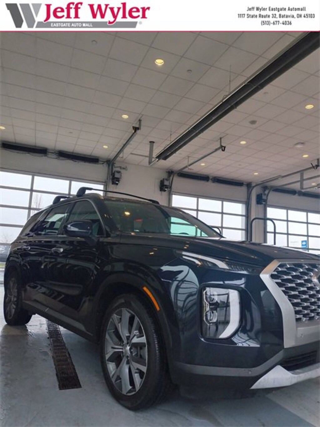 Jeff Wyler Eastgate Auto Mall is proud to offer this handsome 2022 Hyundai Palisade SEL in Moonlight Cloud. Well equipped with: Cargo Package (Cargo Block, Cargo Net, and Cargo Tray), Convenience Package, Convenience Package P2 (115-Volt AC Power Outlet, 3rd Row USB Outlets, 7" High-Resolution Cluster Display, Acoustic Front Side Glass, Auto Leveling Rear Suspension, Front Parking Sensors, Hands-Free Smart Liftgate, LED Taillights, Rear Side Window Sunshades, Ultrasonic Rear Occupant Alert, Wheels: 20" x 7.5J Split 5-Spoke Machined Alloy, and Wireless Phone Charger), 3.648 Axle Ratio, 3rd row seats: split-bench, 4-Wheel Disc Brakes, 6 Speakers, ABS brakes, Air Conditioning, Alloy wheels, AM/FM radio, Apple CarPlay & Android Auto, Auto High-beam Headlights, Auto-dimming Rear-View mirror, Automatic temperature control, Brake assist, Bumper Applique, Bumpers: body-color, Cargo Cover/Screen, Carpeted Floor Mats, Cloth Seat Trim, Delay-off headlights, Driver door bin, Driver vanity mirror, Dual front impact airbags, Dual front side impact airbags, Electronic Stability Control, First Aid Kit, Four wheel independent suspension, Front anti-roll bar, Front Bucket Seats, Front Center Armrest, Front dual zone A/C, Front reading lights, Fully automatic headlights, Garage door transmitter: HomeLink, Heated door mirrors, Heated Front Bucket Seats, Heated front seats, Illuminated entry, Knee airbag, Low tire pressure warning, Occupant sensing airbag, Outside temperature display, Overhead airbag, Overhead console, Panic alarm, Passenger door bin, Passenger vanity mirror, Power door mirrors, Power driver seat, Power moonroof, Power steering, Power windows, Radio data system, Radio: AM/FM/MP3 Display Audio, Rear air conditioning, Rear anti-roll bar, Rear audio controls, Rear reading lights, Rear window defroster, Rear window wiper, Reclining 3rd row seat, Remote keyless entry, Security system, Speed control, Speed-sensing steering, Split folding rear seat, Spoiler, Steering wheel mounted audio controls, Tachometer, Telescoping steering wheel, Tilt steering wheel, Traction control, Trip computer, Turn signal indicator mirrors, Variably intermittent wipers, Wheel Locks, and Wheels: 18" x 7.5J Machine Finish Alloy. Ask about available certifications. Used vehicles 10 years of age or newer with less than 100,000 miles are eligible for the Wyler Assurance Program, but eligible vehicles must pass our reconditioning process and multi-point inspection. Provided the vehicle passes inspection, vehicles will be eligible for the 6 month/6,000 mile limited warranty. The 6 month/6,000 mile limited warranty is NOT available on AS-IS vehicles, wholesale vehicles, lease buyback/pass-thru vehicles or un-inspected vehicles. Note that this program can also apply to vehicles where the remaining factory coverage is less than 6 months or 6,000 miles. Please check the Federal Trade Commission (FTC) Buyers guide on the vehicle for full details as to whether or not warranty coverage may apply. Contact Dealer for additional details. The Wyler Assurance 6 month/6,000 Mile limited warranty ends 6 months from the date of the Retail Purchase Agreement (BUYERS ORDER) or when the vehicle's odometer registers 6,000 additional miles to the mileage listed on the BUYERS ORDER, whichever comes first. Your Deductible - The warranty holder on your contract pays the first $100 of each covered repair.