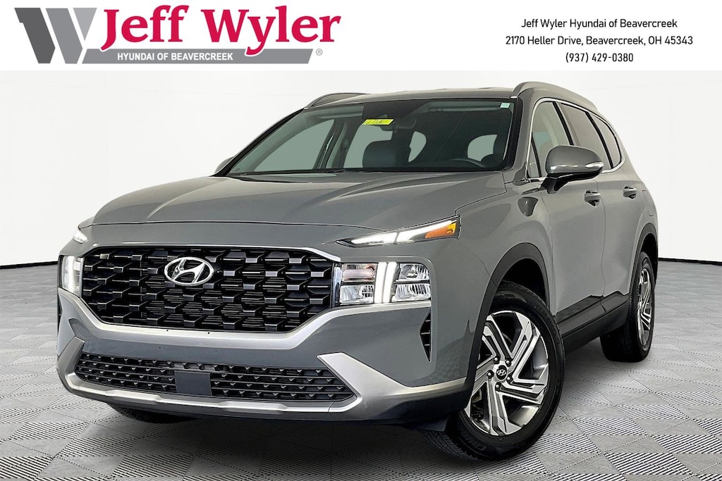 CARFAX One-Owner. Certified. Hyundai Combined Details: * Roadside Assistance (for Hyundai Certified Used Vehicles program) * 173+ Point Inspection (for Hyundai Certified Used Vehicles program), 117 Point Inspection (for Hyundai Select Used program) * Warranty Deductible: $50 (for Hyundai Certified Used Vehicles program) * Limited Warranty: 60 Month/60,000 Mile (whichever comes first) from original in-service date (for Hyundai Certified Used Vehicles program) * Powertrain Limited Warranty: 120 Month/100,000 Mile (whichever comes first) from original in-service date (for Hyundai Certified Used Vehicles program) * Vehicle History (for Hyundai Certified Used Vehicles program) * Includes 10-year/Unlimited Mileage Roadside Assistance with Rental Car and Trip Interruption Reimbursement; Please See Dealers for Specific Vehicle Eligibility Requirements. 10-Year/100,000 Mile Hybrid/EV Battery Warranty. 3-Months SiriusXM Trial Subscription. Complimentary 1 Year (Connected Care & Remote Pkgs). (for Hyundai Certified Used Vehicles program), 6 Model Years Old and Newer With 80,000 - 120,000 Miles, 7-10 Model Years Old Vehicles With 120,000 Miles or Less. Powertrain Warranty 90 Days/5,000 Miles, HEV/PHEV Battery Warranty 10 Years/100,000 Miles. Roadside Assistance 90 Days/Unlimited Miles. Rental Car $35/Day Up to 5 Days. 3-Months SiriusXM Trial Subscription. (for Hyundai Select Used program)Jeff Wyler Hyundai of Beavercreek is delighted to offer this good-looking 2023 Hyundai Santa Fe SEL in Hampton Gray. Well equipped with: Option Group 01, 18" x 7.5J Alloy Wheels, 4-Wheel Disc Brakes, 6 Speakers, ABS brakes, Air Conditioning, Alloy wheels, AM/FM radio: SiriusXM, Apple CarPlay & Android Auto, Auto High-beam Headlights, Automatic temperature control, Axle Ratio: 3.798, Brake assist, Bumper Applique, Bumpers: body-color, Cargo Cover/Screen, Cargo Net, Cargo Tray, Carpeted Floor Mats, Delay-off headlights, Driver door bin, Driver vanity mirror, Dual front impact airbags, Dual front side impact airbags, Electronic Stability Control, Emergency communication system, Exterior Parking Camera Rear, First Aid Kit, Four wheel independent suspension, Front anti-roll bar, Front Bucket Seats, Front Center Armrest, Front dual zone A/C, Front reading lights, Fully automatic headlights, Heated door mirrors, Heated Front Bucket Seats, Heated front seats, Illuminated entry, Leather steering wheel, Low tire pressure warning, Navigation System, Occupant sensing airbag, Outside temperature display, Overhead airbag, Overhead console, Panic alarm, Passenger door bin, Passenger vanity mirror, Power door mirrors, Power driver seat, Power Liftgate, Power steering, Power windows, Radio: AM/FM Display Audio, Rear anti-roll bar, Rear seat center armrest, Rear window defroster, Rear window wiper, Remote keyless entry, Security system, Speed control, Speed-sensing steering, Split folding rear seat, Spoiler, Stain-Resistant Cloth Seat Trim, Steering wheel mounted audio controls, Tachometer, Telescoping steering wheel, Tilt steering wheel, Traction control, Trip computer, Turn signal indicator mirrors, and Variably intermittent wipers.Come see the excitement at Jeff Wyler Hyundai of Beavercreek! Visit us online at www.jeffwylerhyundaiofbeavercreek.com Proudly Serving: Cincinnati, Dayton, Centeville, Ketttering, Moraine,Beavercreek, Xenia,Oakwood, Trotwood, Vandalia, Kettering, Wright Patterson, Riverside, Engelwood, Miamisburg, Huber Heights, Springboro, Brookville, Fairborn, West Carrollton, Yellow Springs, Bellbrook, Springfield Columbus, Hamilton, West Chester, Monroe, Fairfield.