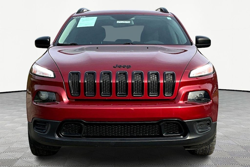Jeff Wyler Chrysler Dodge Jeep of Lawrenceburg is excited to offer this great-looking 2016 Jeep Cherokee Altitude in Deep Cherry Red Crystal Pearlcoat. Quick Order Package 26N Altitude (Deep Tint Sunscreen Glass, Gloss Black Fascia Applique, Gloss Black Grille Surrounds, Gloss Black Roof Rails, Jeep Black Gloss Badging, Leather Wrapped Steering Wheel, Steering Wheel Mounted Audio Controls, and Wheels: 18" x 7" Gloss Black 5-Spoke Aluminum), 1-Year SiriusXM Radio Service, 4-Wheel Disc Brakes, 6 Speakers, 600 Amp Maintenance Free Battery, ABS brakes, Active Grille Shutters, AM/FM radio, Anti-whiplash front head restraints, Auxiliary Transmission Oil Cooler, Brake assist, Bumpers: body-color, Cloth Low-Back Bucket Seats, Compass, Delay-off headlights, Driver door bin, Driver vanity mirror, Dual front impact airbags, Dual front side impact airbags, Electronic Stability Control, Engine Oil Cooler, For More Info Call 800-643-2112, Four wheel independent suspension, Front anti-roll bar, Front Bucket Seats, Front Center Armrest, Front reading lights, GPS Antenna Input, Illuminated entry, Knee airbag, Low tire pressure warning, No Satellite Coverage w/AK/HI, Normal Duty Suspension, Occupant sensing airbag, Outside temperature display, Overhead airbag, Overhead console, Panic alarm, Passenger door bin, Passenger vanity mirror, Power door mirrors, Power steering, Power windows, Radio data system, Radio: Uconnect 5.0, Rear anti-roll bar, Rear reading lights, Rear seat center armrest, Rear side impact airbag, Rear window defroster, Rear window wiper, Remote keyless entry, SIRIUSXM Satellite Radio, Speed control, Speed-sensing steering, Split folding rear seat, Spoiler, Tachometer, Telescoping steering wheel, Tilt steering wheel, Traction control, Trip computer, Variably intermittent wipers, Voltmeter, and Wheels: 17" x 7" Full Face Steel Our PRE-OWNED vehicles are put through a rigorous 167- POINT QUALITY ASSURANCE INSPECTION along with an average amount of over $1,400.00 SPENT to recondition each vehicle so we can be sure to deliver you the highest quality vehicle like you deserve! ***ONLINE PRICE DOES NOT INCLUDE WYLER FAMILY FIRST PACKAGE*** Stop by 4136 Shelbyville Road to see for yourself, or give us a call @ 502-897-3151 to schedule your test drive! Ask about available certifications.