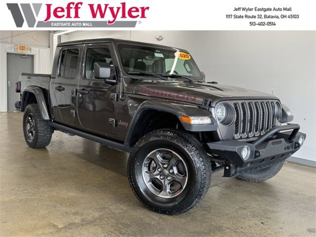 Jeff Wyler Eastgate Auto Mall is pleased to offer this wonderful 2020 Jeep Gladiator Rubicon in Granite Crystal Metallic Clearcoat. Well equipped with: 8.4" Radio & Premium Audio Group (1-Year SiriusXM Guardian Trial, 5-Year SiriusXM Traffic Service, 5-Year SiriusXM Travel Link Service, Alpine Premium Audio System, Auto-Dimming Rear-View Mirror, Emergency/Assistance Call, For Details, Visit DriveUconnect.com, HD Radio, Radio: Uconnect 4C Nav w/8.4" Display, SiriusXM Traffic Plus, and SiriusXM Travel Link), Quick Order Package 24R, Trailer Tow Package (240 Amp Alternator, Class IV Hitch Receiver, Heavy-Duty Engine Cooling, and Trailer Hitch Zoom), 4-Wheel Disc Brakes, 4.10 Rear Axle Ratio, 8 Speakers, 97 mph Maximum Speed Calibration, ABS brakes, Air Conditioning, All-Weather Slush Mats, Alloy wheels, AM/FM radio: SiriusXM, Apple CarPlay/Android Auto, Automatic temperature control, Black 3-Piece Hard Top, Body Color Fender Flares (2-Piece), Brake assist, Compass, Delay-off headlights, Driver door bin, Driver vanity mirror, Dual front impact airbags, Dual front side impact airbags, Electronic Stability Control, Freedom Panel Storage Bag, Front anti-roll bar, Front Bucket Seats, Front Center Armrest w/Storage, Front dual zone A/C, Front fog lights, Front reading lights, Fully automatic headlights, Garage door transmitter, Heated door mirrors, Illuminated entry, Integrated roll-over protection, Leather steering wheel, Low tire pressure warning, No Soft Top, Occupant sensing airbag, Outside temperature display, Panic alarm, ParkView Rear Back-Up Camera, Passenger door bin, Passenger vanity mirror, Performance Suspension, Power door mirrors, Power steering, Power windows, Premium Cloth Low-Back Bucket Seats, Radio data system, Radio: Uconnect 4 w/7" Display, Rear anti-roll bar, Rear reading lights, Rear Sliding Window, Rear Window Defroster, Remote keyless entry, Security system, Speed control, Split folding rear seat, Spray In Bedliner, Steering wheel mounted audio controls, Tachometer, Telescoping steering wheel, Tilt steering wheel, Traction control, Trip computer, Variably intermittent wipers, Voltmeter, and Wheels: 17" x 7.5" Granite Crystal AluminuM. Clean CARFAX. Awards: * 2020 KBB.com 10 Favorite New-for-2020 Cars * NACTOY 2020 North American Truck of the Year Ask about available certifications. Used vehicles 10 years of age or newer with less than 100,000 miles are eligible for the Wyler Assurance Program, but eligible vehicles must pass our reconditioning process and multi-point inspection. Provided the vehicle passes inspection, vehicles will be eligible for the 6 month/6,000 mile limited warranty. The 6 month/6,000 mile limited warranty is NOT available on AS-IS vehicles, wholesale vehicles, lease buyback/pass-thru vehicles or un-inspected vehicles. Note that this program can also apply to vehicles where the remaining factory coverage is less than 6 months or 6,000 miles. Please check the Federal Trade Commission (FTC) Buyers guide on the vehicle for full details as to whether or not warranty coverage may apply. Contact Dealer for additional details. The Wyler Assurance 6 month/6,000 Mile limited warranty ends 6 months from the date of the Retail Purchase Agreement (BUYERS ORDER) or when the vehicle's odometer registers 6,000 additional miles to the mileage listed on the BUYERS ORDER, whichever comes first. Your Deductible - The warranty holder on your contract pays the first $100 of each covered repair.