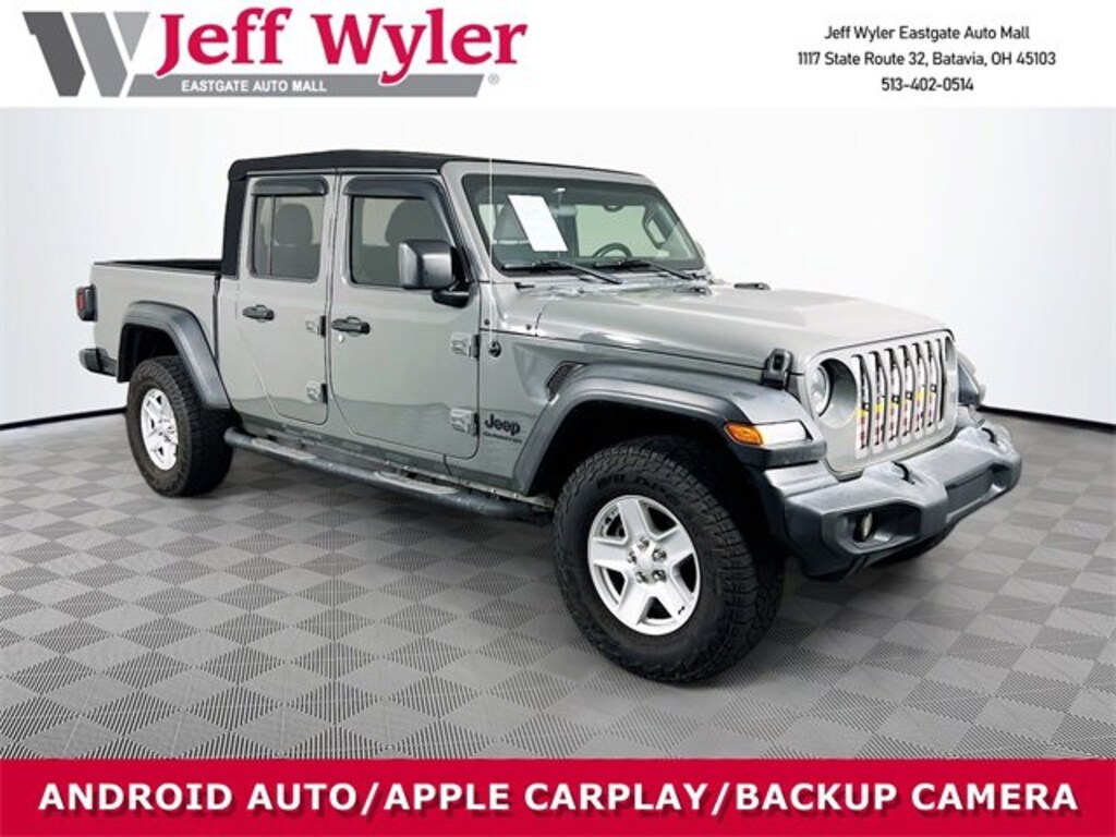 Jeff Wyler Eastgate Auto Mall is honored to offer this gorgeous 2020 Jeep Gladiator Sport in Sting-Gray Clearcoat. Well equipped with: Cold Weather Group (Heated Front Seats and Heated Steering Wheel), Convenience Group (Universal Garage Door Opener), Quick Order Package 24S (Automatic Headlamps, Deep Tint Sunscreen Windows, Front 1-Touch Down Power Windows, Leather Wrapped Steering Wheel, Normal Duty Plus Suspension, Power Heated Mirrors, Power Tailgate Lock, Remote Keyless Entry, Security Alarm, Speed Sensitive Power Locks, Sun Visors w/Illuminated Vanity Mirrors, and Wheels: 17" x 7.5" Tech Silver Aluminum), Technology Group (1-Year SiriusXM Radio Service, 7.0" Touch Screen Display, Air Conditioning w/Auto Temperature Control, Apple CarPlay, Cluster 7.0" TFT Color Display, For More Info, Call 800-643-2112, Google Android Auto, GPS Antenna Input, Integrated Center Stack Radio, Radio: Uconnect 4 w/7" Display, SiriusXM Satellite Radio, and USB Host Flip), 110 mph Vehicle Max Speed Calibration, 3.73 Rear Axle Ratio, 4-Wheel Disc Brakes, 8 Speakers, ABS brakes, Air Conditioning, AM/FM radio, Anti-Lock 4-Wheel Disc Heavy Duty Brakes, Black 3-Piece Hard Top, Brake assist, Cloth Low-Back Bucket Seats, Compass, Delay-off headlights, Driver door bin, Driver vanity mirror, Dual front impact airbags, Dual front side impact airbags, Electronic Stability Control, Freedom Panel Storage Bag, Front anti-roll bar, Front Bucket Seats, Front Center Armrest w/Storage, Front fog lights, Front reading lights, Integrated roll-over protection, Low tire pressure warning, No Soft Top, Normal Duty Suspension, Occupant sensing airbag, Outside temperature display, ParkView Rear Back-Up Camera, Passenger door bin, Passenger vanity mirror, Power steering, Radio data system, Radio: Uconnect 3 w/5" Display, Rear anti-roll bar, Rear reading lights, Rear Sliding Window, Rear Window Defroster, Speed control, Split folding rear seat, Steering wheel mounted audio controls, Tachometer, Telescoping steering wheel, Tilt steering wheel, Traction control, Trip computer, Variably intermittent wipers, and Wheels: 17" x 7.5" Black Steel Styled. Clean CARFAX. Awards: * 2020 KBB.com 10 Favorite New-for-2020 Cars * NACTOY 2020 North American Truck of the Year Ask about available certifications. Used vehicles 10 years of age or newer with less than 100,000 miles are eligible for the Wyler Assurance Program, but eligible vehicles must pass our reconditioning process and multi-point inspection. Provided the vehicle passes inspection, vehicles will be eligible for the 6 month/6,000 mile limited warranty. The 6 month/6,000 mile limited warranty is NOT available on AS-IS vehicles, wholesale vehicles, lease buyback/pass-thru vehicles or un-inspected vehicles. Note that this program can also apply to vehicles where the remaining factory coverage is less than 6 months or 6,000 miles. Please check the Federal Trade Commission (FTC) Buyers guide on the vehicle for full details as to whether or not warranty coverage may apply. Contact Dealer for additional details. The Wyler Assurance 6 month/6,000 Mile limited warranty ends 6 months from the date of the Retail Purchase Agreement (BUYERS ORDER) or when the vehicle's odometer registers 6,000 additional miles to the mileage listed on the BUYERS ORDER, whichever comes first. Your Deductible - The warranty holder on your contract pays the first $100 of each covered repair.