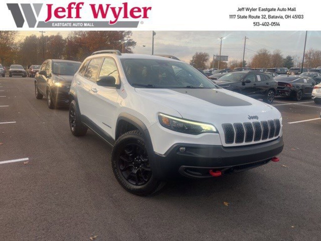 Jeff Wyler Eastgate Auto Mall is delighted to offer this beautiful-looking 2022 Jeep Cherokee Trailhawk in Bright White Clearcoat. Well equipped with: Quick Order Package 27E, Trailer Tow Group (7 & 4 Pin Wiring Harness, Class III Receiver Hitch, and Trailer Tow Wiring Harness), 3.517 Final Drive Ratio, 4-Wheel Disc Brakes, 4G LTE Wi-Fi Hot Spot, 6 Speakers, 8.4" Touchscreen Display, ABS brakes, Air Conditioning, Alloy wheels, AM/FM radio: SiriusXM, Anti-whiplash front head restraints, Apple CarPlay, Apple CarPlay/Android Auto, Automatic temperature control, Brake assist, Cloth/Premium Vinyl Bucket Seats, Compass, Delay-off headlights, Driver door bin, Driver vanity mirror, Dual front impact airbags, Dual front side impact airbags, Electronic Stability Control, For Details, Visit DriveUconnect.com, For More Info, Call 800-643-2112, Four wheel independent suspension, Front anti-roll bar, Front Bucket Seats, Front Center Armrest, Front dual zone A/C, Front fog lights, Front License Plate Bracket, Front reading lights, Fully automatic headlights, Google Android Auto, GPS Antenna Input, Heated door mirrors, Heated front seats, Heated steering wheel, Illuminated entry, K-Black Door Trim Panel Appliques, K-Black Interior Accents, Knee airbag, Leather Shift Knob, Low tire pressure warning, Occupant sensing airbag, Off Road Suspension, Outside temperature display, Overhead airbag, Overhead console, Panic alarm, ParkView Rear Back-Up Camera, Passenger door bin, Passenger vanity mirror, Power door mirrors, Power driver seat, Power steering, Power windows, Radio data system, Radio: Uconnect 4 w/8.4" Display, Rain sensing wipers, Rear anti-roll bar, Rear reading lights, Rear seat center armrest, Rear side impact airbag, Rear window defroster, Rear window wiper, Remote keyless entry, Roof rack: rails only, SiriusXM Radio Service, SiriusXM Satellite Radio, Speed control, Speed-sensing steering, Split folding rear seat, Spoiler, Steering wheel mounted audio controls, Tachometer, Telescoping steering wheel, Tilt steering wheel, Traction control, Trip computer, Turn signal indicator mirrors, USB Host Flip, Variably intermittent wipers, Voltmeter, Wheels: 17" x 7.5" Black Painted Aluminum, and Wheels: 17" x 7.5" Painted Diamond Cut AluminuM. Ask about available certifications. Used vehicles 10 years of age or newer with less than 100,000 miles are eligible for the Wyler Assurance Program, but eligible vehicles must pass our reconditioning process and multi-point inspection. Provided the vehicle passes inspection, vehicles will be eligible for the 6 month/6,000 mile limited warranty. The 6 month/6,000 mile limited warranty is NOT available on AS-IS vehicles, wholesale vehicles, lease buyback/pass-thru vehicles or un-inspected vehicles. Note that this program can also apply to vehicles where the remaining factory coverage is less than 6 months or 6,000 miles. Please check the Federal Trade Commission (FTC) Buyers guide on the vehicle for full details as to whether or not warranty coverage may apply. Contact Dealer for additional details. The Wyler Assurance 6 month/6,000 Mile limited warranty ends 6 months from the date of the Retail Purchase Agreement (BUYERS ORDER) or when the vehicle's odometer registers 6,000 additional miles to the mileage listed on the BUYERS ORDER, whichever comes first. Your Deductible - The warranty holder on your contract pays the first $100 of each covered repair.