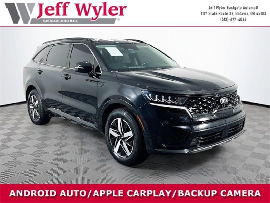 Jeff Wyler Eastgate Auto Mall is honored to offer this attractive-looking 2021 Kia Sorento EX in Ebony Black. Well equipped with: 18" Machine-Finished Alloy Wheels, 3.316 Axle Ratio, 3rd row seats: split-bench, 4-Wheel Disc Brakes, 6 Speakers, ABS brakes, Air Conditioning, Alloy wheels, AM/FM radio: SiriusXM, Apple CarPlay & Android Auto, Auto High-beam Headlights, Automatic temperature control, Brake assist, Bumpers: body-color, Cargo Net, Carpeted Floor Mats, Delay-off headlights, Driver door bin, Driver vanity mirror, Dual front impact airbags, Dual front side impact airbags, Electronic Stability Control, Exterior Parking Camera Rear, Four wheel independent suspension, Front anti-roll bar, Front Bucket Seats, Front Center Armrest, Front dual zone A/C, Front fog lights, Front reading lights, Fully automatic headlights, Heated door mirrors, Heated Front Bucket Seats, Heated front seats, Illuminated entry, Knee airbag, Leather Shift Knob, Leather steering wheel, Low tire pressure warning, Occupant sensing airbag, Outside temperature display, Overhead airbag, Overhead console, Panic alarm, Passenger door bin, Passenger vanity mirror, Power door mirrors, Power driver seat, Power Liftgate, Power steering, Power windows, Premium Leatherette Seat Trim, Radio data system, Radio: AM/FM Audio System, Rear air conditioning, Rear anti-roll bar, Rear reading lights, Rear window defroster, Rear window wiper, Remote keyless entry, Roof rack: rails only, Security system, Speed control, Speed-sensing steering, Split folding rear seat, Spoiler, Steering wheel mounted audio controls, Tachometer, Telescoping steering wheel, Tilt steering wheel, Traction control, Trip computer, Turn signal indicator mirrors, and Variably intermittent wipers. Clean CARFAX. Ask about available certifications. Used vehicles 10 years of age or newer with less than 100,000 miles are eligible for the Wyler Assurance Program, but eligible vehicles must pass our reconditioning process and multi-point inspection. Provided the vehicle passes inspection, vehicles will be eligible for the 6 month/6,000 mile limited warranty. The 6 month/6,000 mile limited warranty is NOT available on AS-IS vehicles, wholesale vehicles, lease buyback/pass-thru vehicles or un-inspected vehicles. Note that this program can also apply to vehicles where the remaining factory coverage is less than 6 months or 6,000 miles. Please check the Federal Trade Commission (FTC) Buyers guide on the vehicle for full details as to whether or not warranty coverage may apply. Contact Dealer for additional details. The Wyler Assurance 6 month/6,000 Mile limited warranty ends 6 months from the date of the Retail Purchase Agreement (BUYERS ORDER) or when the vehicle's odometer registers 6,000 additional miles to the mileage listed on the BUYERS ORDER, whichever comes first. Your Deductible - The warranty holder on your contract pays the first $100 of each covered repair.