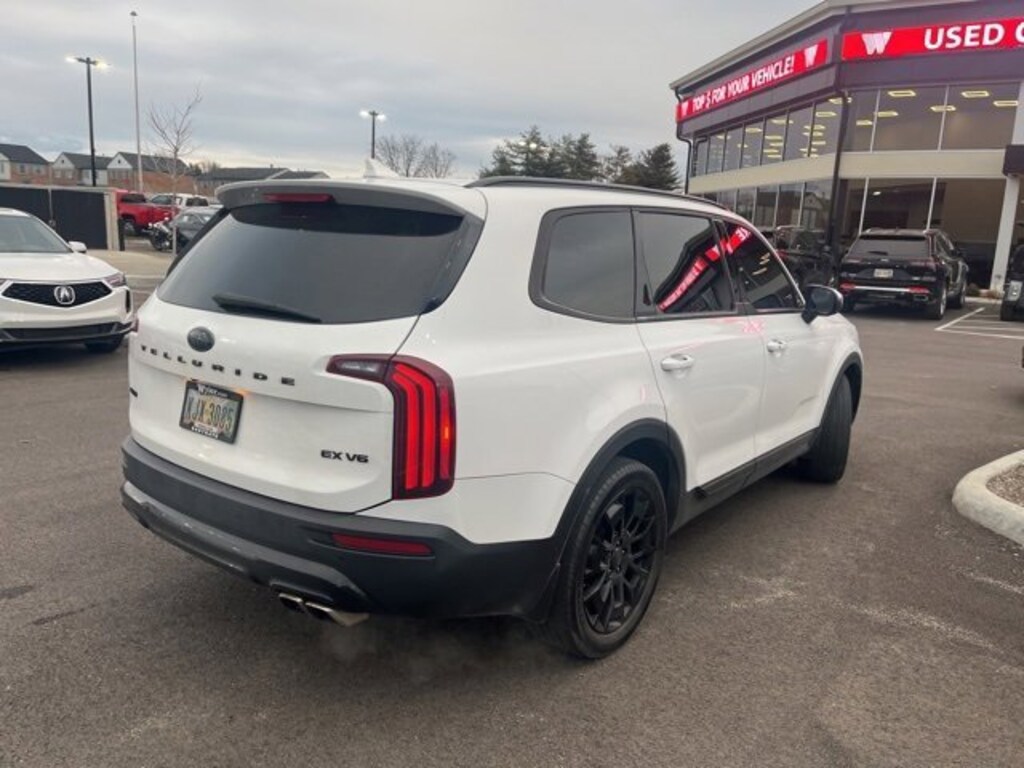 Jeff Wyler Eastgate Auto Mall is pleased to offer this great 2021 Kia Telluride EX in Glacial White Pearl. Well equipped with: EX Premium Package (2nd Row Captain Chairs, LED Headlamps, Satin Chrome Roof Rails, and Wheels: 7.5" x 20" Machined Finish Alloy), Nightfall Edition Package (Black Finish Radiator Grille, Exclusive Black Headlight Bezels, Front & Rear Gloss Black Finish Bumper Skid Plates, Front & Rear KIA Logo, Gloss Black Finish Exterior Emblems, Gloss Black Finish Front & Rear Door Garnish, Gloss Black Finish Roof Rails, and Wheels: 7.5" x 20" Exclusive Black Finish Alloy), 3.648 Axle Ratio, 3rd row seats: split-bench, 4-Wheel Disc Brakes, 6 Speakers, ABS brakes, Air Conditioning, Alloy wheels, AM/FM radio: SiriusXM, Apple CarPlay & Android Auto, Auto-dimming Rear-View mirror, Automatic temperature control, Brake assist, Bumpers: body-color, Carpeted Floor Mats, Compass, Delay-off headlights, Driver door bin, Driver vanity mirror, Dual front impact airbags, Dual front side impact airbags, Electronic Stability Control, Emergency communication system: 911 Connect, Four wheel independent suspension, Front anti-roll bar, Front Bucket Seats, Front Center Armrest, Front dual zone A/C, Front reading lights, Fully automatic headlights, Heated & Ventilated Front Bucket Seats, Heated door mirrors, Heated front seats, Heated steering wheel, Illuminated entry, Knee airbag, Leather Seat Trim, Leather Shift Knob, Leather steering wheel, Low tire pressure warning, Navigation System, Occupant sensing airbag, Outside temperature display, Overhead airbag, Overhead console, Panic alarm, Passenger door bin, Passenger vanity mirror, Power door mirrors, Power driver seat, Power Liftgate, Power moonroof, Power passenger seat, Power steering, Power windows, Radio data system, Radio: AM/FM/SIRIUS Display Audio, Rear air conditioning, Rear anti-roll bar, Rear audio controls, Rear reading lights, Rear seat center armrest, Rear window defroster, Rear window wiper, Reclining 3rd row seat, Remote keyless entry, Roof rack: rails only, Security system, Smart Key w/ Push Button and Remote Start, Speed control, Speed-sensing steering, Split folding rear seat, Spoiler, Steering wheel mounted audio controls, Tachometer, Telescoping steering wheel, Tilt steering wheel, Traction control, Trip computer, Turn signal indicator mirrors, Variably intermittent wipers, Ventilated front seats, and Wheels: 7.5" x 18" Machined Finish Alloy. Awards: * JD Power Automotive Performance, Execution and Layout (APEAL) Study, Initial Quality Study (IQS) * JD Power Initial Quality Study (IQS) Ask about available certifications. Used vehicles 10 years of age or newer with less than 100,000 miles are eligible for the Wyler Assurance Program, but eligible vehicles must pass our reconditioning process and multi-point inspection. Provided the vehicle passes inspection, vehicles will be eligible for the 6 month/6,000 mile limited warranty. The 6 month/6,000 mile limited warranty is NOT available on AS-IS vehicles, wholesale vehicles, lease buyback/pass-thru vehicles or un-inspected vehicles. Note that this program can also apply to vehicles where the remaining factory coverage is less than 6 months or 6,000 miles. Please check the Federal Trade Commission (FTC) Buyers guide on the vehicle for full details as to whether or not warranty coverage may apply. Contact Dealer for additional details. The Wyler Assurance 6 month/6,000 Mile limited warranty ends 6 months from the date of the Retail Purchase Agreement (BUYERS ORDER) or when the vehicle's odometer registers 6,000 additional miles to the mileage listed on the BUYERS ORDER, whichever comes first. Your Deductible - The warranty holder on your contract pays the first $100 of each covered repair.