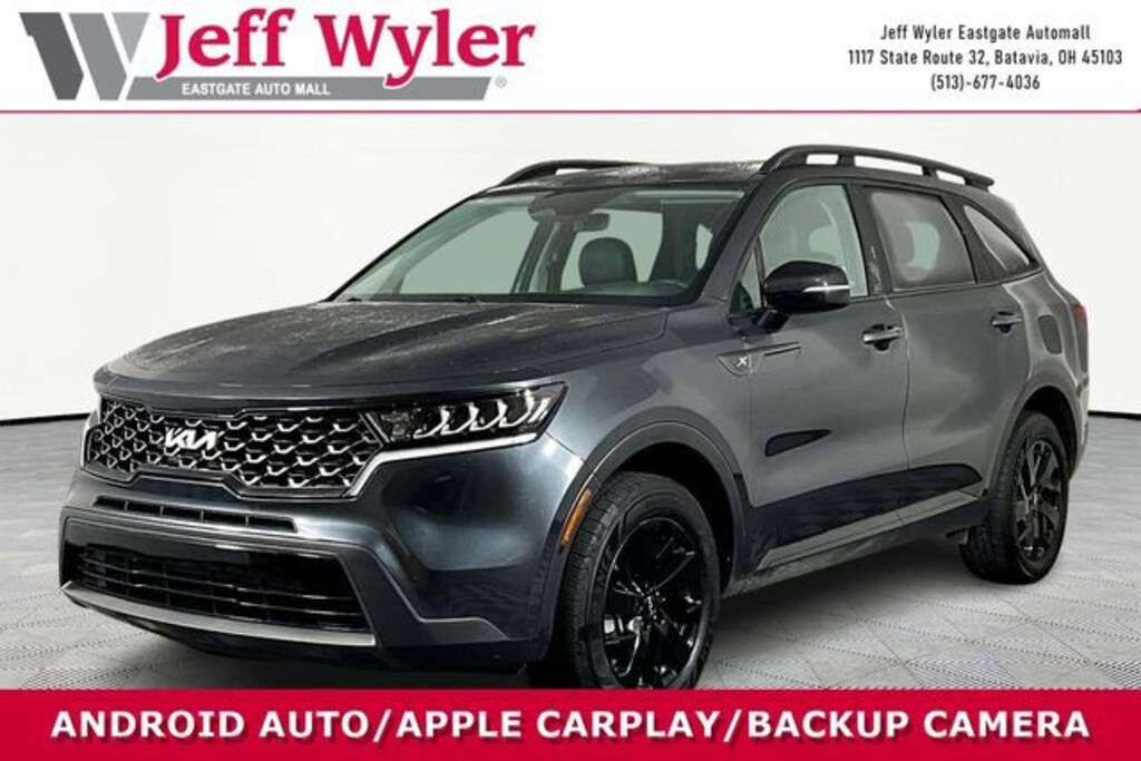 Jeff Wyler Eastgate Auto Mall is delighted to offer this good-looking 2022 Kia Sorento S in Gravity Gray. Well equipped with: 3rd row seats: split-bench, 4-Wheel Disc Brakes, 4.081 Axle Ratio, 6 Speakers, ABS brakes, Air Conditioning, Alloy wheels, AM/FM radio: SiriusXM, Apple CarPlay & Android Auto, Auto High-beam Headlights, Automatic temperature control, Brake assist, Bumpers: body-color, Carpeted Floor Mats, Delay-off headlights, Driver door bin, Driver vanity mirror, Dual front impact airbags, Dual front side impact airbags, Electronic Stability Control, Emergency communication system: UVO Link, Exterior Parking Camera Rear, Four wheel independent suspension, Front anti-roll bar, Front Bucket Seats, Front Center Armrest, Front dual zone A/C, Front reading lights, Fully automatic headlights, Heated door mirrors, Heated Front Bucket Seats, Heated front seats, Illuminated entry, Knee airbag, Leather Shift Knob, Leather steering wheel, Low tire pressure warning, Navigation System, Occupant sensing airbag, Outside temperature display, Overhead airbag, Overhead console, Panic alarm, Passenger door bin, Passenger vanity mirror, Power door mirrors, Power driver seat, Power steering, Power windows, Radio data system, Radio: AM/FM Audio System, Rear air conditioning, Rear anti-roll bar, Rear reading lights, Rear seat center armrest, Rear window defroster, Rear window wiper, Remote keyless entry, Roof rack: rails only, Security system, Smart Key w/ Push Button and Remote Start, Speed control, Speed-sensing steering, Split folding rear seat, Spoiler, Steering wheel mounted audio controls, SynTex Artificial Leather Seat Trim, Tachometer, Telescoping steering wheel, Tilt steering wheel, Traction control, Trip computer, Turn signal indicator mirrors, Variably intermittent wipers, and Wheels: 7.5J x 18" Gloss Black Alloy. CARFAX One-Owner. Ask about available certifications. Used vehicles 10 years of age or newer with less than 100,000 miles are eligible for the Wyler Assurance Program, but eligible vehicles must pass our reconditioning process and multi-point inspection. Provided the vehicle passes inspection, vehicles will be eligible for the 6 month/6,000 mile limited warranty. The 6 month/6,000 mile limited warranty is NOT available on AS-IS vehicles, wholesale vehicles, lease buyback/pass-thru vehicles or un-inspected vehicles. Note that this program can also apply to vehicles where the remaining factory coverage is less than 6 months or 6,000 miles. Please check the Federal Trade Commission (FTC) Buyers guide on the vehicle for full details as to whether or not warranty coverage may apply. Contact Dealer for additional details. The Wyler Assurance 6 month/6,000 Mile limited warranty ends 6 months from the date of the Retail Purchase Agreement (BUYERS ORDER) or when the vehicle's odometer registers 6,000 additional miles to the mileage listed on the BUYERS ORDER, whichever comes first. Your Deductible - The warranty holder on your contract pays the first $100 of each covered repair.