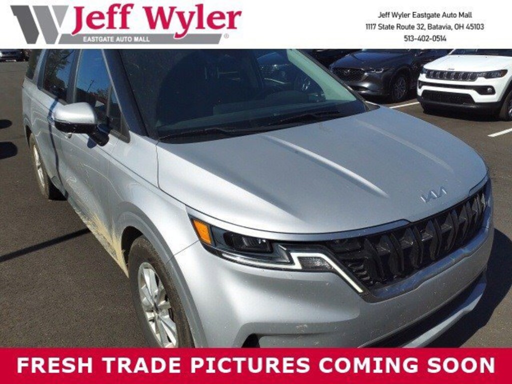 Jeff Wyler Eastgate Auto Mall is very proud to offer this great 2023 Kia Carnival LX in Silky Silver. Well equipped with: 3.51 Axle Ratio, 3rd row seats: split-bench, 4-Wheel Disc Brakes, 6 Speakers, ABS brakes, Air Conditioning, Alloy wheels, AM/FM radio, Apple CarPlay & Android Auto, Auto High-beam Headlights, Brake assist, Bumpers: body-color, Carpeted Floor Mats (7-Passenger), Cloth Seat Trim, Delay-off headlights, Driver door bin, Driver vanity mirror, Dual front impact airbags, Dual front side impact airbags, Electronic Stability Control, Four wheel independent suspension, Front anti-roll bar, Front Bucket Seats, Front Center Armrest, Front reading lights, Fully automatic headlights, Heated door mirrors, Illuminated entry, Knee airbag, Leather Shift Knob, Low tire pressure warning, Occupant sensing airbag, Outside temperature display, Overhead airbag, Overhead console, Panic alarm, Passenger door bin, Passenger vanity mirror, Power door mirrors, Power steering, Power windows, Radio: AM/FM Audio System, Rear air conditioning, Rear anti-roll bar, Rear reading lights, Rear window defroster, Rear window wiper, Reclining 3rd row seat, Remote keyless entry, Security system, Speed control, Speed-sensing steering, Split folding rear seat, Spoiler, Steering wheel mounted audio controls, Tachometer, Telescoping steering wheel, Tilt steering wheel, Traction control, Trip computer, Turn signal indicator mirrors, Variably intermittent wipers, and Wheels: 6.5J x 17" Silver Painted Alloy. CARFAX One-Owner. Clean CARFAX. Ask about available certifications. Used vehicles 10 years of age or newer with less than 100,000 miles are eligible for the Wyler Assurance Program, but eligible vehicles must pass our reconditioning process and multi-point inspection. Provided the vehicle passes inspection, vehicles will be eligible for the 6 month/6,000 mile limited warranty. The 6 month/6,000 mile limited warranty is NOT available on AS-IS vehicles, wholesale vehicles, lease buyback/pass-thru vehicles or un-inspected vehicles. Note that this program can also apply to vehicles where the remaining factory coverage is less than 6 months or 6,000 miles. Please check the Federal Trade Commission (FTC) Buyers guide on the vehicle for full details as to whether or not warranty coverage may apply. Contact Dealer for additional details. The Wyler Assurance 6 month/6,000 Mile limited warranty ends 6 months from the date of the Retail Purchase Agreement (BUYERS ORDER) or when the vehicle's odometer registers 6,000 additional miles to the mileage listed on the BUYERS ORDER, whichever comes first. Your Deductible - The warranty holder on your contract pays the first $100 of each covered repair.