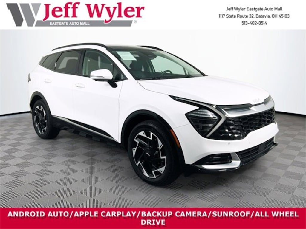 Jeff Wyler Eastgate Auto Mall is very proud to offer this handsome 2024 Kia Sportage SX-Prestige in Glacial White Pearl. Well equipped with: 4-Wheel Disc Brakes, 8 Speakers, ABS brakes, Air Conditioning, Alloy wheels, AM/FM radio: SiriusXM, Apple CarPlay & Android Auto, Auto High-beam Headlights, Automatic temperature control, Axle Ratio: 3.648, Brake assist, Bumpers: body-color, Cargo Cover, Carpeted Floor Mats, Compass, Cross Bars, Delay-off headlights, Driver door bin, Driver vanity mirror, Dual front impact airbags, Dual front side impact airbags, Electronic Stability Control, Emergency communication system, Four wheel independent suspension, Front anti-roll bar, Front Bucket Seats, Front Center Armrest, Front dual zone A/C, Front fog lights, Front reading lights, Fully automatic headlights, harman/kardon® Speakers, Heated & Ventilated Front Bucket Seats, Heated door mirrors, Heated front seats, Heated steering wheel, Illuminated entry, Leather Shift Knob, Leather steering wheel, Low tire pressure warning, Memory seat, Navigation System, Occupant sensing airbag, Outside temperature display, Overhead airbag, Overhead console, Panic alarm, Passenger door bin, Passenger vanity mirror, Power door mirrors, Power driver seat, Power Liftgate, Power moonroof, Power passenger seat, Power steering, Power windows, Premium Leatherette Seat Trim, Radio: AM/FM/HD Premium Audio System, Rain sensing wipers, Rear anti-roll bar, Rear reading lights, Rear seat center armrest, Rear side impact airbag, Rear window defroster, Rear window wiper, Remote keyless entry, Security system, Speed control, Speed-sensing steering, Split folding rear seat, Spoiler, Steering wheel mounted audio controls, Tachometer, Telescoping steering wheel, Tilt steering wheel, Traction control, Trip computer, Turn signal indicator mirrors, Variably intermittent wipers, Ventilated front seats, and Wheels: 19" Gloss Black Alloy. CARFAX One-Owner. Clean CARFAX. Ask about available certifications. Used vehicles 10 years of age or newer with less than 100,000 miles are eligible for the Wyler Assurance Program, but eligible vehicles must pass our reconditioning process and multi-point inspection. Provided the vehicle passes inspection, vehicles will be eligible for the 6 month/6,000 mile limited warranty. The 6 month/6,000 mile limited warranty is NOT available on AS-IS vehicles, wholesale vehicles, lease buyback/pass-thru vehicles or un-inspected vehicles. Note that this program can also apply to vehicles where the remaining factory coverage is less than 6 months or 6,000 miles. Please check the Federal Trade Commission (FTC) Buyers guide on the vehicle for full details as to whether or not warranty coverage may apply. Contact Dealer for additional details. The Wyler Assurance 6 month/6,000 Mile limited warranty ends 6 months from the date of the Retail Purchase Agreement (BUYERS ORDER) or when the vehicle's odometer registers 6,000 additional miles to the mileage listed on the BUYERS ORDER, whichever comes first. Your Deductible - The warranty holder on your contract pays the first $100 of each covered repair.