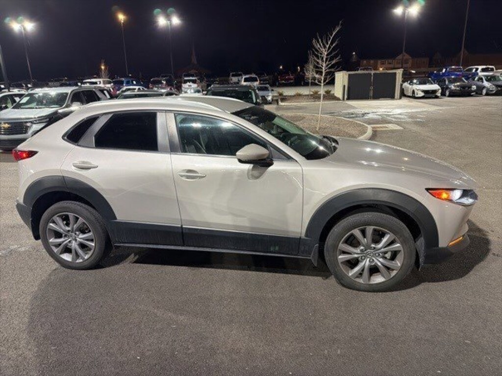 Jeff Wyler Eastgate Auto Mall is proud to offer this fantastic-looking 2023 Mazda CX-30 2.5 S Preferred Package in Platinum Quartz Metallic. Well equipped with: 4-Wheel Disc Brakes, 4.095 Axle Ratio, 8 Speakers, ABS brakes, Air Conditioning, Alloy wheels, AM/FM radio, AppLink/Apple CarPlay and Android Auto, Auto High-beam Headlights, Automatic temperature control, Brake assist, Bumpers: body-color, Compass, Delay-off headlights, Driver door bin, Driver vanity mirror, Dual front impact airbags, Dual front side impact airbags, Electronic Stability Control, Emergency communication system: Mazda Connected Services (3-year complimentary trial included), Exterior Parking Camera Rear, Front anti-roll bar, Front Bucket Seats, Front Center Armrest, Front dual zone A/C, Front reading lights, Front wheel independent suspension, Fully automatic headlights, Heated Front Bucket Seats, Heated front seats, Illuminated entry, Knee airbag, Leather Shift Knob, Leather steering wheel, Leatherette Seat Trim, Low tire pressure warning, MAZDA CONNECT Infotainment System, Memory seat, Moon Roof Credit, Occupant sensing airbag, Outside temperature display, Overhead airbag, Overhead console, Panic alarm, Passenger door bin, Passenger vanity mirror, Power door mirrors, Power driver seat, Power moonroof, Power steering, Power windows, Radio data system, Radio: AM/FM/HD Audio System, Rain sensing wipers, Rear seat center armrest, Rear side impact airbag, Rear window defroster, Rear window wiper, Remote keyless entry, Speed control, Speed-sensing steering, Split folding rear seat, Spoiler, Steering wheel mounted audio controls, Tachometer, Telescoping steering wheel, Tilt steering wheel, Traction control, Trip computer, Turn signal indicator mirrors, Variably intermittent wipers, and Wheels: 18" x 7J Aluminum Alloy. Clean CARFAX. Ask about available certifications. Used vehicles 10 years of age or newer with less than 100,000 miles are eligible for the Wyler Assurance Program, but eligible vehicles must pass our reconditioning process and multi-point inspection. Provided the vehicle passes inspection, vehicles will be eligible for the 6 month/6,000 mile limited warranty. The 6 month/6,000 mile limited warranty is NOT available on AS-IS vehicles, wholesale vehicles, lease buyback/pass-thru vehicles or un-inspected vehicles. Note that this program can also apply to vehicles where the remaining factory coverage is less than 6 months or 6,000 miles. Please check the Federal Trade Commission (FTC) Buyers guide on the vehicle for full details as to whether or not warranty coverage may apply. Contact Dealer for additional details. The Wyler Assurance 6 month/6,000 Mile limited warranty ends 6 months from the date of the Retail Purchase Agreement (BUYERS ORDER) or when the vehicle's odometer registers 6,000 additional miles to the mileage listed on the BUYERS ORDER, whichever comes first. Your Deductible - The warranty holder on your contract pays the first $100 of each covered repair.