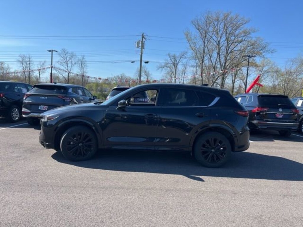 Jeff Wyler Eastgate Auto Mall is excited to offer this handsome 2023 Mazda CX-5 2.5 Turbo in Jet Black Mica. Well equipped with: 10 Speakers, 4-Wheel Disc Brakes, 4.411 Axle Ratio, ABS brakes, Air Conditioning, Alloy wheels, AM/FM radio: SiriusXM, AppLink/Apple CarPlay and Android Auto, Auto High-beam Headlights, Auto-dimming Rear-View mirror, Automatic temperature control, Black Lug Nuts & Black Wheel Locks, Brake assist, Bumpers: body-color, Cargo Mat, Delay-off headlights, Driver door bin, Driver vanity mirror, Dual front impact airbags, Dual front side impact airbags, E911 Automatic Emergency Notification, Electronic Stability Control, Emergency communication system: MAZDA CONNECT, Exterior Parking Camera Rear, Four wheel independent suspension, Front anti-roll bar, Front Bucket Seats, Front Center Armrest w/Storage, Front dual zone A/C, Front reading lights, Fully automatic headlights, Garage door transmitter: HomeLink, Heads-Up Display, Heated door mirrors, Heated front seats, Heated rear seats, Heated steering wheel, Heated/Ventilated Front Bucket Seats, Illuminated entry, Infotainment System Voice Command, Leather Seat Trim, Leather Shift Knob, Low tire pressure warning, Memory seat, Multifunction Commander Control, Occupant sensing airbag, Outside temperature display, Overhead airbag, Overhead console, Pandora, Panic alarm, Passenger door bin, Passenger vanity mirror, Power door mirrors, Power driver seat, Power Liftgate, Power moonroof, Power passenger seat, Power steering, Power windows, Radio Broadcast Data System Program Information, Radio data system, Radio: AM/FM/HD Audio System, Rain sensing wipers, Rear anti-roll bar, Rear reading lights, Rear seat center armrest, Rear window defroster, Rear window wiper, Remote keyless entry, SMS Text Msg Audio Delivery & Reply, Speed control, Speed-sensing steering, Split folding rear seat, Spoiler, Steering wheel mounted audio controls, Tachometer, Telescoping steering wheel, Tilt steering wheel, Traction control, Trip computer, Turn signal indicator mirrors, Variably intermittent wipers, Ventilated front seats, and Wheels: 19" x 7J Aluminum Alloy. Clean CARFAX. Ask about available certifications. Used vehicles 10 years of age or newer with less than 100,000 miles are eligible for the Wyler Assurance Program, but eligible vehicles must pass our reconditioning process and multi-point inspection. Provided the vehicle passes inspection, vehicles will be eligible for the 6 month/6,000 mile limited warranty. The 6 month/6,000 mile limited warranty is NOT available on AS-IS vehicles, wholesale vehicles, lease buyback/pass-thru vehicles or un-inspected vehicles. Note that this program can also apply to vehicles where the remaining factory coverage is less than 6 months or 6,000 miles. Please check the Federal Trade Commission (FTC) Buyers guide on the vehicle for full details as to whether or not warranty coverage may apply. Contact Dealer for additional details. The Wyler Assurance 6 month/6,000 Mile limited warranty ends 6 months from the date of the Retail Purchase Agreement (BUYERS ORDER) or when the vehicle's odometer registers 6,000 additional miles to the mileage listed on the BUYERS ORDER, whichever comes first. Your Deductible - The warranty holder on your contract pays the first $100 of each covered repair.