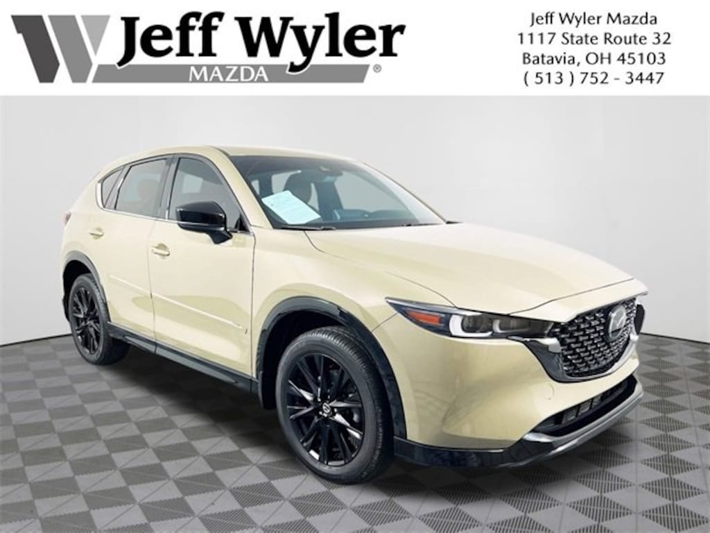 Jeff Wyler Eastgate Auto Mall is excited to offer this gorgeous 2024 Mazda CX-5 2.5 Carbon Turbo in Zircon Sand Metallic. Well equipped with: 10 Speakers, 4-Wheel Disc Brakes, 4.411 Axle Ratio, ABS brakes, Air Conditioning, All-Weather Floor Mats, Alloy wheels, AM/FM radio: SiriusXM, AppLink/Apple CarPlay and Android Auto, Auto High-beam Headlights, Auto-dimming Rear-View mirror, Automatic temperature control, Brake assist, Bumpers: body-color, Carbon Edition License Plate Frame, Cargo Mat, Delay-off headlights, Driver door bin, Driver vanity mirror, Dual front impact airbags, Dual front side impact airbags, E911 Automatic Emergency Notification, Electronic Stability Control, Emergency communication system: MAZDA CONNECT, Exterior Parking Camera Rear, Four wheel independent suspension, Front & Rear Splash Guards, Front anti-roll bar, Front Bucket Seats, Front Center Armrest w/Storage, Front dual zone A/C, Front reading lights, Fully automatic headlights, Garage door transmitter: HomeLink, Heads-Up Display, Heated door mirrors, Heated front seats, Heated/Ventilated Front Bucket Seats, Illuminated entry, Infotainment System Voice Command, Leather Shift Knob, Leather steering wheel, Low tire pressure warning, Memory seat, Multifunction Commander Control, Occupant sensing airbag, Outside temperature display, Overhead airbag, Overhead console, Pandora, Panic alarm, Passenger door bin, Passenger vanity mirror, Power door mirrors, Power driver seat, Power Liftgate, Power moonroof, Power passenger seat, Power steering, Power windows, Radio Broadcast Data System Program Information, Radio data system, Radio: AM/FM/HD Audio System, Rain sensing wipers, Rear anti-roll bar, Rear Bumper Guard, Rear reading lights, Rear seat center armrest, Rear window defroster, Rear window wiper, Remote keyless entry, SMS Text Msg Audio Delivery & Reply, Speed control, Speed-sensing steering, Split folding rear seat, Spoiler, Steering wheel mounted audio controls, Tachometer, Telescoping steering wheel, Terracotta Leather Seat Trim, Tilt steering wheel, Traction control, Trip computer, Turn signal indicator mirrors, Variably intermittent wipers, Ventilated front seats, Wheels: 19" x 7J Aluminum Alloy, and Zircon Sand Metallic (JCS) CARFAX One-Owner. Clean CARFAX. Ask about available certifications. Used vehicles 10 years of age or newer with less than 100,000 miles are eligible for the Wyler Assurance Program, but eligible vehicles must pass our reconditioning process and multi-point inspection. Provided the vehicle passes inspection, vehicles will be eligible for the 6 month/6,000 mile limited warranty. The 6 month/6,000 mile limited warranty is NOT available on AS-IS vehicles, wholesale vehicles, lease buyback/pass-thru vehicles or un-inspected vehicles. Note that this program can also apply to vehicles where the remaining factory coverage is less than 6 months or 6,000 miles. Please check the Federal Trade Commission (FTC) Buyers guide on the vehicle for full details as to whether or not warranty coverage may apply. Contact Dealer for additional details. The Wyler Assurance 6 month/6,000 Mile limited warranty ends 6 months from the date of the Retail Purchase Agreement (BUYERS ORDER) or when the vehicle's odometer registers 6,000 additional miles to the mileage listed on the BUYERS ORDER, whichever comes first. Your Deductible - The warranty holder on your contract pays the first $100 of each covered repair.