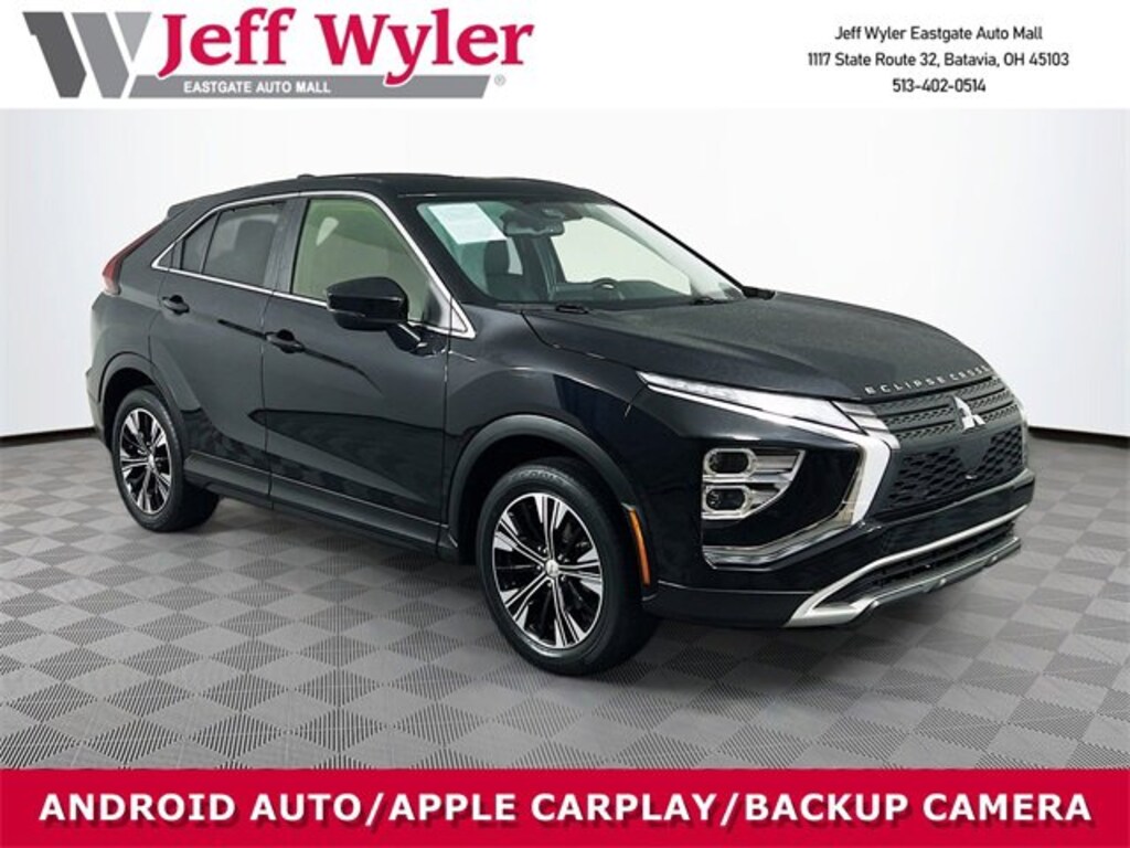 Jeff Wyler Eastgate Auto Mall is very proud to offer this outstanding 2022 Mitsubishi Eclipse Cross SE in Black. Well equipped with: ABS brakes, Alloy wheels, Electronic Stability Control, Emergency communication system, Front dual zone A/C, Heated door mirrors, Heated Front Bucket Seats, Heated front seats, Illuminated entry, Low tire pressure warning, Navigation System, Remote keyless entry, Traction control, 4-Wheel Disc Brakes, 6 Speakers, 6.386 Axle Ratio, Air Conditioning, AM/FM radio: SiriusXM, Android Auto & Apple CarPlay, Auto High-beam Headlights, Auto-dimming Rear-View mirror, Automatic temperature control, Brake assist, Bumpers: body-color, Delay-off headlights, Driver door bin, Driver vanity mirror, Dual front impact airbags, Dual front side impact airbags, Exterior Parking Camera Rear, Four wheel independent suspension, Front anti-roll bar, Front Bucket Seats, Front Center Armrest, Front fog lights, Front reading lights, Fully automatic headlights, Knee airbag, Leather Shift Knob, Occupant sensing airbag, Outside temperature display, Overhead airbag, Overhead console, Panic alarm, Passenger door bin, Passenger vanity mirror, Power door mirrors, Power driver seat, Power steering, Power windows, Radio data system, Radio: AM/FM 8.0" Nav System w/Smartphone-Link, Rain sensing wipers, Rear anti-roll bar, Rear seat center armrest, Rear window defroster, Rear window wiper, Security system, Speed control, Speed-sensing steering, Split folding rear seat, Spoiler, Steering wheel mounted audio controls, Synthetic Suede Seating Surfaces, Tachometer, Telescoping steering wheel, Tilt steering wheel, Trip computer, Turn signal indicator mirrors, Variably intermittent wipers, and Wheels: 18" x 7.0J Two-Tone Alloy. CARFAX One-Owner. Clean CARFAX. Ask about available certifications. Used vehicles 10 years of age or newer with less than 100,000 miles are eligible for the Wyler Assurance Program, but eligible vehicles must pass our reconditioning process and multi-point inspection. Provided the vehicle passes inspection, vehicles will be eligible for the 6 month/6,000 mile limited warranty. The 6 month/6,000 mile limited warranty is NOT available on AS-IS vehicles, wholesale vehicles, lease buyback/pass-thru vehicles or un-inspected vehicles. Note that this program can also apply to vehicles where the remaining factory coverage is less than 6 months or 6,000 miles. Please check the Federal Trade Commission (FTC) Buyers guide on the vehicle for full details as to whether or not warranty coverage may apply. Contact Dealer for additional details. The Wyler Assurance 6 month/6,000 Mile limited warranty ends 6 months from the date of the Retail Purchase Agreement (BUYERS ORDER) or when the vehicle's odometer registers 6,000 additional miles to the mileage listed on the BUYERS ORDER, whichever comes first. Your Deductible - The warranty holder on your contract pays the first $100 of each covered repair.