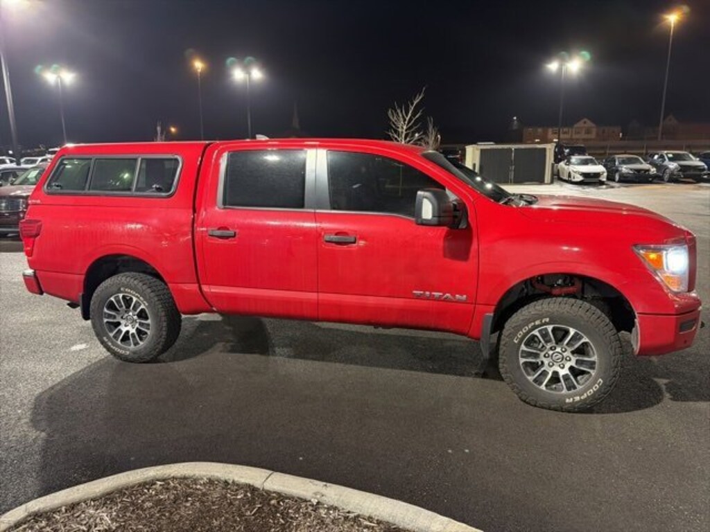Jeff Wyler Eastgate Auto Mall is pleased to offer this good-looking 2022 Nissan Titan SV in Red Alert. Well equipped with: Off Road Protection Package, SV Convenience Package (120V/12V Outlets In Back Of Center Console, 2 Illuminated USB-A Ports In Back Of Center Console, Auto-Dimming Rear-View Mirror, Chrome Interior Door Locks, Convex Spotter Mirror, Dedicated Cell Phone Holder, Dual Illuminated Vanity Mirror Front Sun Visors, Dual Zone Automatic HVAC, Front & Rear Parking Sensors, Heated Front Captain's Chairs, Intelligent Key System, Leather-Wrapped Steering Wheel, Mood Light, NissanConnect Services, Overhead Console w/Sunglass Holder, Power Sliding Rear Window w/Defogger, Radio: NissanConnect w/Navigation, Rear HVAC Vents, Remote Engine Start on Key Fob, Traffic Sign Recognition (TSR), and Wi-Fi Hotspot), SV Tow Package (4-Pin/7-Pin Wiring Harness Connector (Rear Bumper), Heated Manually Extendable Tow Mirrors, Puddle Lamps, Receiver Hitch, Trailer Brake Controller, and Trailer Light Check Function On Key Fob), SV Utility Package (120V Outlet in Bed, Auto-Dimming Rearview Mirror w/UGDO, Electronic Locking Tailgate, Flat Floor Function w/Tie Down Hooks, LED Tailgate Area Illumination, LED Under Rail Bed Lighting, Rain Sensing Wipers, Rear Utility Bed Step, Spray-On Bedliner, Universal Garage Door Opener, and Utilitrack System w/4 Tie-Down Cleats), 3.69 Axle Ratio, 4-Wheel Disc Brakes, 6 Speakers, ABS brakes, Air Conditioning, Alloy wheels, AM/FM radio: SiriusXM, Auto High-beam Headlights, Bed Assist Grip, Blind Spot Warning, Brake assist, Bumpers: chrome, Carpet Floor Mats (L95), Cloth Seat Trim, Driver door bin, Dual front impact airbags, Dual front side impact airbags, Electronic Stability Control, Electronic Tailgate Lock Deletion, Front anti-roll bar, Front Center Armrest w/Storage, Front reading lights, Front Split Bench Seat (40/20/40), Front wheel independent suspension, Fully automatic headlights, Heated door mirrors, Illuminated entry, Knee airbag, Loop Side Steps, Low tire pressure warning, NissanConnect featuring Apple CarPlay and Android Auto, Occupant sensing airbag, Outside temperature display, Overhead airbag, Panic alarm, Passenger door bin, Passenger vanity mirror, Power door mirrors, Power steering, Power windows, Radio data system, Radio: NissanConnect AM/FM, Rear anti-roll bar, Rear Parking Sensors, Rear seat center armrest, Rear step bumper, Rear window defroster, Remote keyless entry, Security system, Speed control, Speed-sensing steering, Speed-Sensitive Wipers, Splash Guards, Split folding rear seat, Steering wheel mounted audio controls, Tachometer, Telescoping steering wheel, Tilt steering wheel, Traction control, Trip computer, Variably intermittent wipers, Voltmeter, and Wheels: 18" x 8" Silver Painted Alloy. Clean CARFAX. Ask about available certifications. Used vehicles 10 years of age or newer with less than 100,000 miles are eligible for the Wyler Assurance Program, but eligible vehicles must pass our reconditioning process and multi-point inspection. Provided the vehicle passes inspection, vehicles will be eligible for the 6 month/6,000 mile limited warranty. The 6 month/6,000 mile limited warranty is NOT available on AS-IS vehicles, wholesale vehicles, lease buyback/pass-thru vehicles or un-inspected vehicles. Note that this program can also apply to vehicles where the remaining factory coverage is less than 6 months or 6,000 miles. Please check the Federal Trade Commission (FTC) Buyers guide on the vehicle for full details as to whether or not warranty coverage may apply. Contact Dealer for additional details. The Wyler Assurance 6 month/6,000 Mile limited warranty ends 6 months from the date of the Retail Purchase Agreement (BUYERS ORDER) or when the vehicle's odometer registers 6,000 additional miles to the mileage listed on the BUYERS ORDER, whichever comes first. Your Deductible - The warranty holder on your contract pays the first $100 of each covered repair.