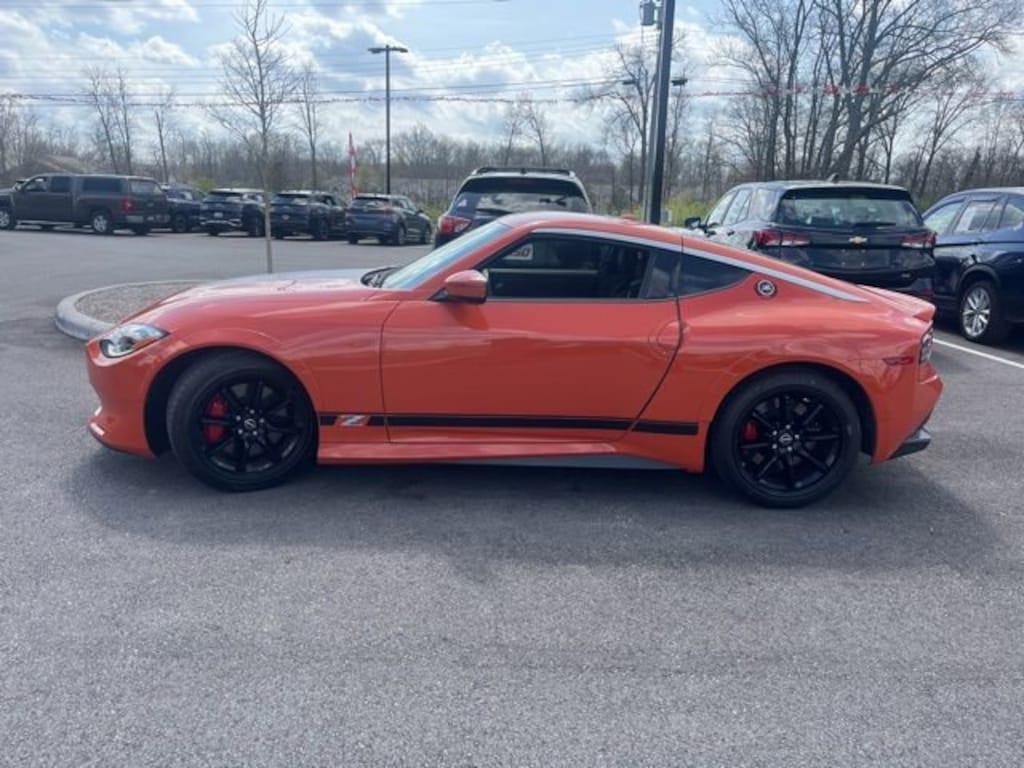 Jeff Wyler Eastgate Auto Mall is honored to offer this handsome 2024 Nissan Z Performance in New Sight Orange. Well equipped with: Floor Mat Package (First Aid Kit), Heritage Edition (Wheel: 19" Watanabe Style Alloy), 4-Wheel Disc Brakes, 8 Speakers, ABS brakes, Air Conditioning, Alloy wheels, AM/FM radio: SiriusXM, Auto High-beam Headlights, Auto-dimming Rear-View mirror, Automatic temperature control, Blind Spot Warning, Brake assist, Bumpers: body-color, Compass, Delay-off headlights, Driver door bin, Driver vanity mirror, Dual front impact airbags, Dual front side impact airbags, Electronic Stability Control, Emergency communication system: NissanConnect Services, Four wheel independent suspension, Front anti-roll bar, Front Bucket Seats, Front Center Armrest, Front reading lights, Fully automatic headlights, Garage door transmitter, Heated door mirrors, Heated Front Bucket Seats, Heated front seats, Heritage Edition (K11), Illuminated Kick Plate - Black Metallic, Interior Door Scuff Protection, Leather Shift Knob, Leather steering wheel, Leather-Appointed Seat Trim, Low tire pressure warning, Navigation system: NissanConnect with Navigation and Services, Occupant sensing airbag, Outside temperature display, Overhead airbag, Panic alarm, Passenger door bin, Passenger vanity mirror, Power door mirrors, Power driver seat, Power passenger seat, Power steering, Power windows, Radio data system, Radio: Bose Audio System w/8 Speakers, Rear anti-roll bar, Rear window defroster, Remote keyless entry, Security system, Speed control, Speed-sensing steering, Spoiler, Steering wheel mounted audio controls, Tachometer, Telescoping steering wheel, Tilt steering wheel, Traction control, Trip computer, Turn signal indicator mirrors, Variably intermittent wipers, Voltmeter, and Wheels: 19" RAYS Super-Lightweight Forged Alloy. CARFAX One-Owner. Clean CARFAX. Ask about available certifications. Used vehicles 10 years of age or newer with less than 100,000 miles are eligible for the Wyler Assurance Program, but eligible vehicles must pass our reconditioning process and multi-point inspection. Provided the vehicle passes inspection, vehicles will be eligible for the 6 month/6,000 mile limited warranty. The 6 month/6,000 mile limited warranty is NOT available on AS-IS vehicles, wholesale vehicles, lease buyback/pass-thru vehicles or un-inspected vehicles. Note that this program can also apply to vehicles where the remaining factory coverage is less than 6 months or 6,000 miles. Please check the Federal Trade Commission (FTC) Buyers guide on the vehicle for full details as to whether or not warranty coverage may apply. Contact Dealer for additional details. The Wyler Assurance 6 month/6,000 Mile limited warranty ends 6 months from the date of the Retail Purchase Agreement (BUYERS ORDER) or when the vehicle's odometer registers 6,000 additional miles to the mileage listed on the BUYERS ORDER, whichever comes first. Your Deductible - The warranty holder on your contract pays the first $100 of each covered repair.